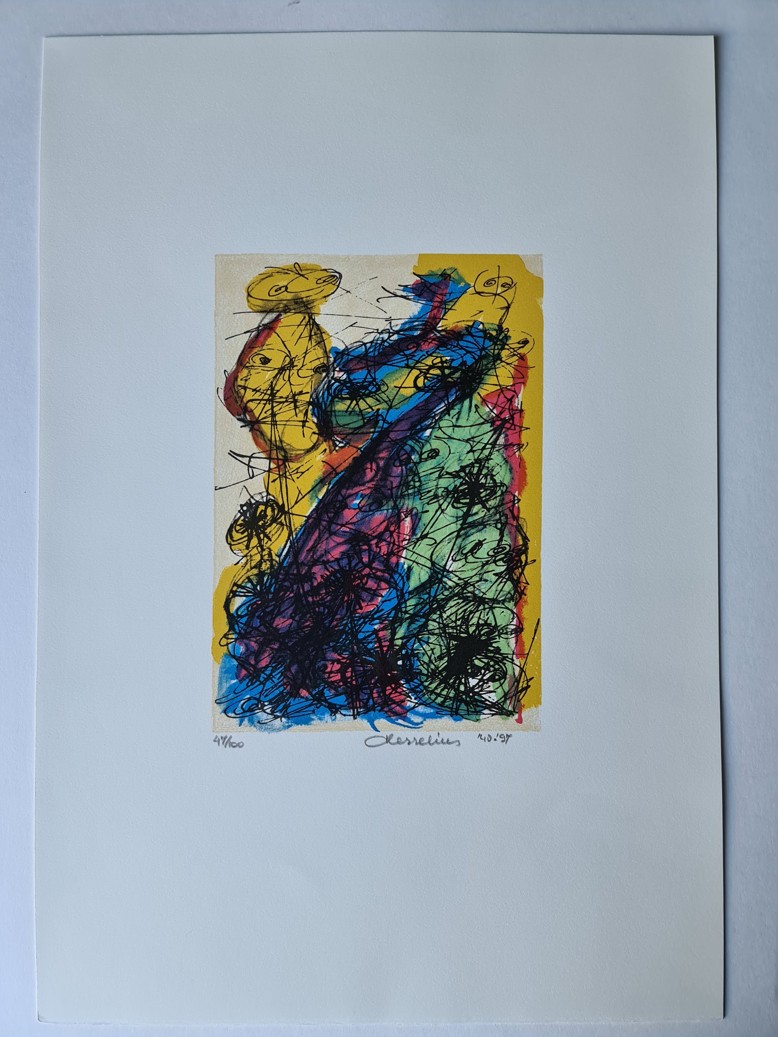 Afmetingen blad: 51x35 cm. Afmetingen beeld: ong. 25 x 18 cm.