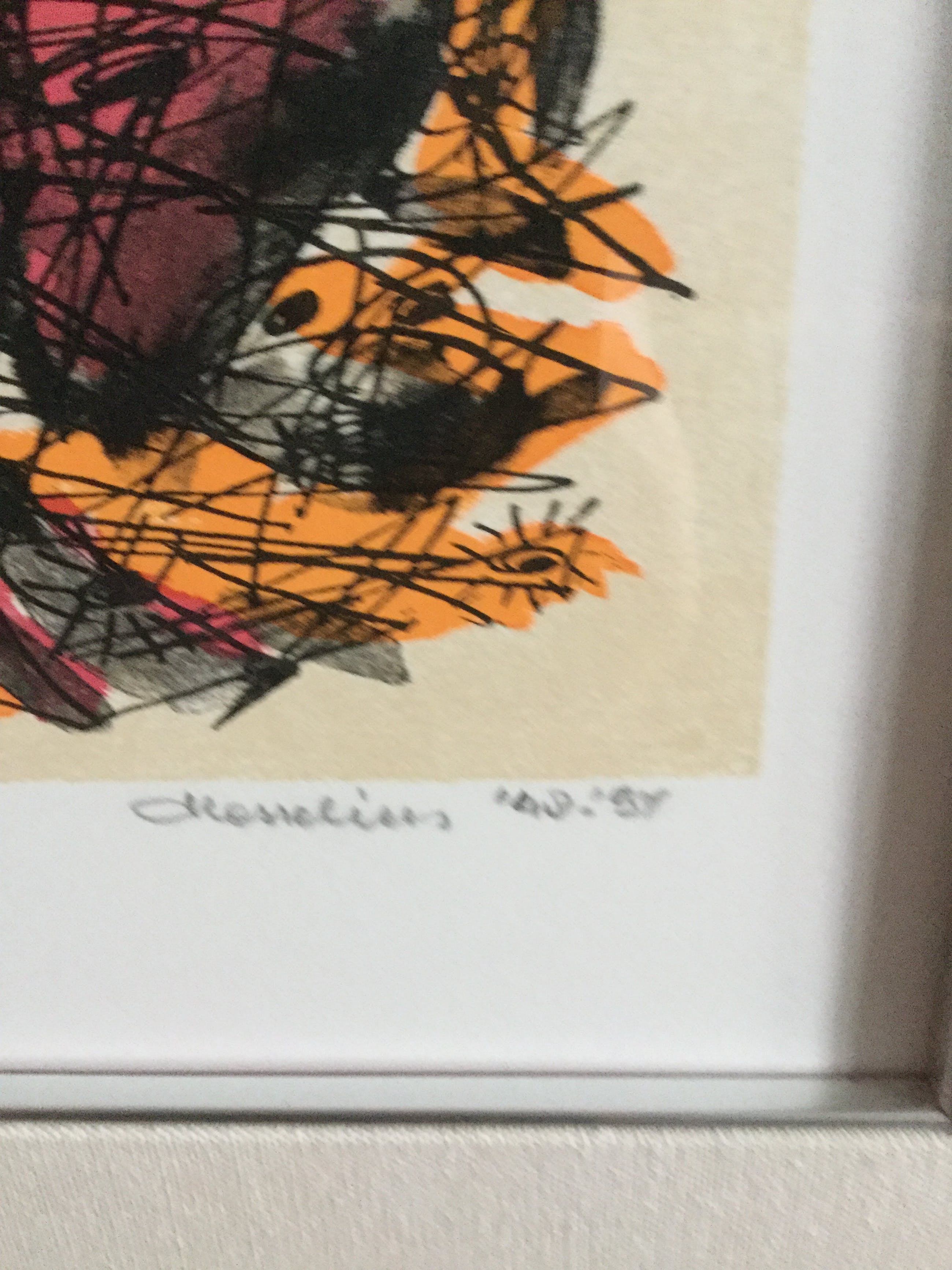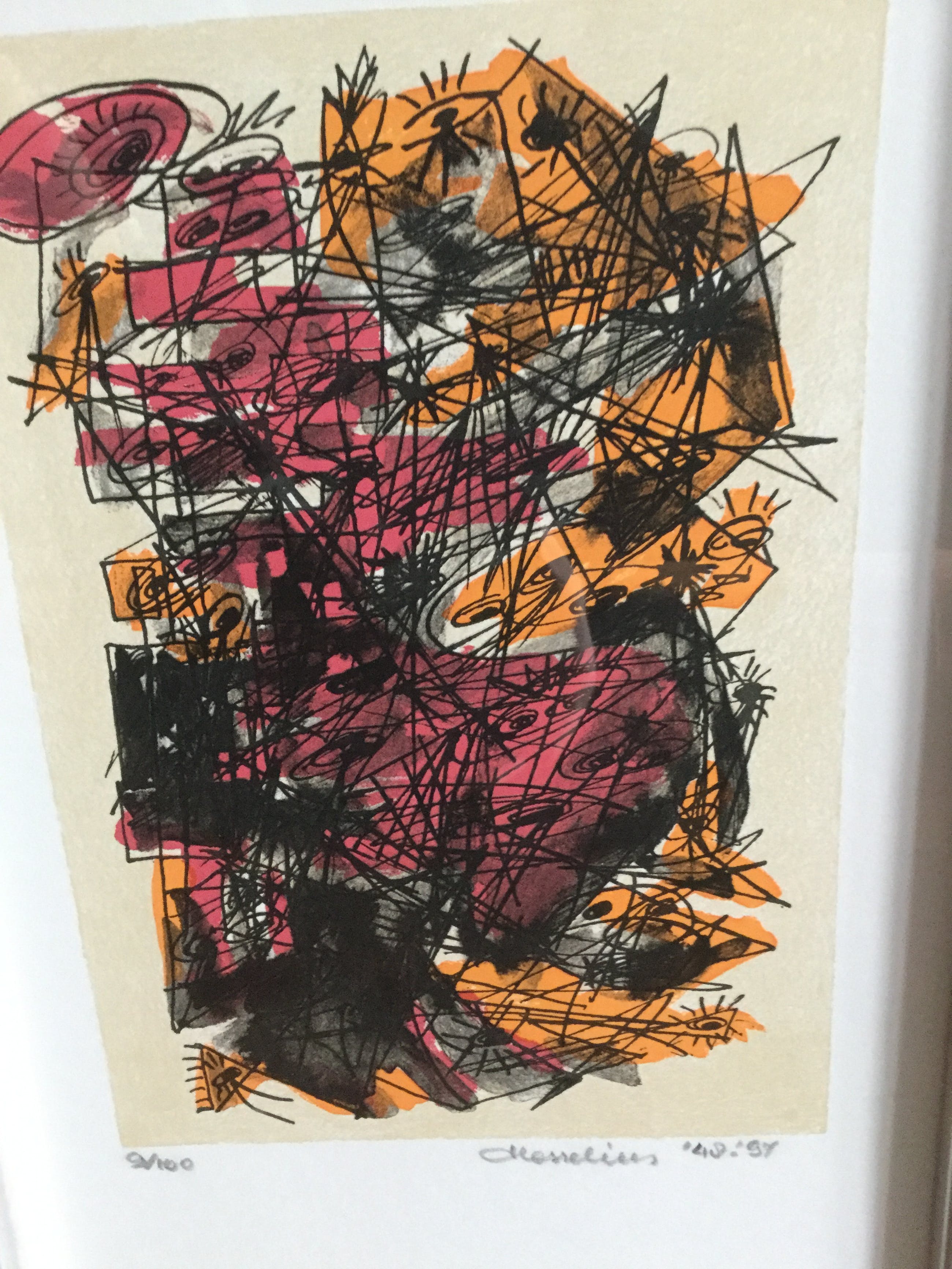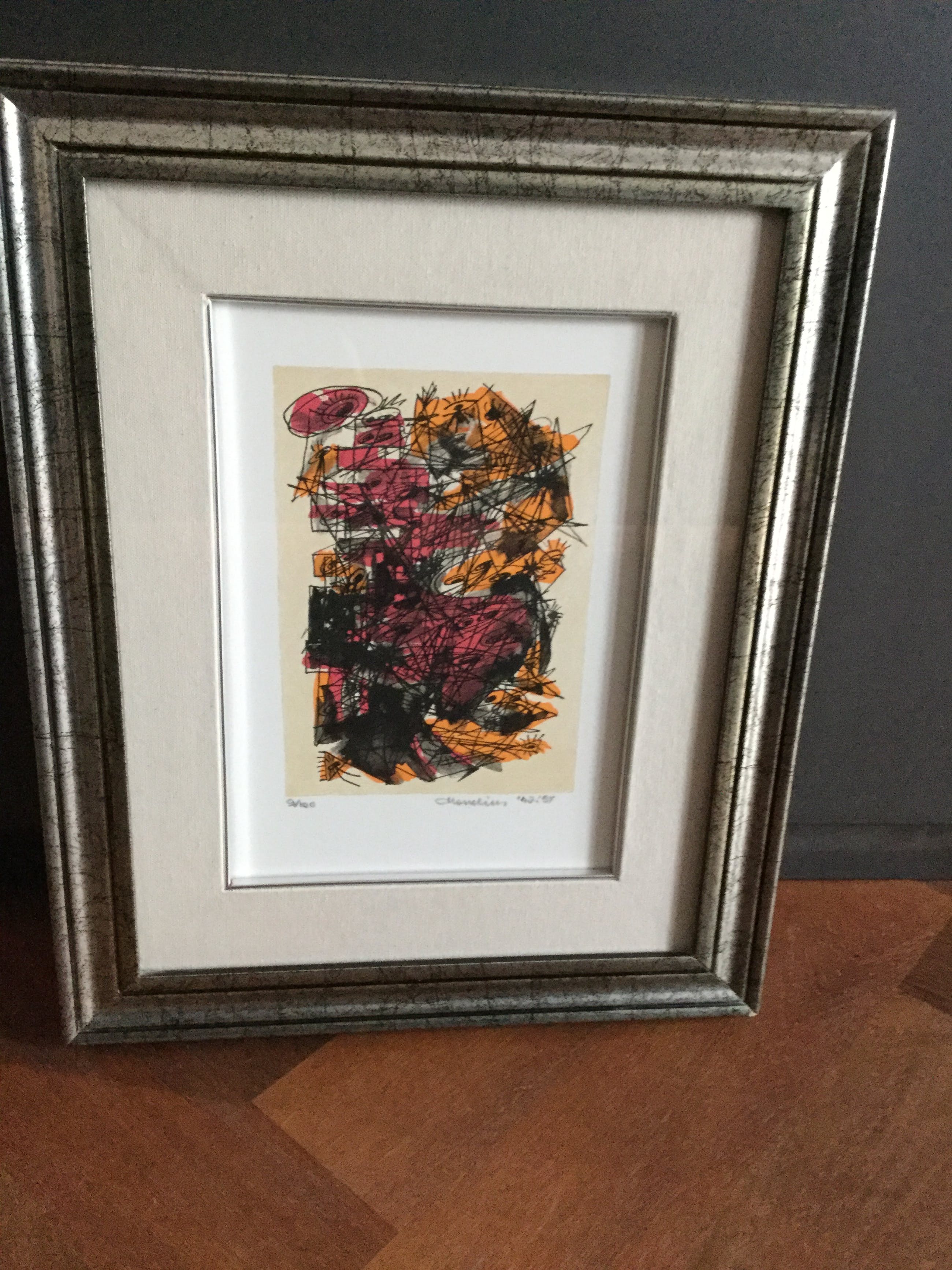 Sprekende prent met beperkt kleurgebruik en indringend effect.