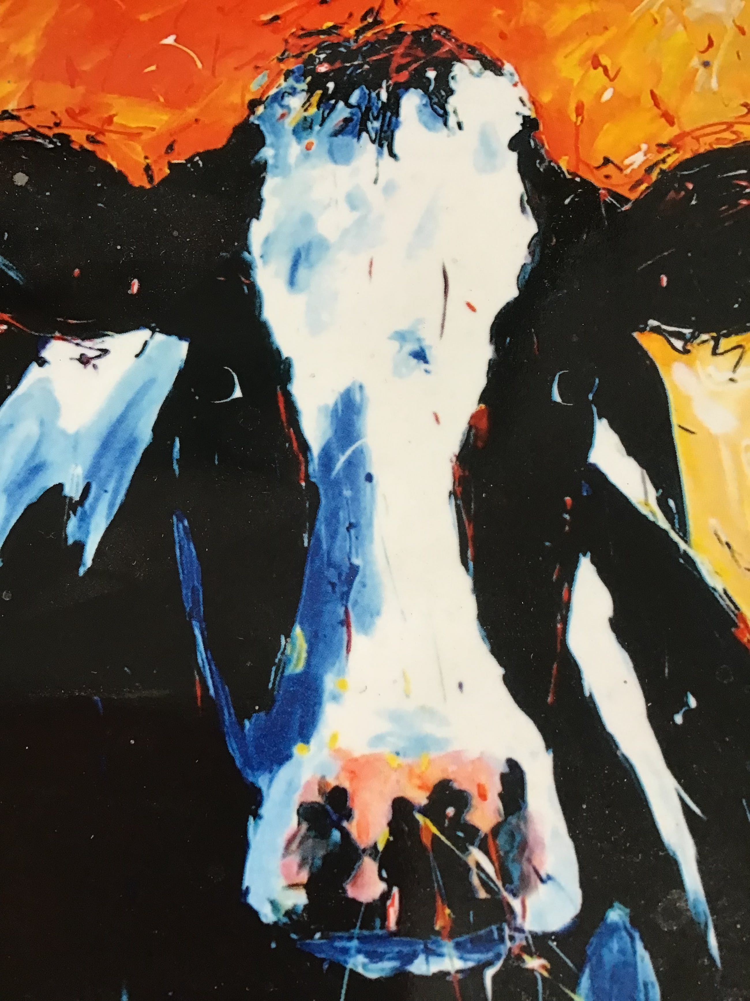bord/schaal, van kunstenaar Henk Hofstra , gesigneerd Mooie Hollandse koe Collectors item Vierkant 27x27cm Kan ook worden opgehangen Speciaal vervaardigd door Plateelbakkerij Schoonhoven Conditie nieuwstaat