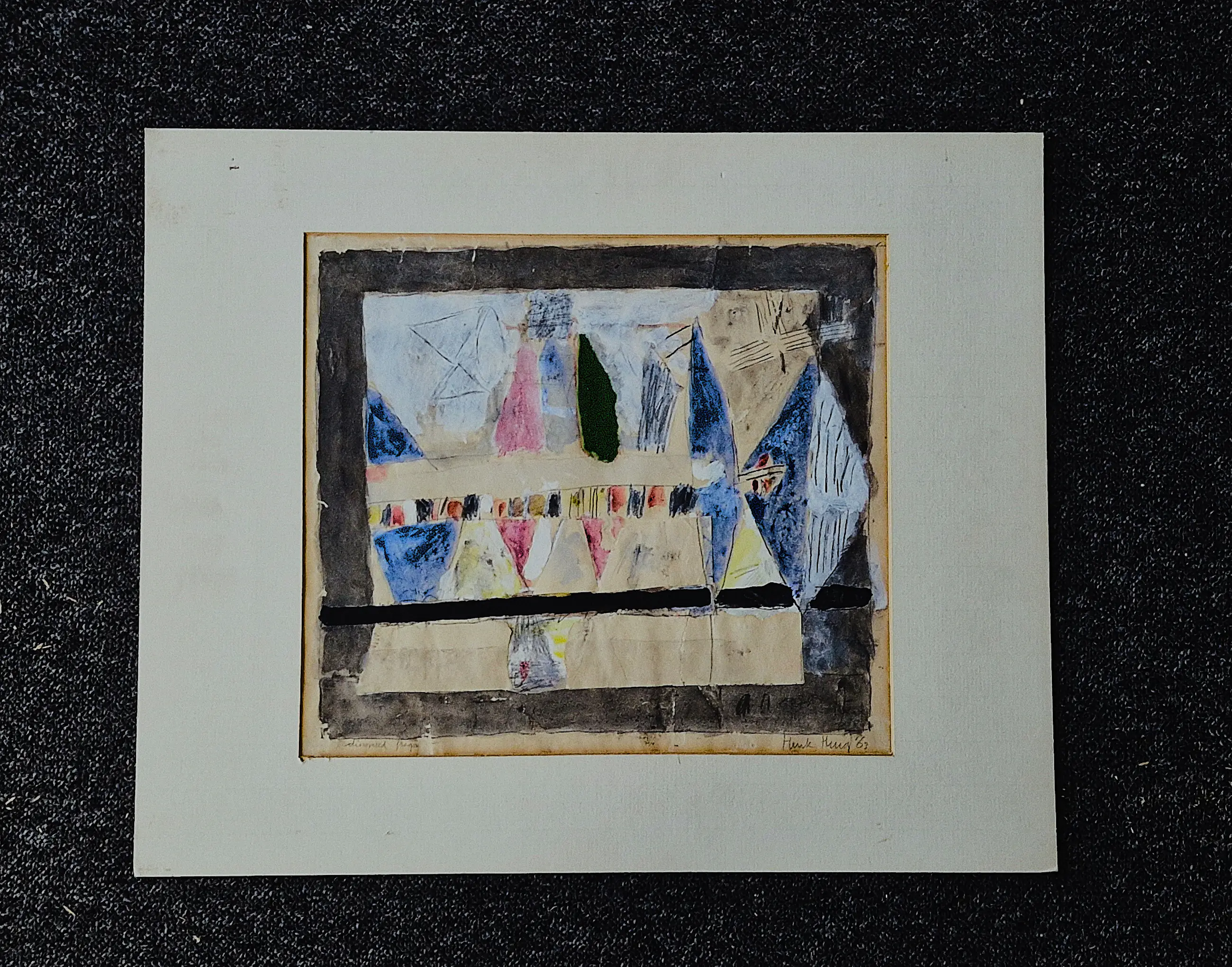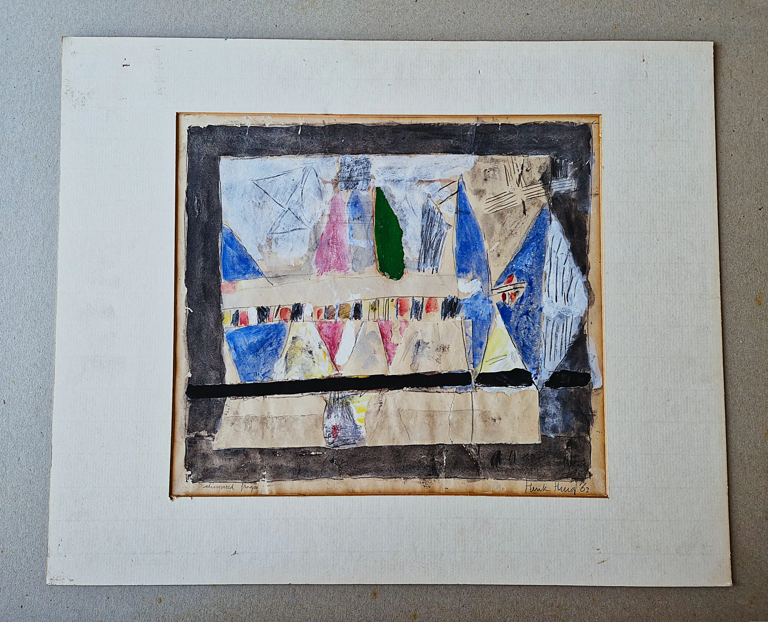 - Abstract expressionistisch geschilderde gemengde techniek (aquarel, gouache, inkt) van de Amsterdamse kunstenaar henk Huig. Verkeert in goede conditie met aan de achterzijde wat tape. Met potlood gesigneerd en gedateerd.