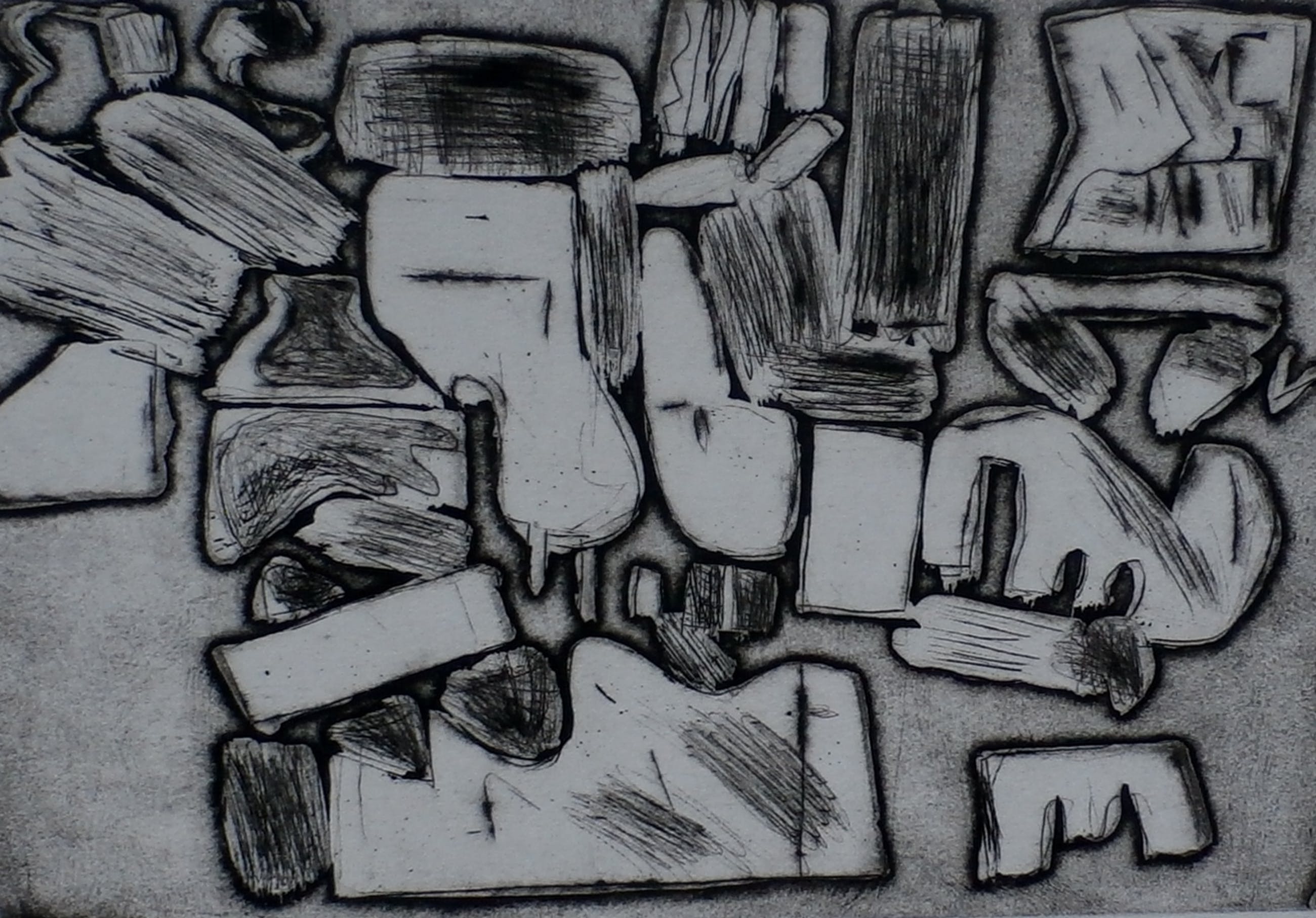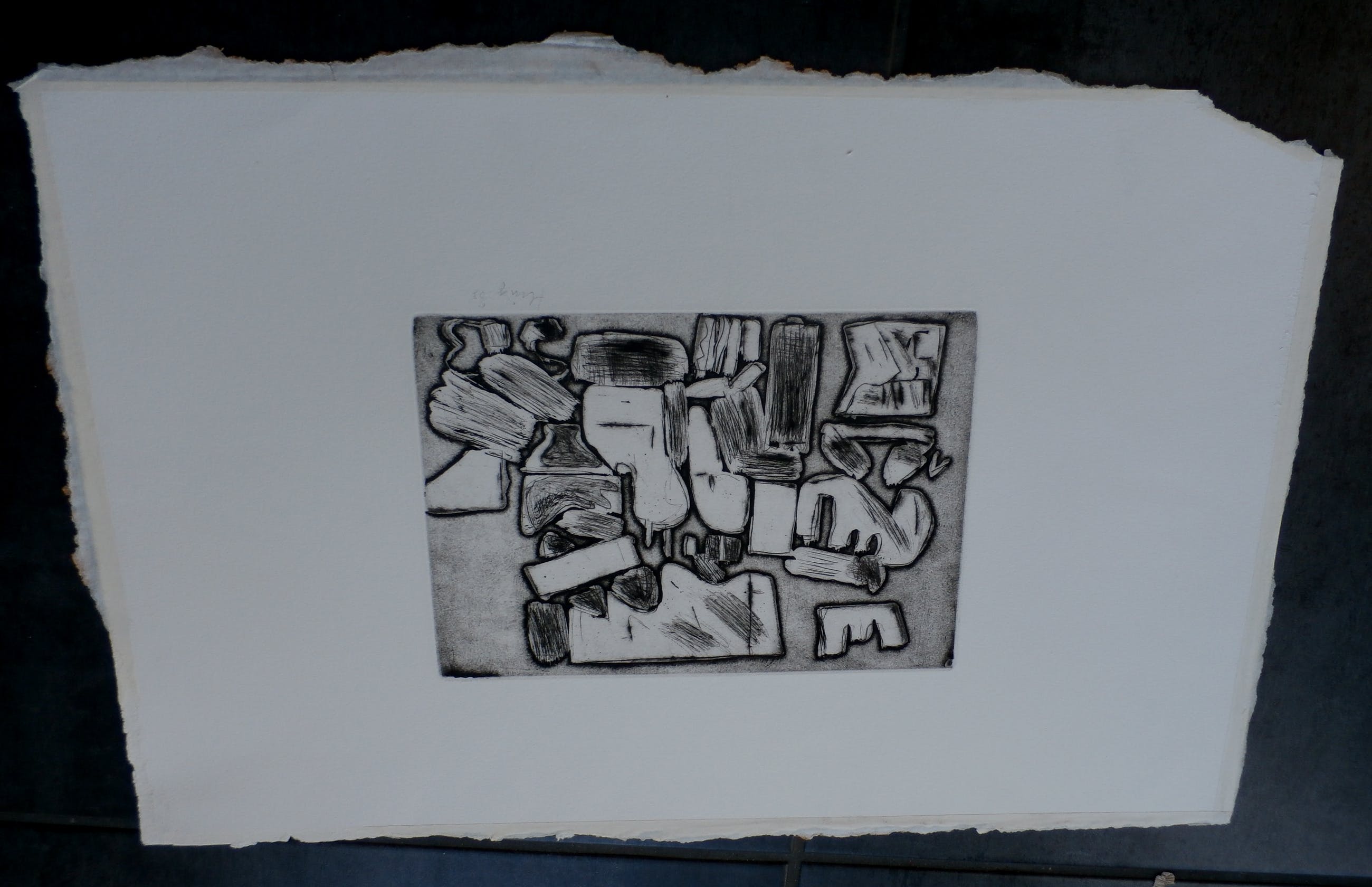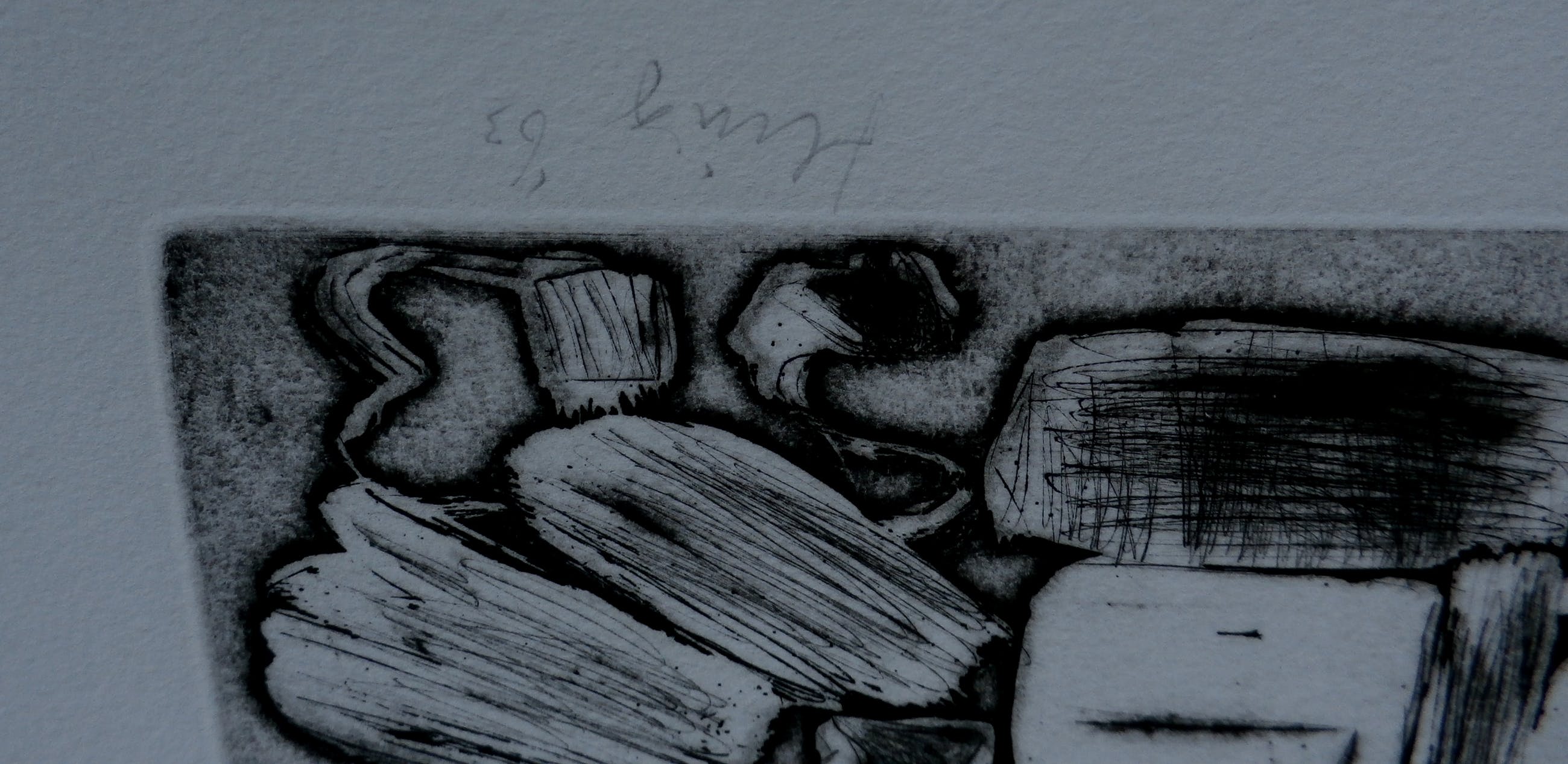 Ets uit 1963 van Henk Huig. Afmetingen blad: H33 x b50 cm. Afmetingen voorstelling: H16 x b23cm. Het werk is rechtsonder, met potlood, gesigneerd door de kunstenaar.
