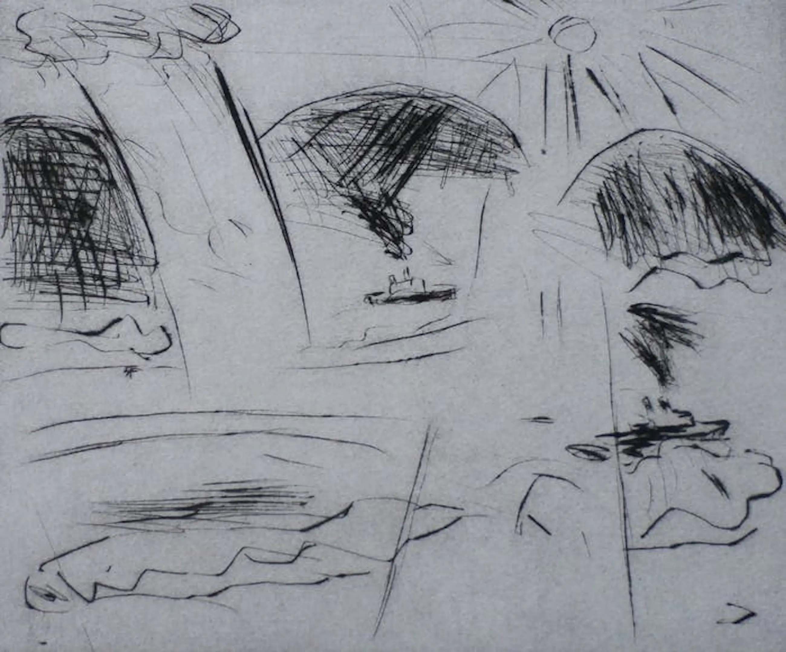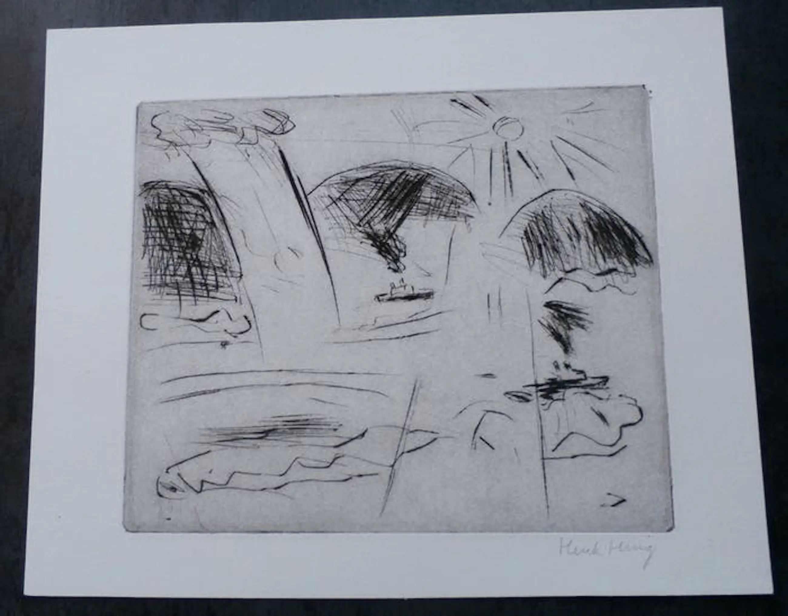 Ets van Henk Huig. Voorstelling van een boot op zee. Afmetingen voorstelling: H15 x b18 cm. Het werk is rechtsonder, met potlood, door de kunstenaar gesigneerd. De authenticiteit van het, aangeboden, werk wordt volledig gegarandeerd. Een certificaat van echtheid kan, op aanvraag, worden gemaild.