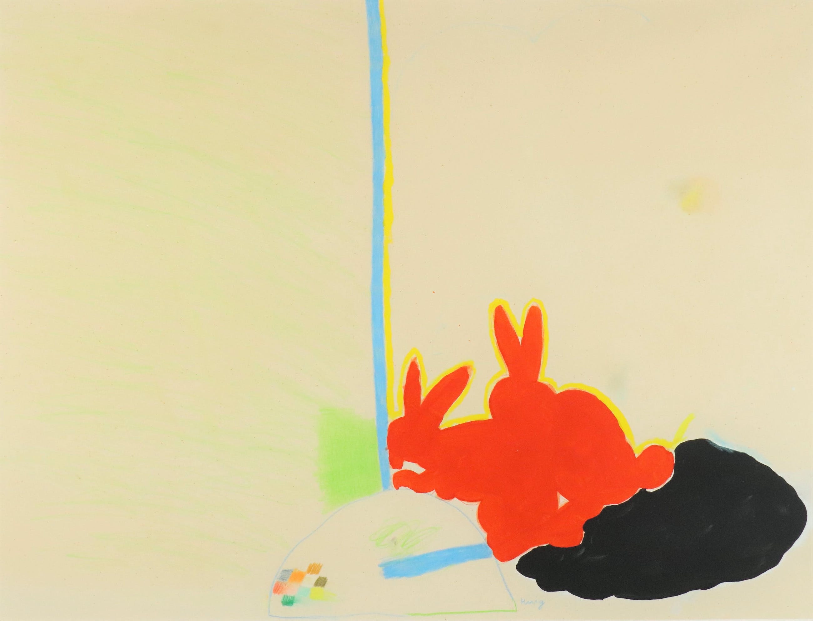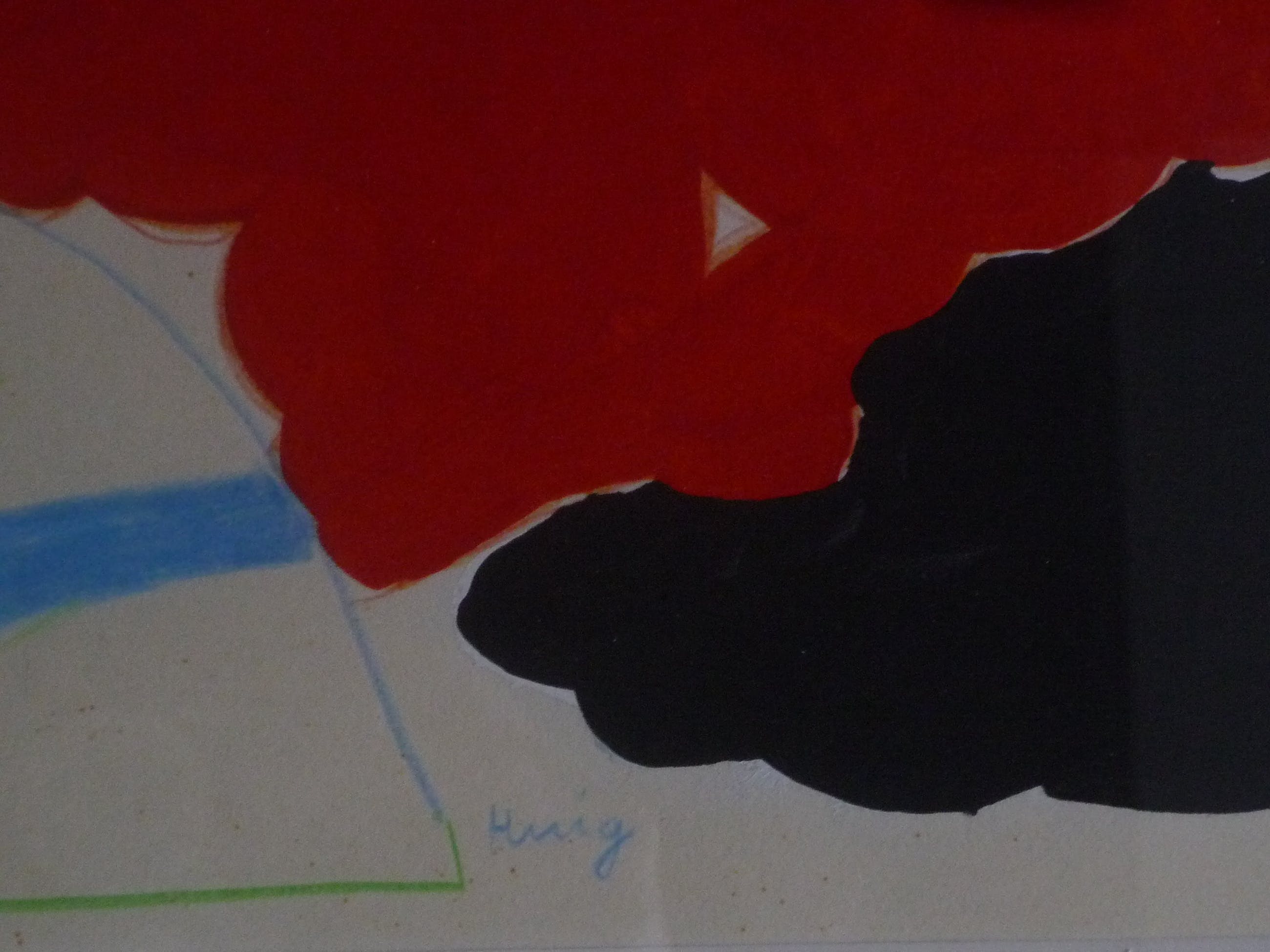Topstuk door Henk Huig, behoort tot de beste 2 % van zijn oeuvre Gouache, aquarel, pastel en kleurpotlood gecombineerd, stuk moderne kunst van zeer hoog niveau De weerspiegeling door de glasplaat verstoord de kwaliteit van de foto's enigszins