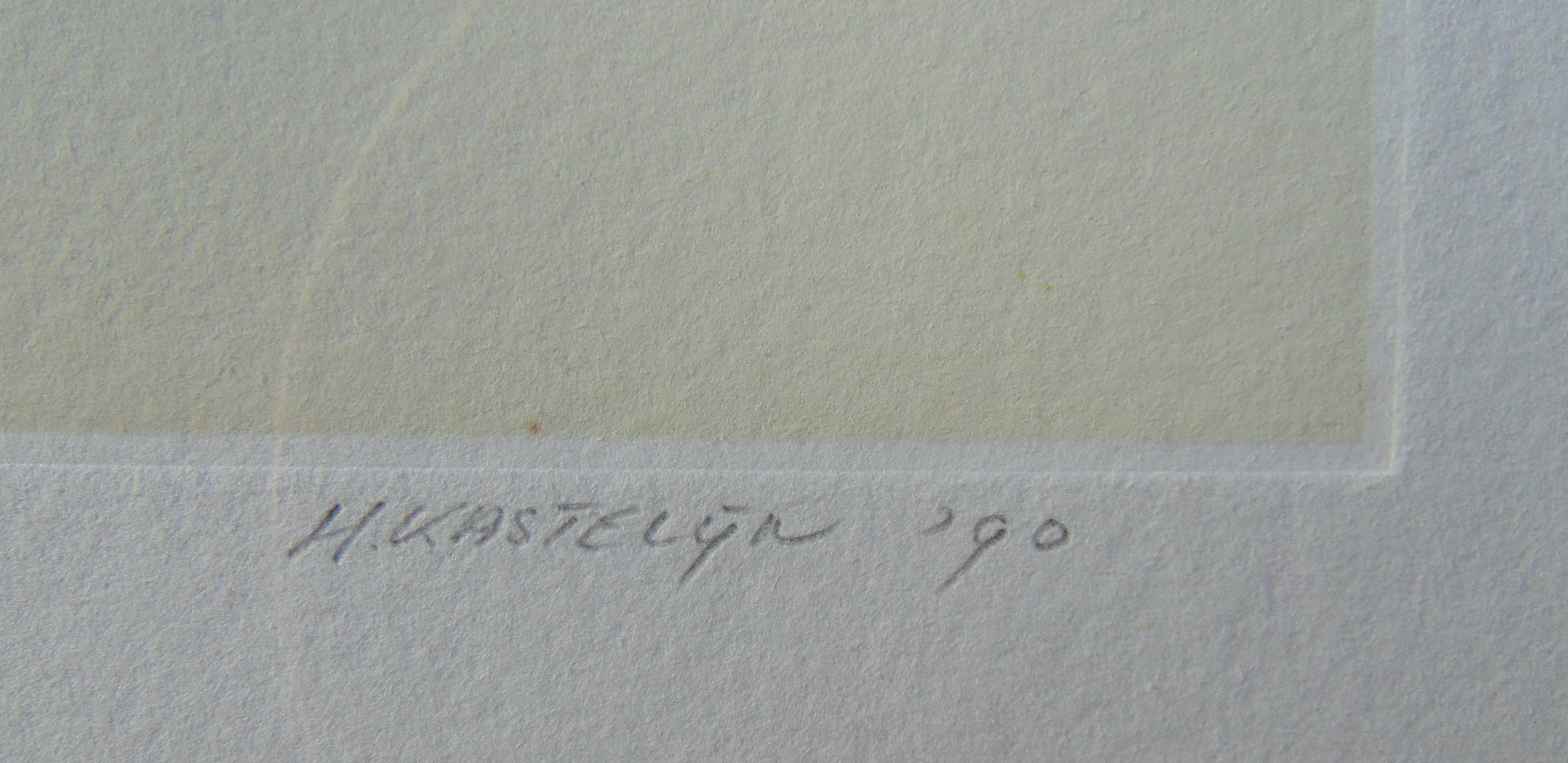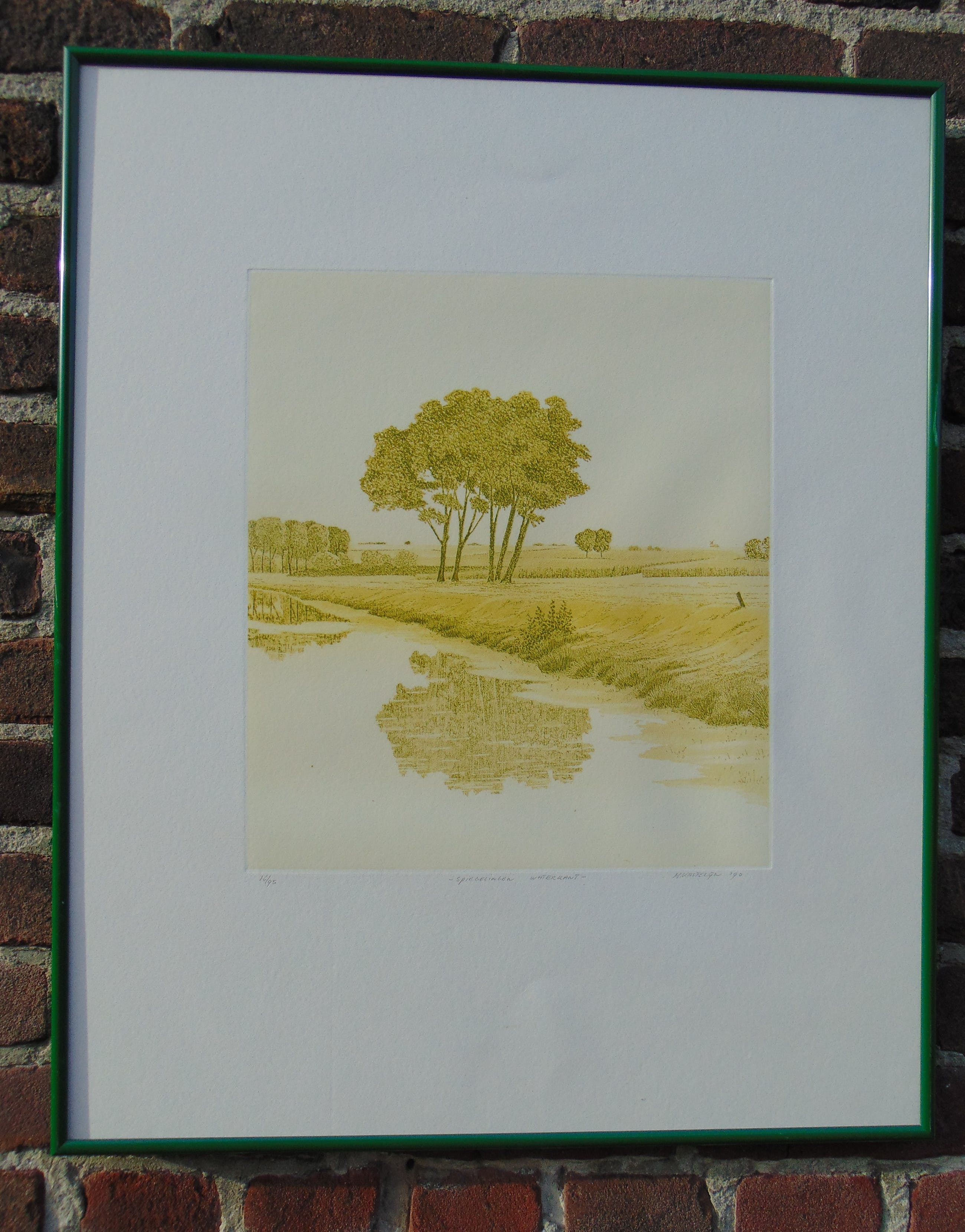 Dit werk is rechtsonder gesigneerd. Het werk is ingelijst en zit achter glas.