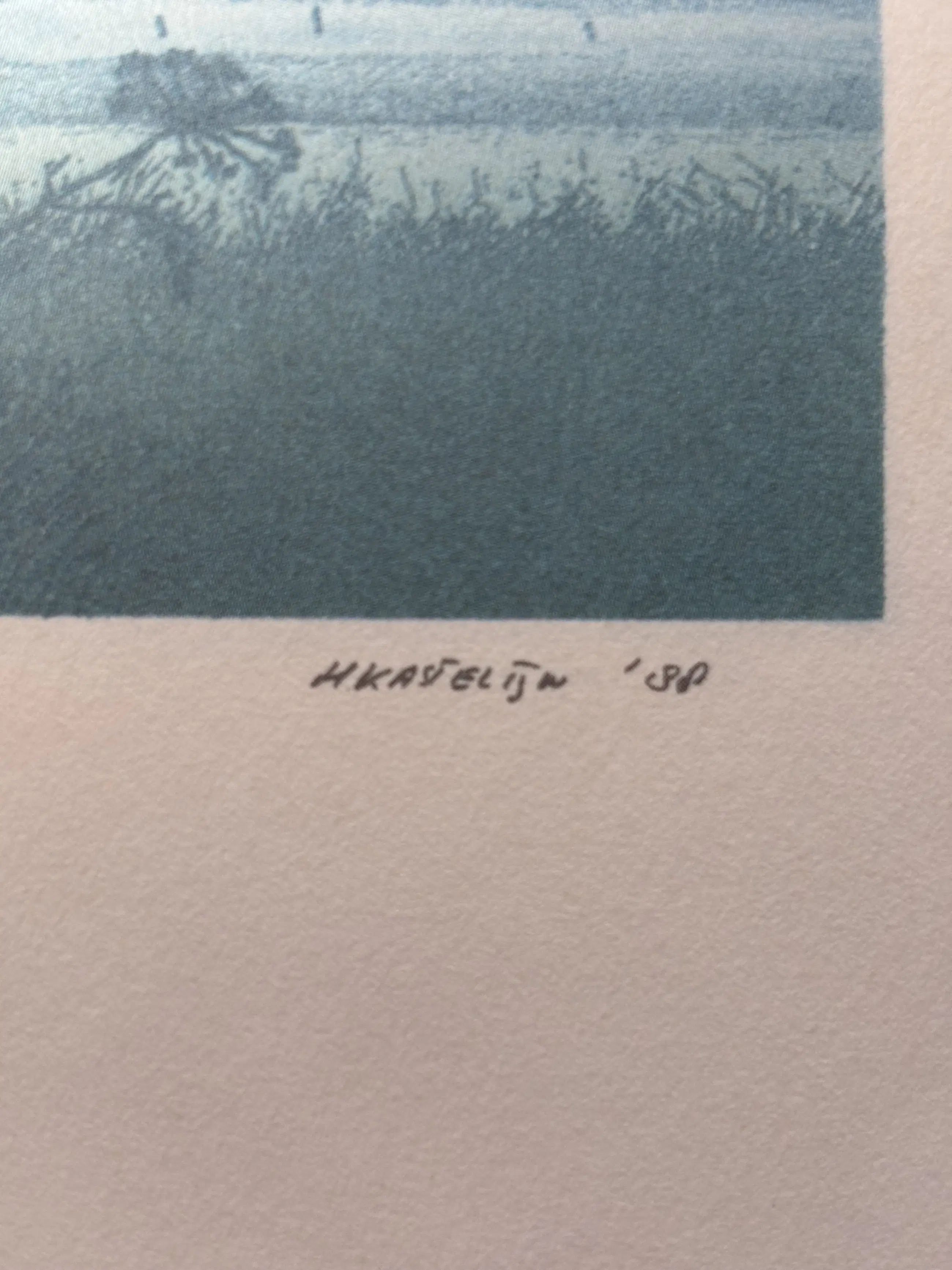 Twee mooie werken van Henk Kastelijn (1954-2008). De kunstenaar haalde zijn inspiratie voornamelijk uit landschappen. In het begin van zijn oeuvre gebruikte hij druktechnieken zoals etsen en zeefdrukken. Later gebruikte hij meer potlood en penseel. Deze litho's zijn uit 1988 en gesigneerd. Wij hebben ze verkregen door de overname van een inboedel en ze passen niet bij ons interieur.