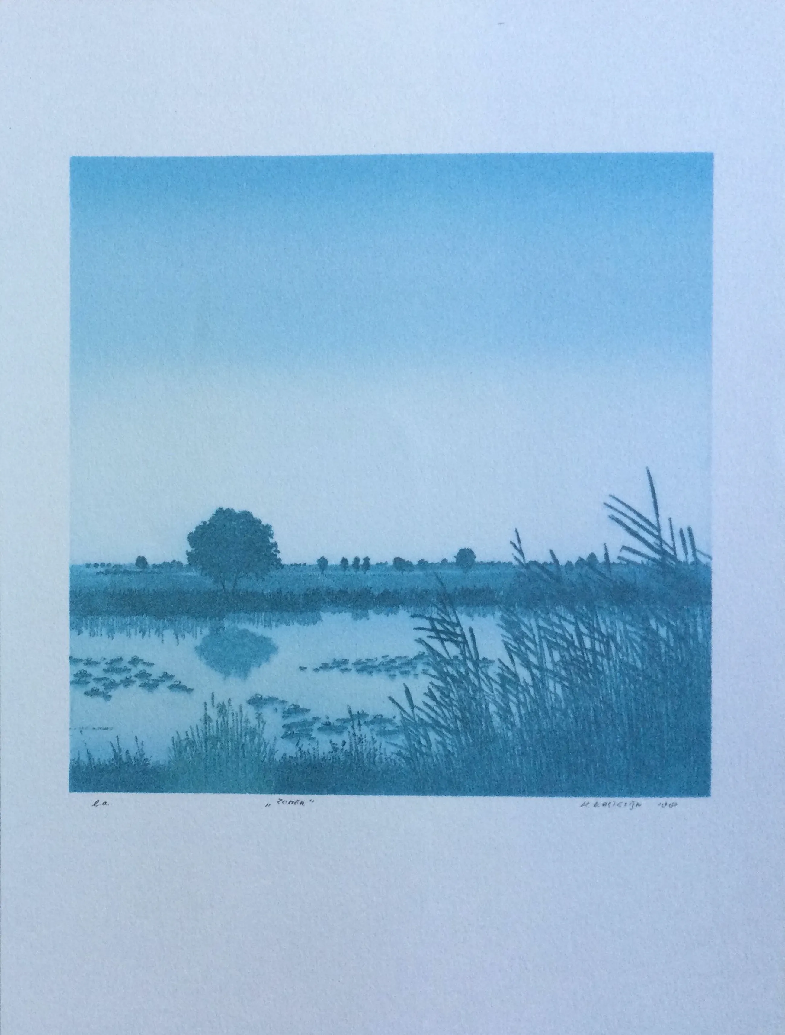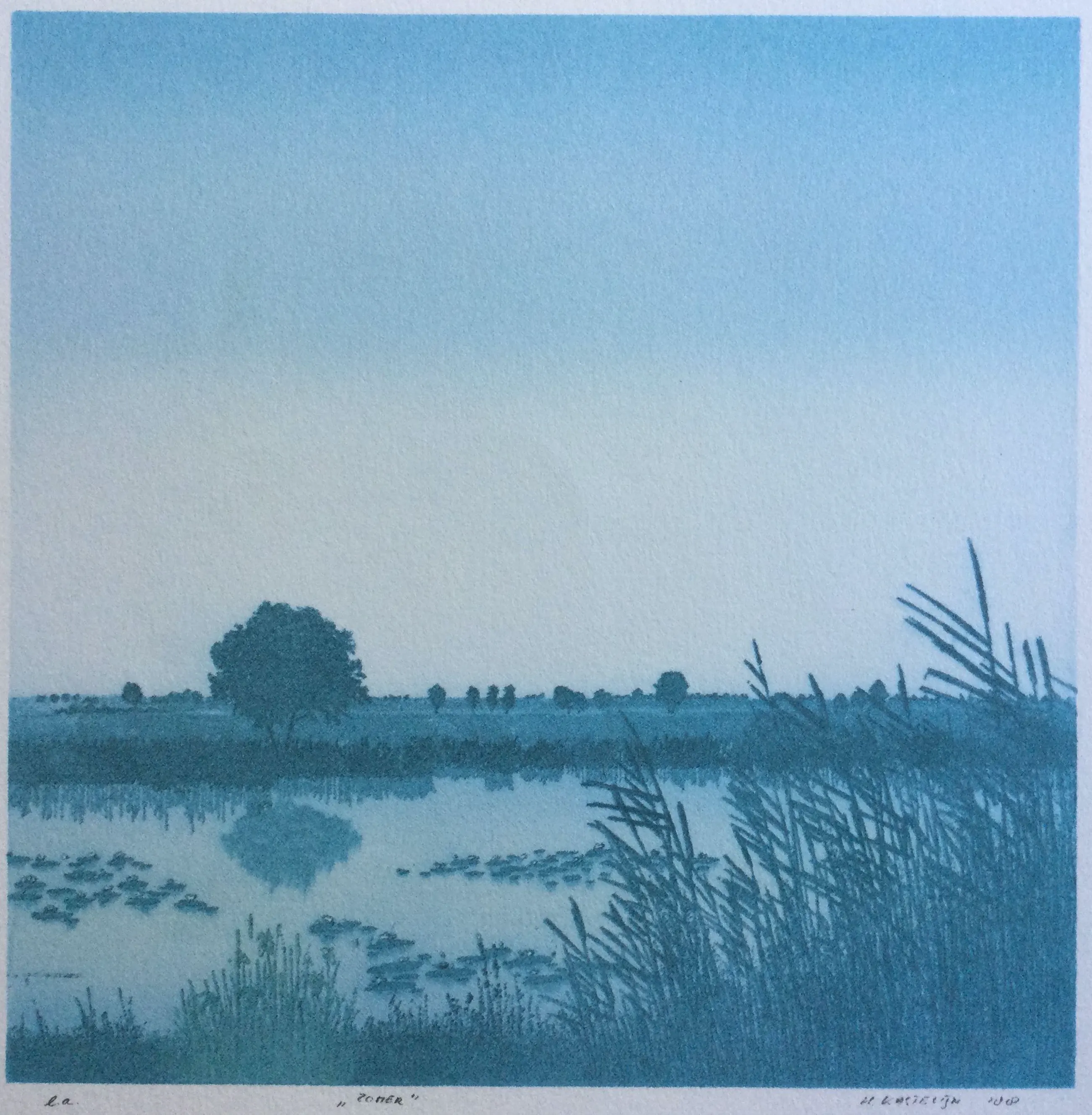 Over de kunstenaar: Henk Kastelijn (1954, Schijndel) was op en top graficus, vooral bekend van zijn realistische etsen. Op latere leeftijd heeft hij zich toegelegd op minder agressieve drukvormen en lossere technieken. Altijd heeft hij het landschap als inspiratiebron gehad.