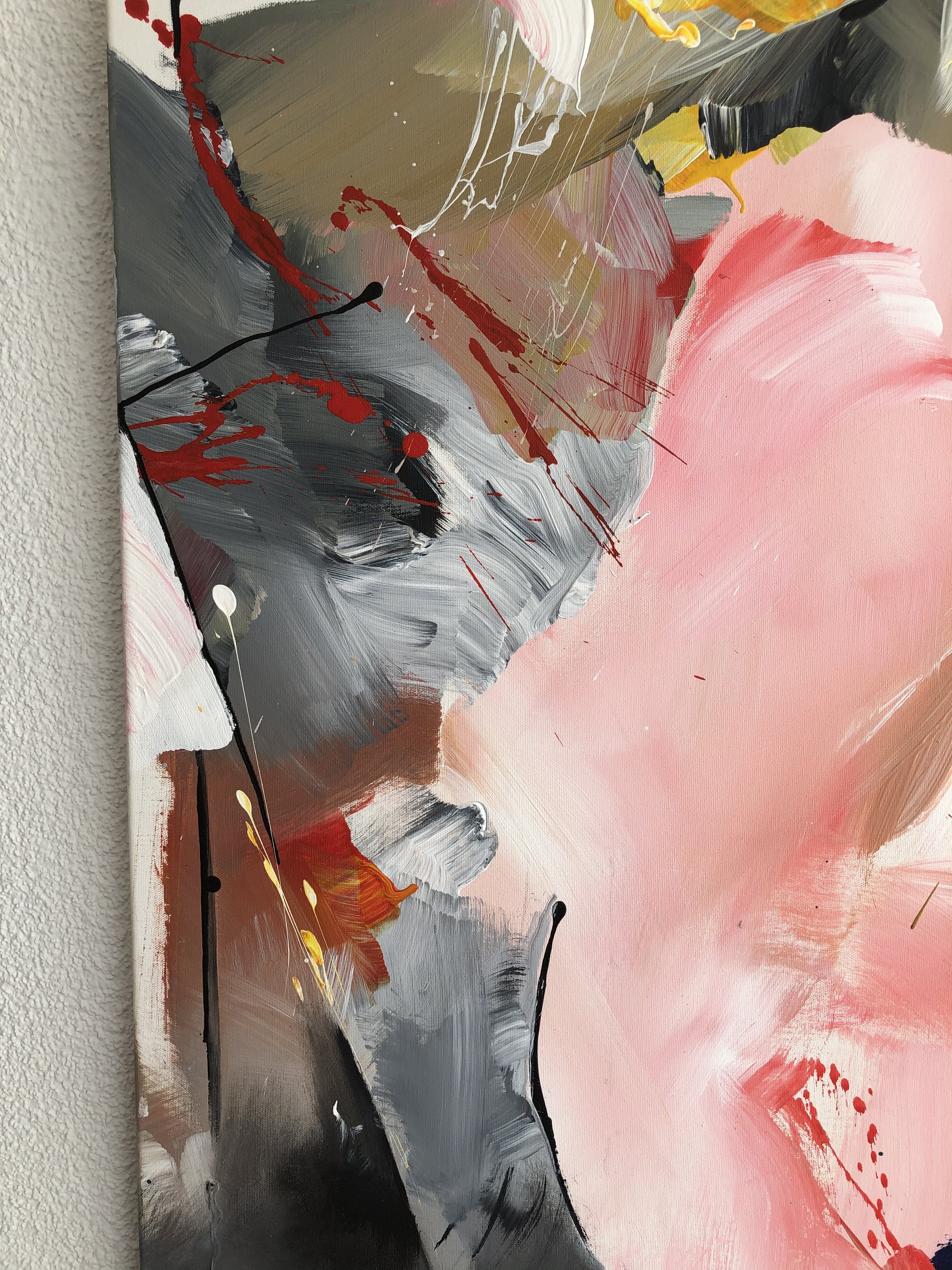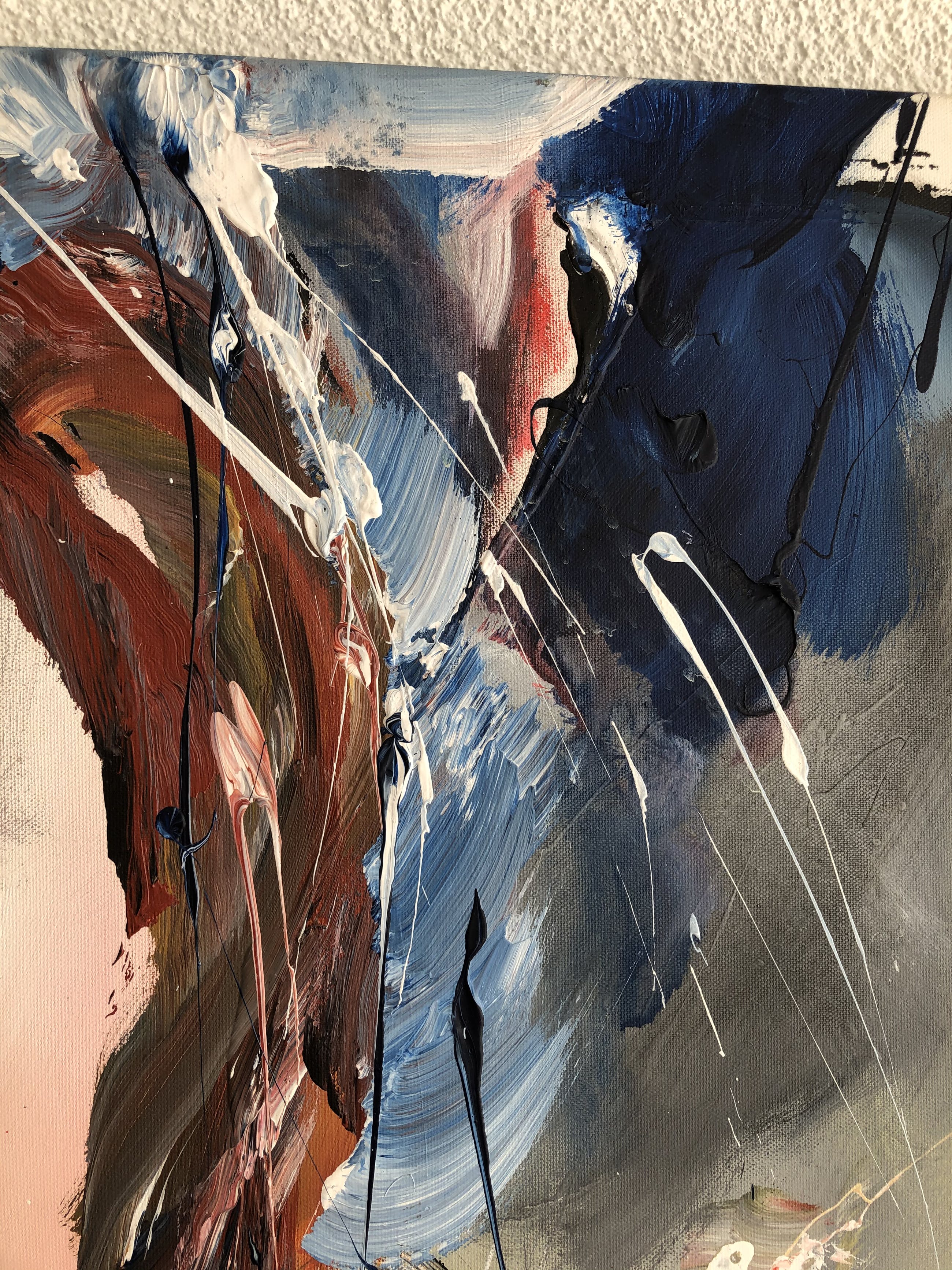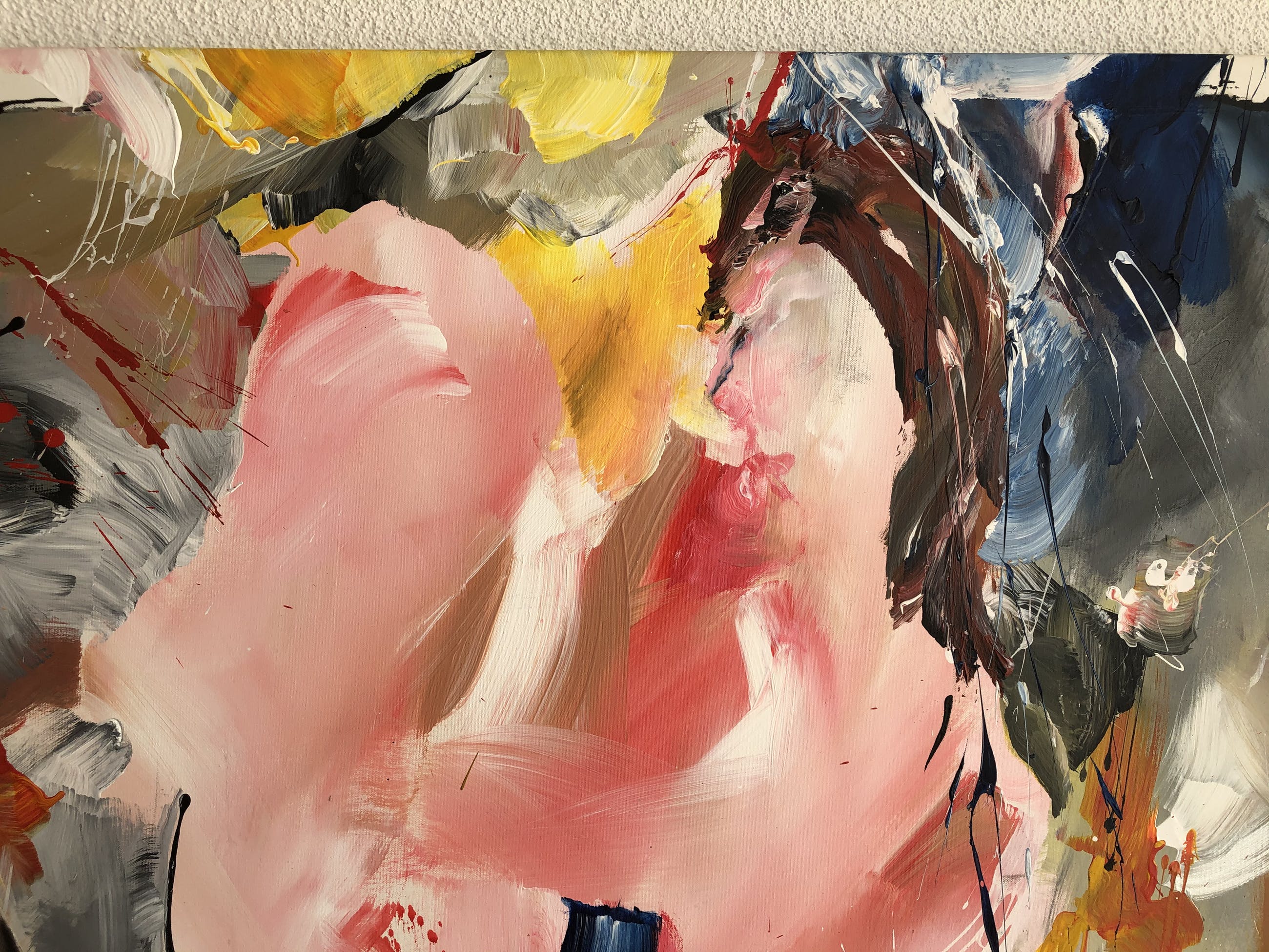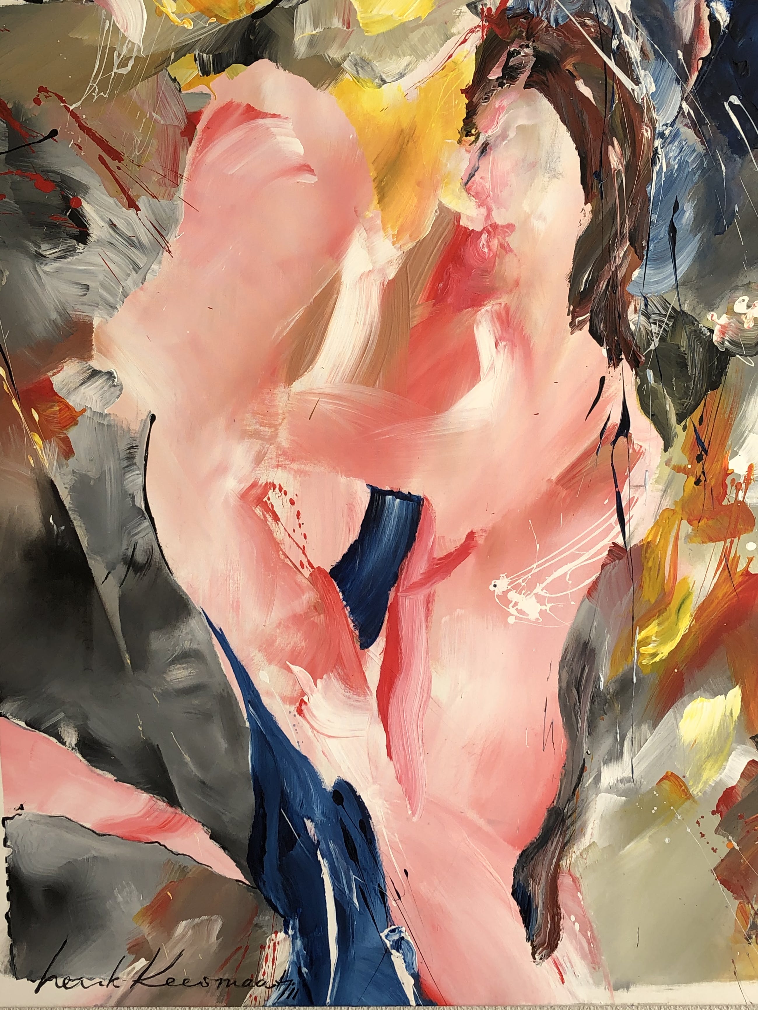 De schilder Henk Keesmaat(1950) woonde en werkte in Gouda en is later verhuisd naar Zwolle. Het schilderij heeft geen lijst omdat de zijkanten deel uitmaken van het werk. Gesigneerd linksonder.