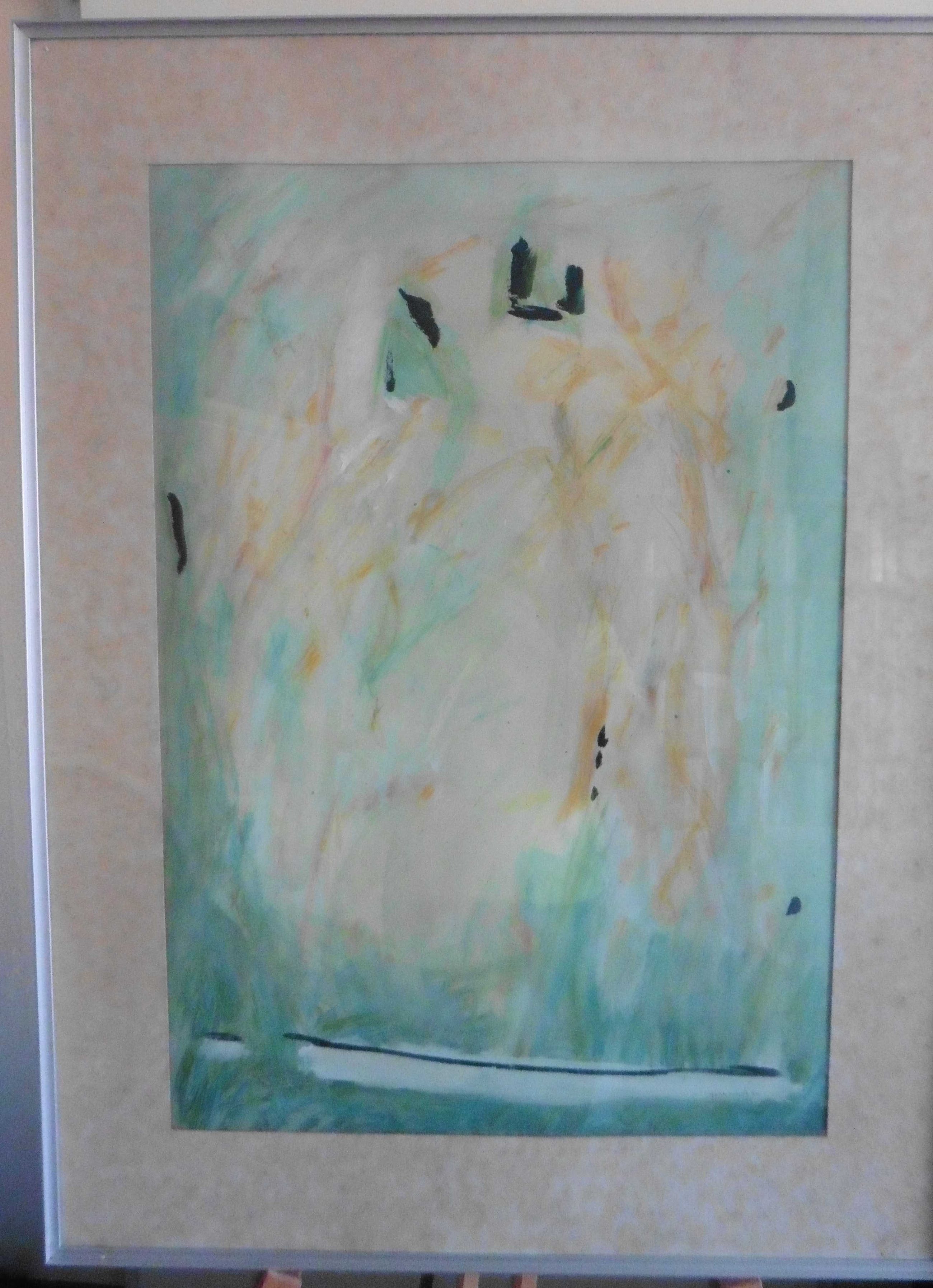 Een hele mooi abstracte schilderij van een Nederlandse kunstenaar Henk (Henricus Leonard) Koolen. Ingelijst met passepartout. Waarschijnlijk onderdeel geweest van de expositie in Galerie Malaria in Utrecht in 1984 (zie de andere kavel van dezelfde kunstenaar in mijn voorraad).