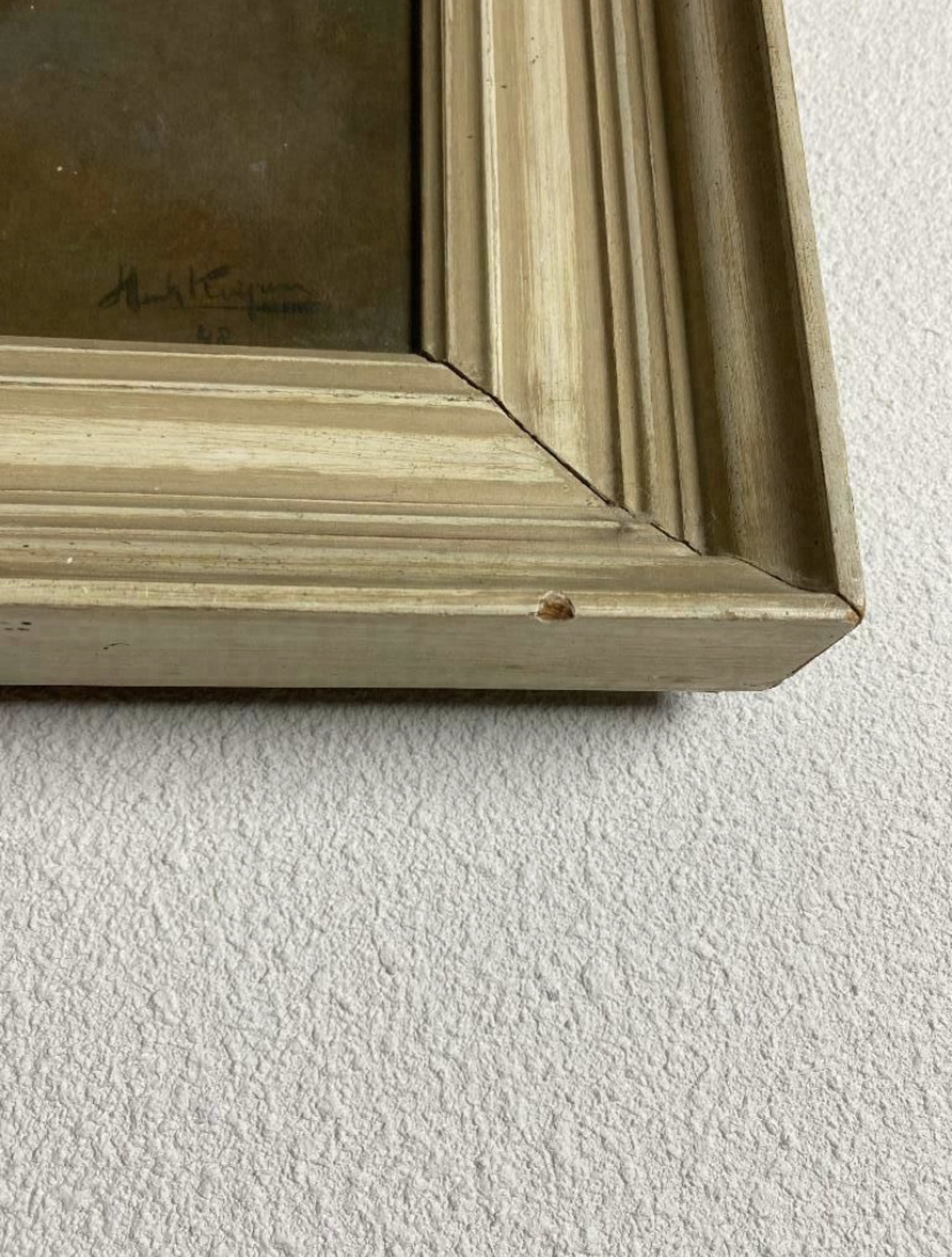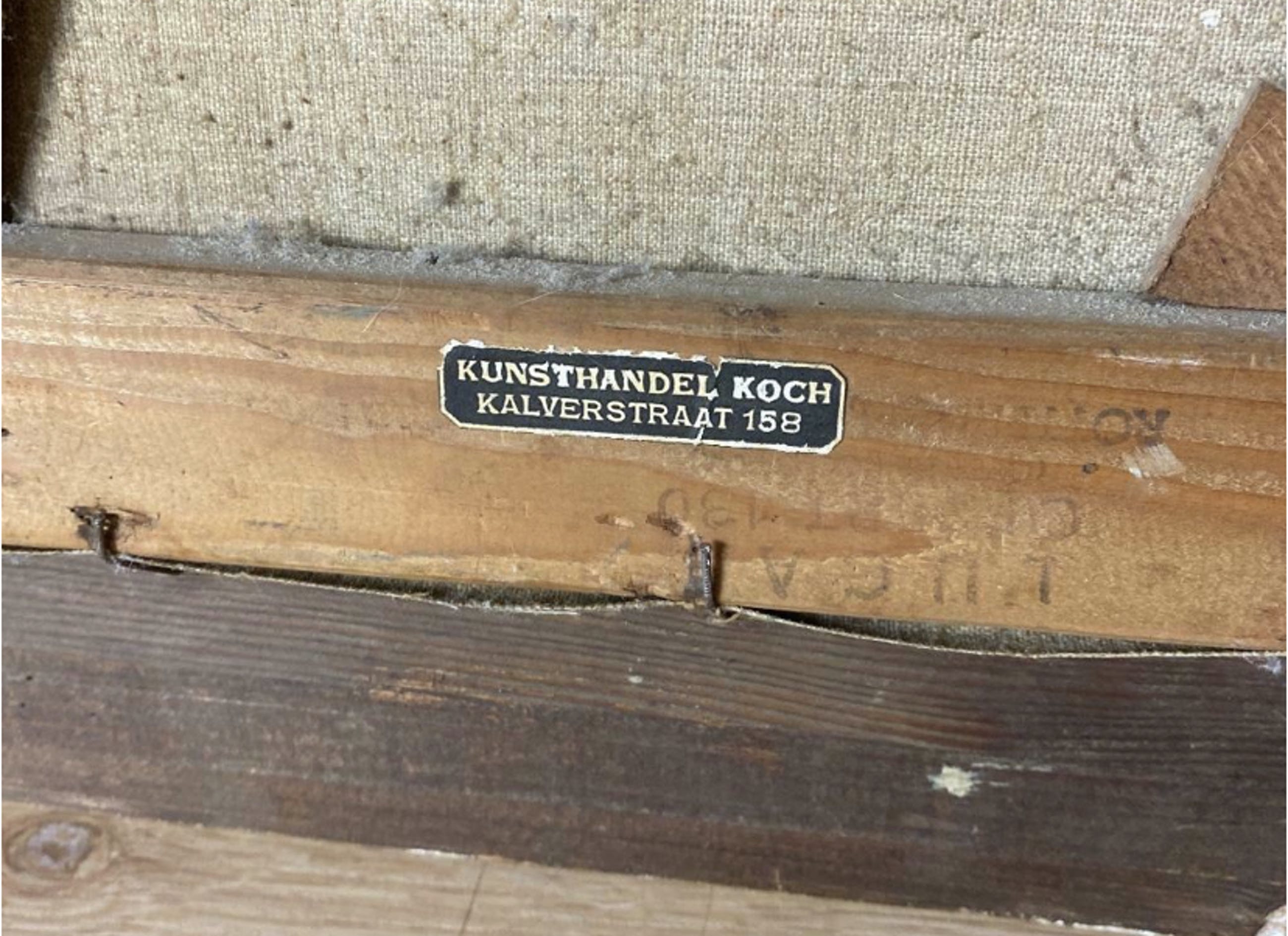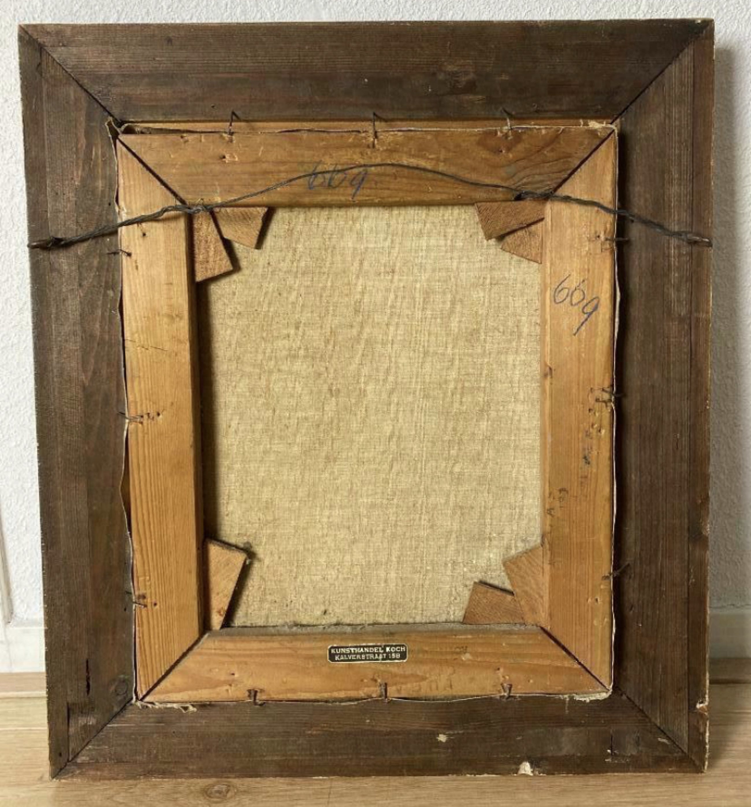 In mooie antieke gewitte houten lijst, met sticker aan de achterzijde voor 'Kunsthandel Koch Kalverstraat 158'.