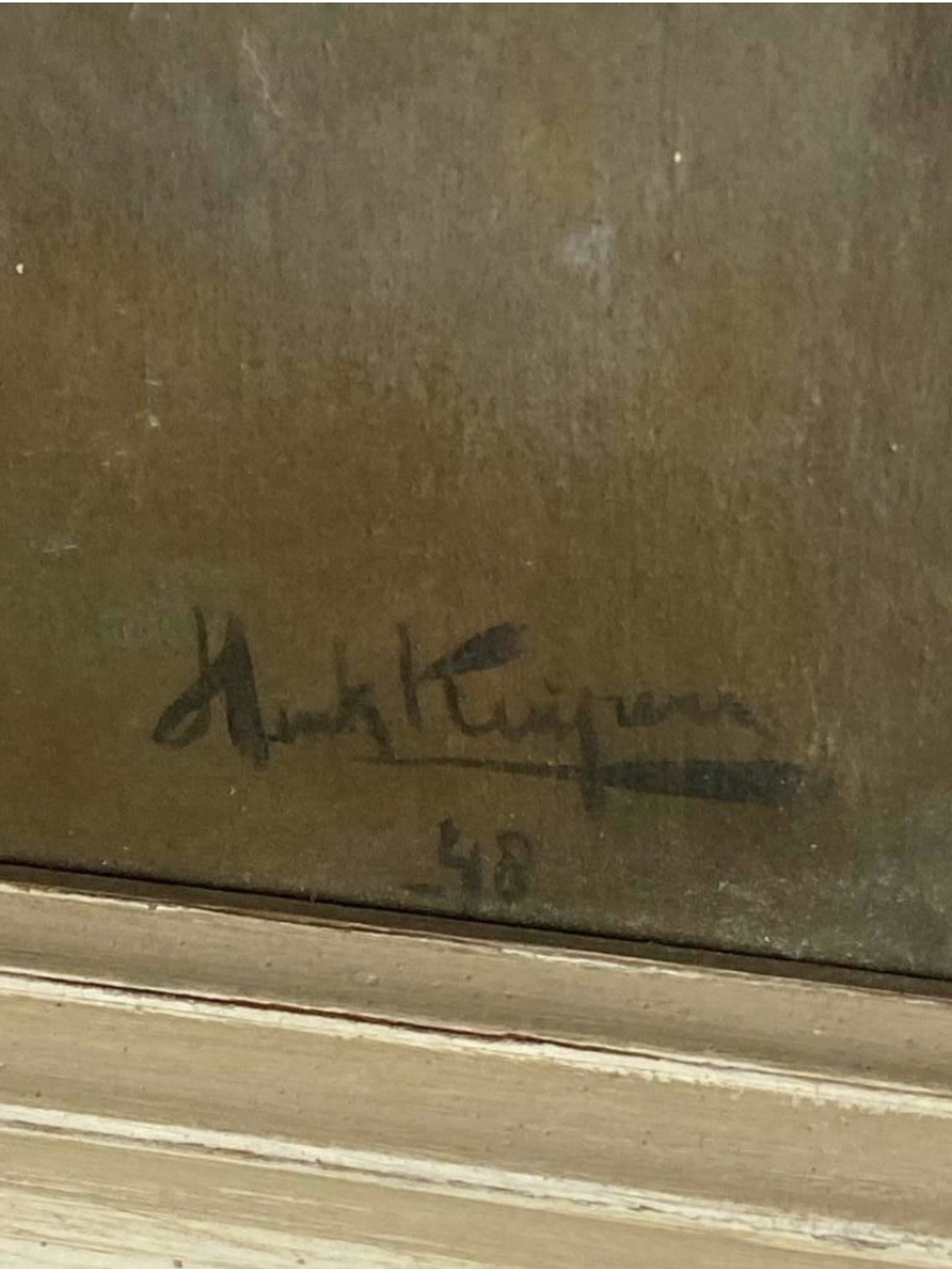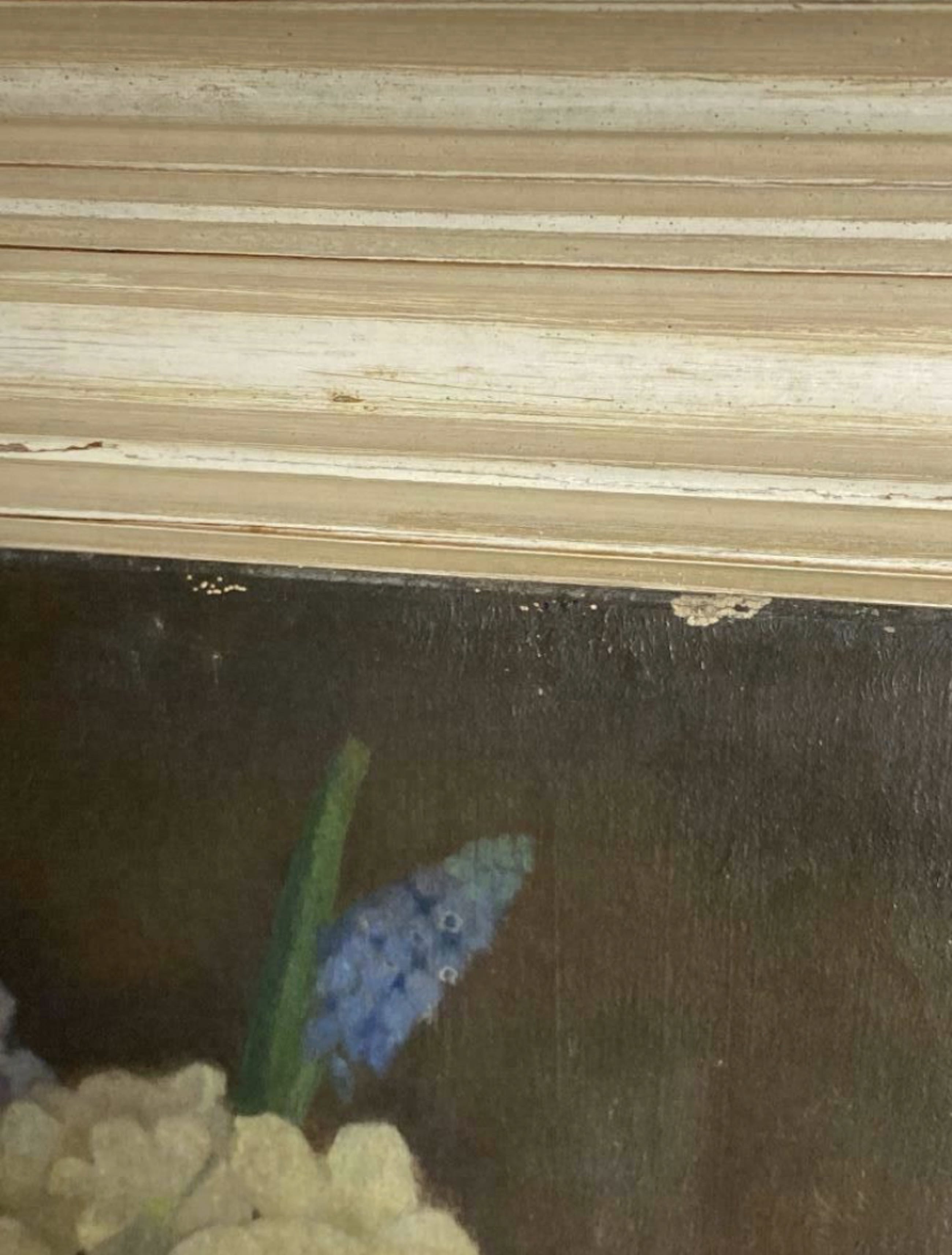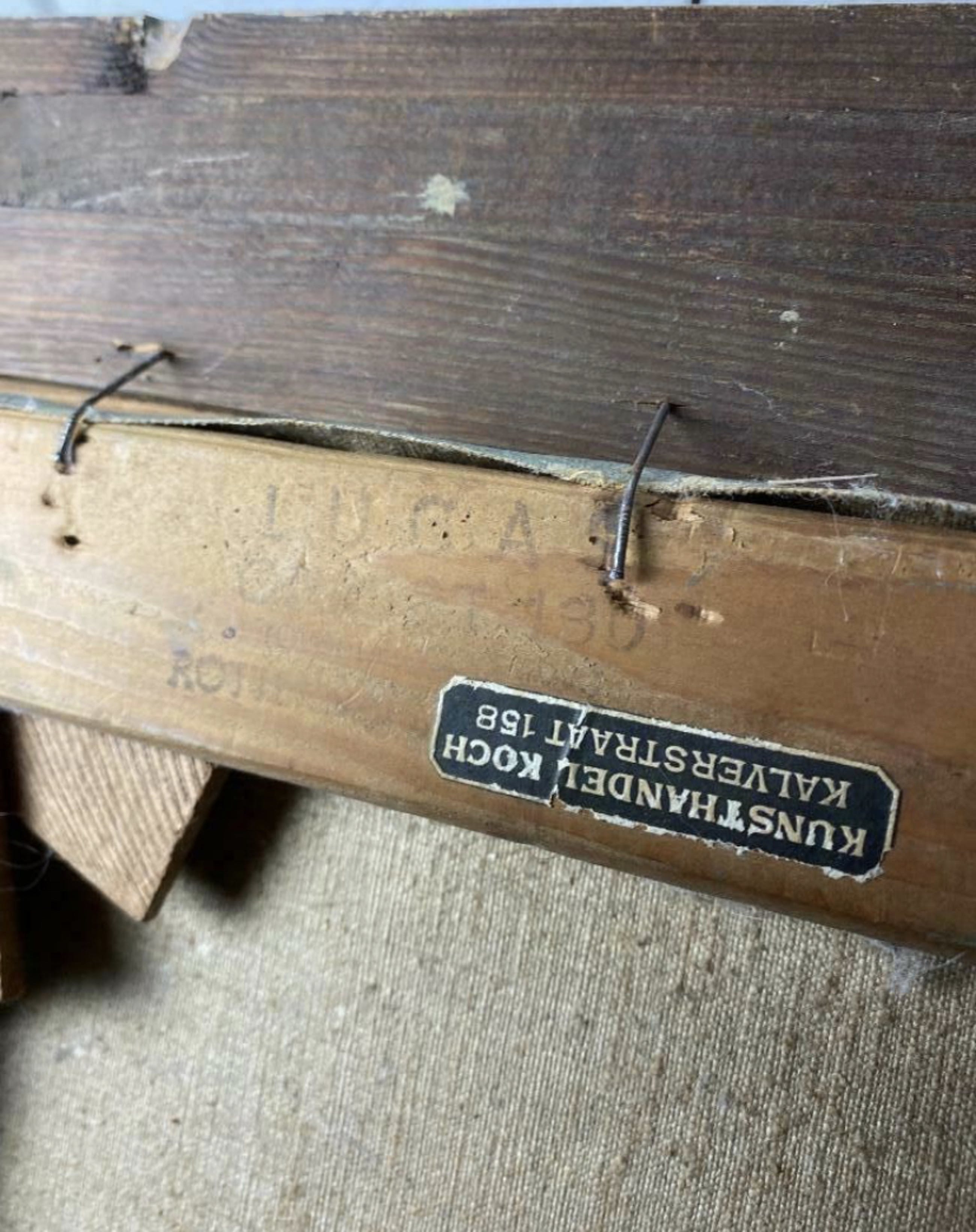 In mooie antieke gewitte houten lijst, met sticker aan de achterzijde voor 'Kunsthandel Koch Kalverstraat 158'.