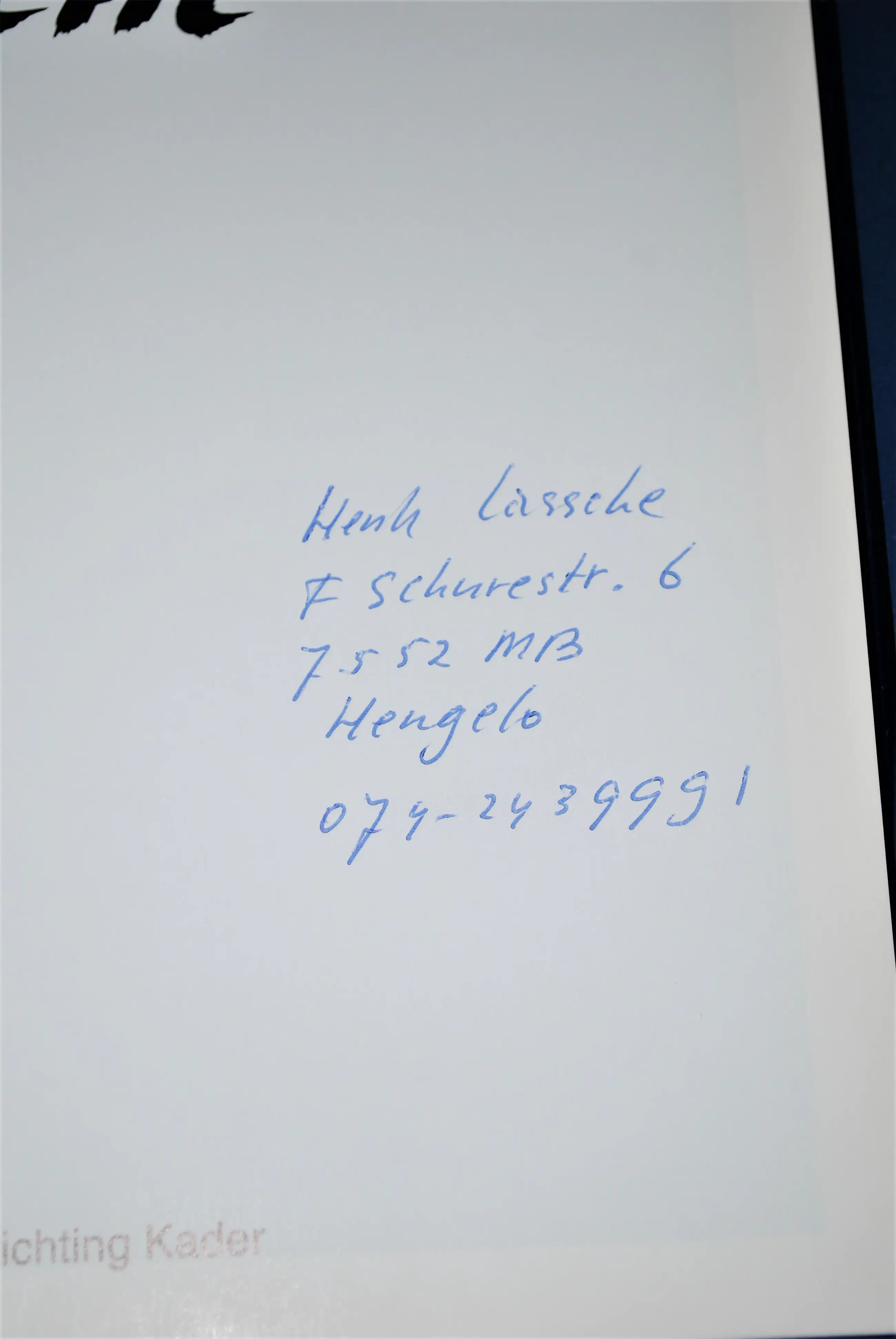 Het boek is gesigneerd/beschreven door Lassche