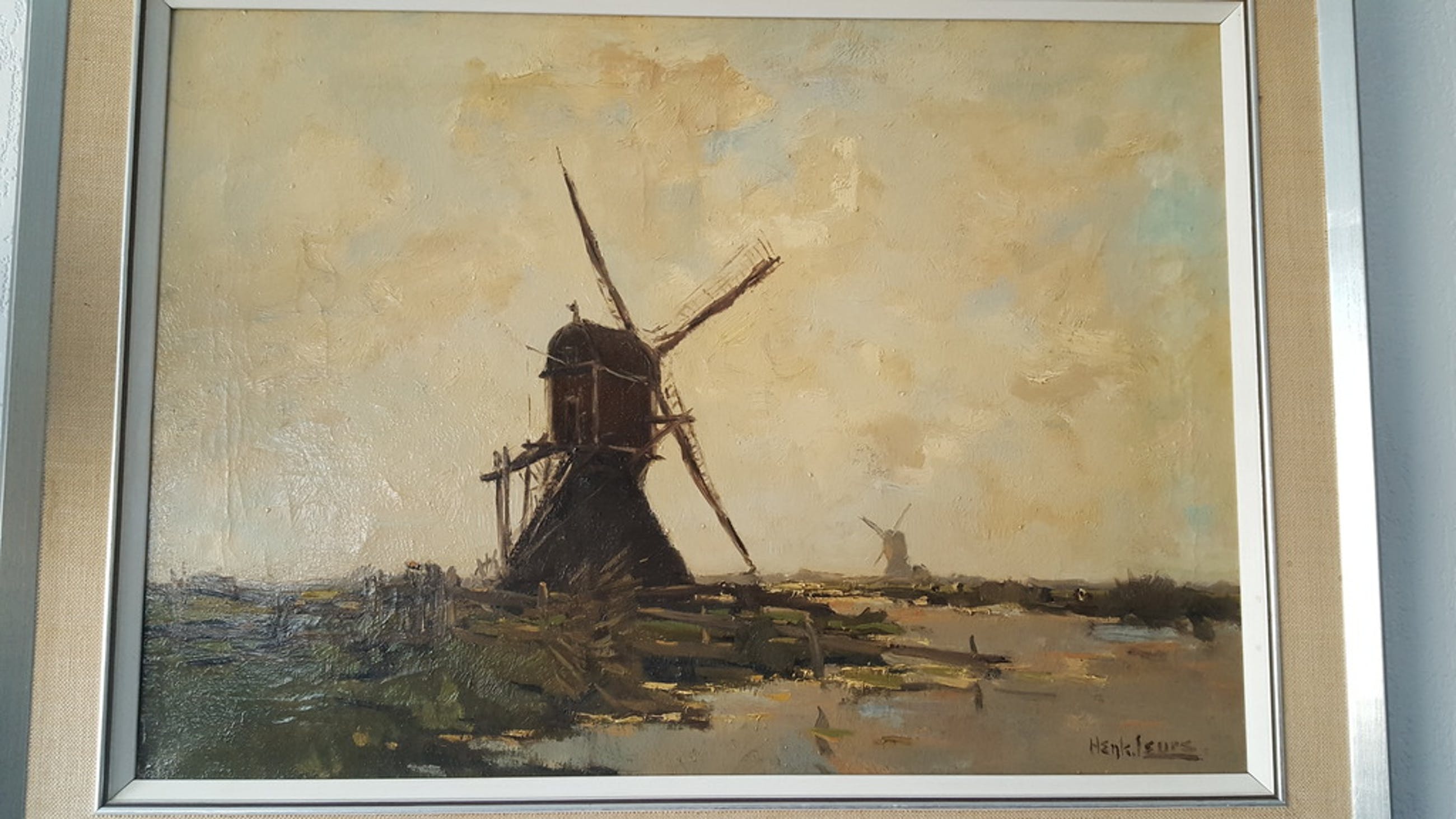De afmetingen van het doek zijn 70x50 verder zit er een lijst omheen. De conditie van het schilderij is goed alhoewel het schoongemaakt moet worden.