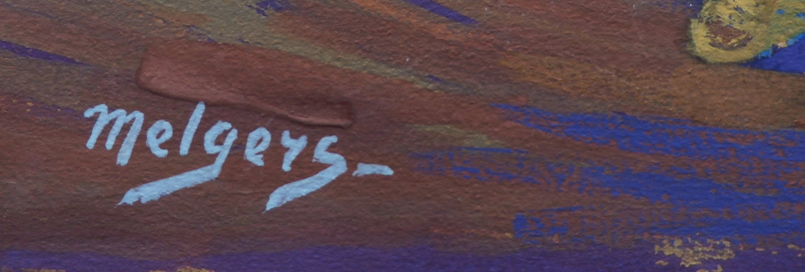 Fraaie gouache van Hendrik Melgers. Titel: In het circus. Afmetingen: 56 x 47 cm. Gesigneerd links onder met grijze verf. De authenticiteit van het aangeboden werk wordt voor 100% gegarandeerd. Een certificaat van echtheid kan, op aanvraag, worden meegestuurd.De verzendkosten zijn wat hoger i.v.m. de te verzekeren waarde.