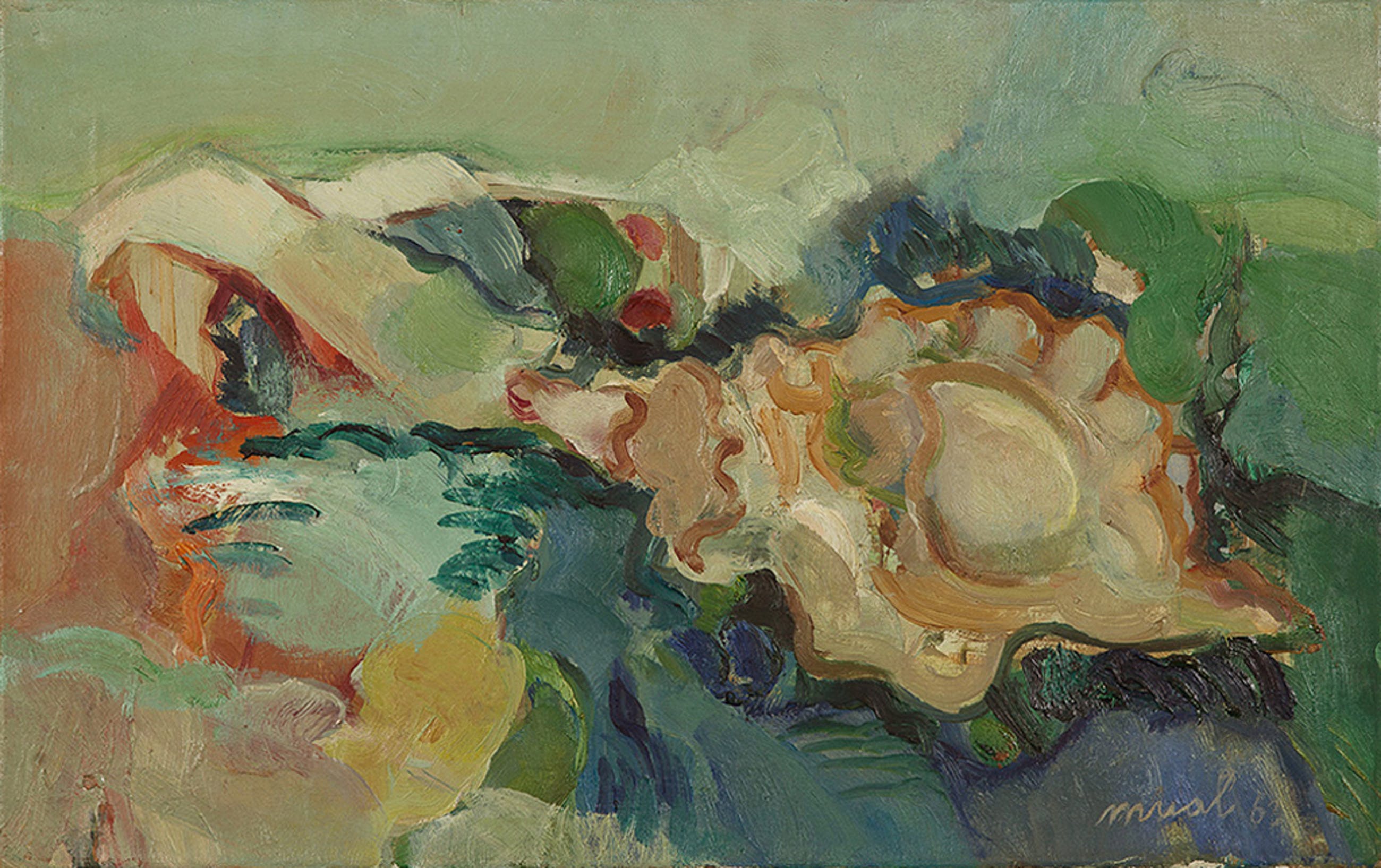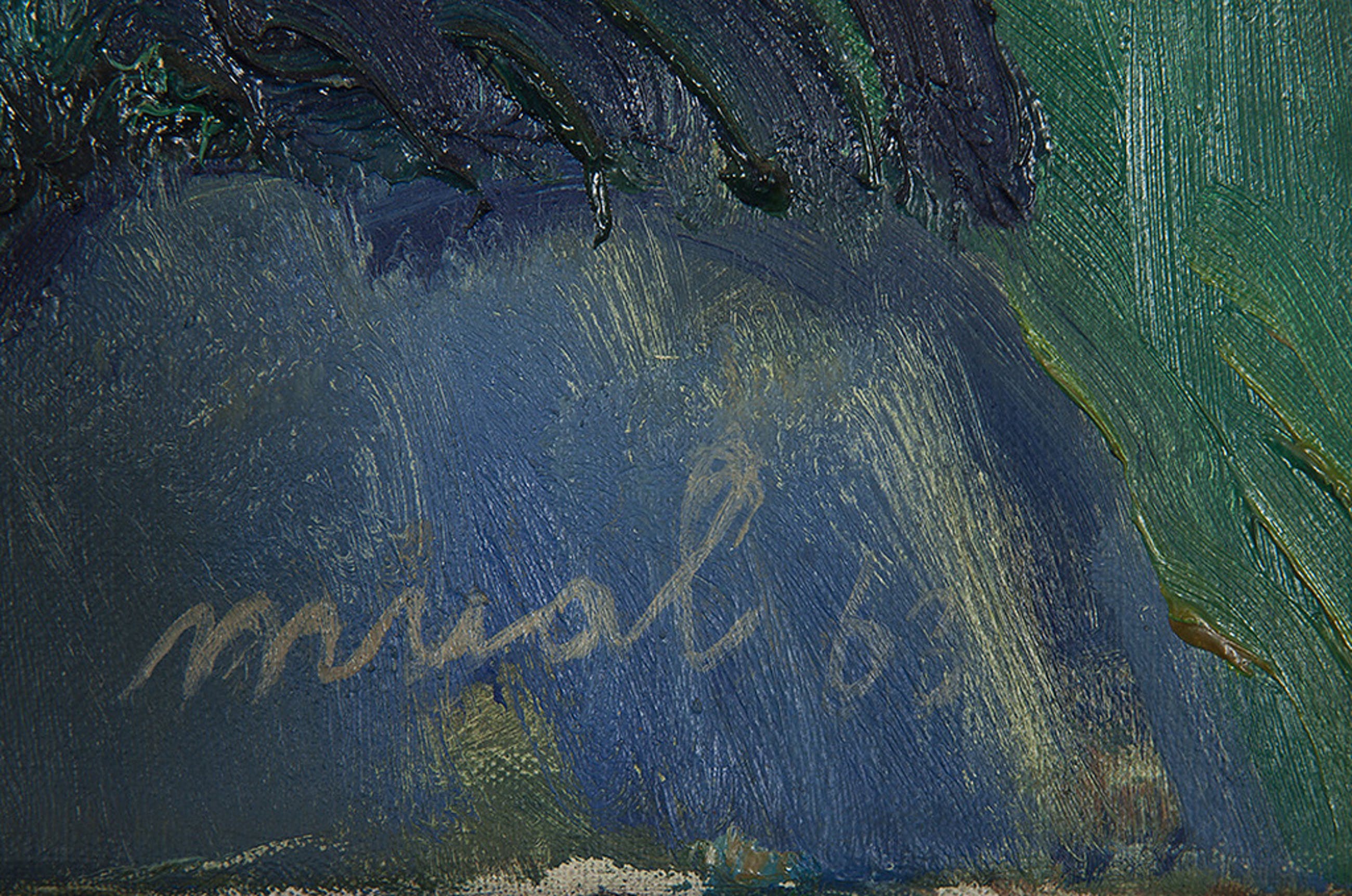 Schattig spontaan werk, in goede staat op twee ouderdomssporen na (onder normale omstandigheden nauwelijks zichtbaar); het spieraam is aan twee zijden zeer licht doorgedrukt en één kleine buts linksonder.
