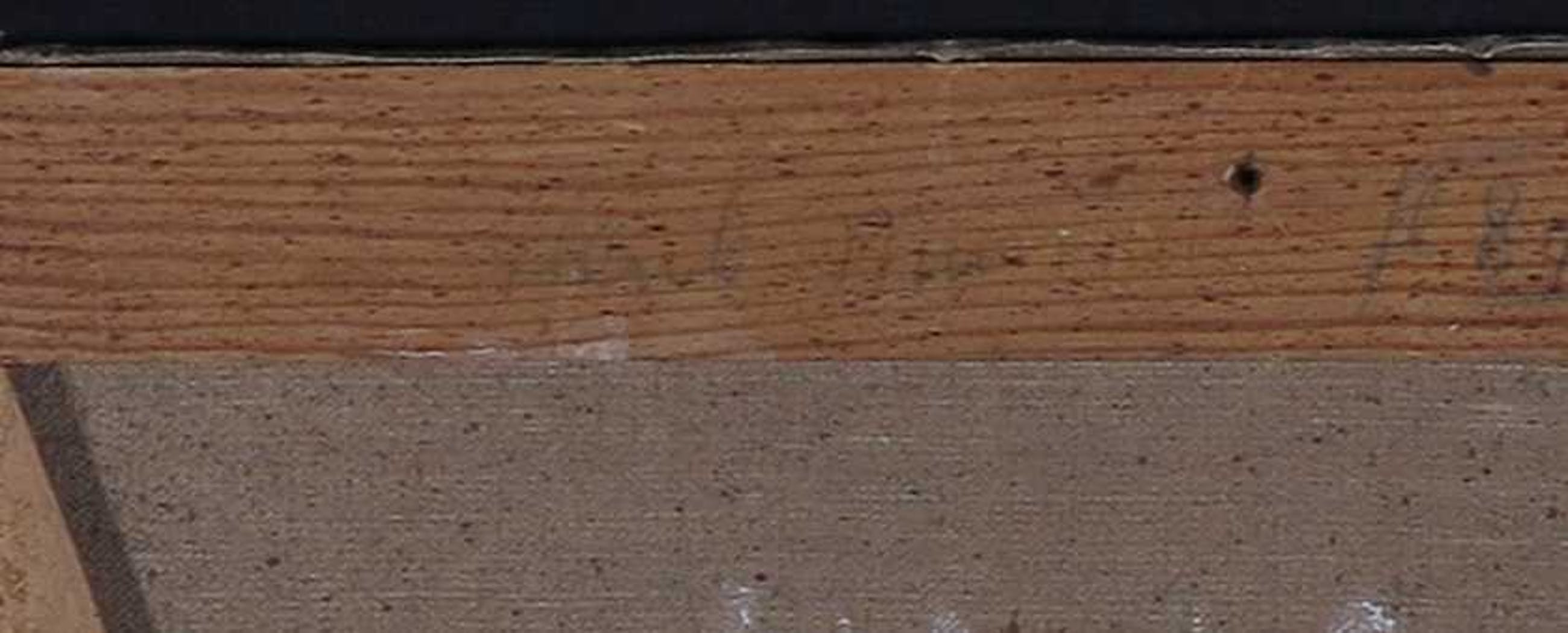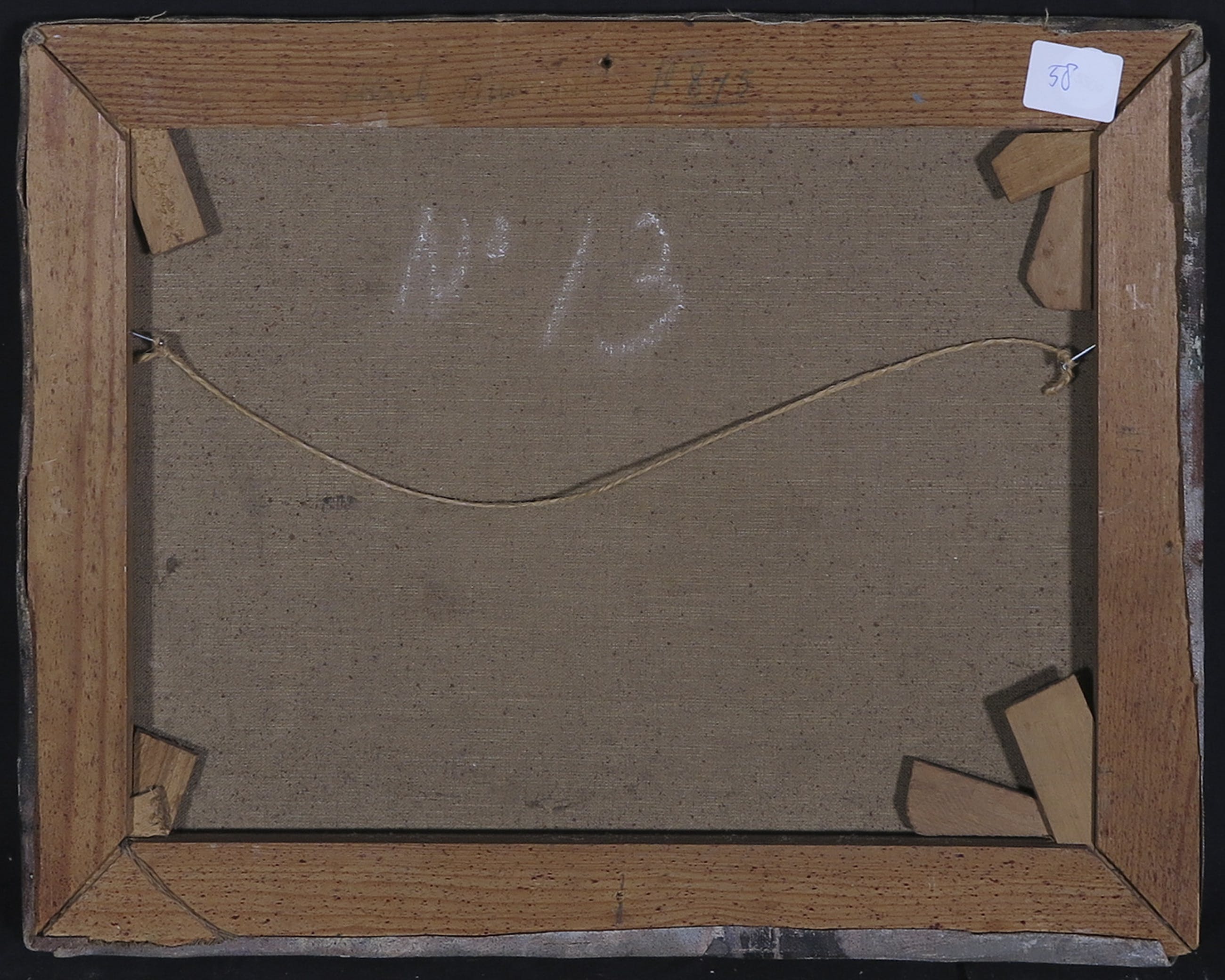 Naam (signatuur?) van kunstenaar staat achterop het spieraam.