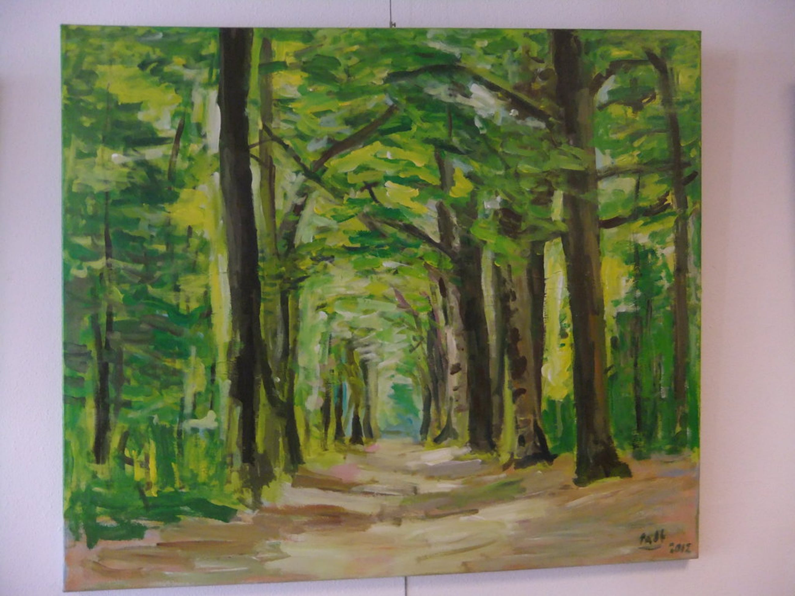 Schilderij van Henk Padt, titel: Bosgezicht (2012). Acryl op doek, maat 100x120 cm. Niet ingelijkst. Oplage: 1. Uitstekende conditie.