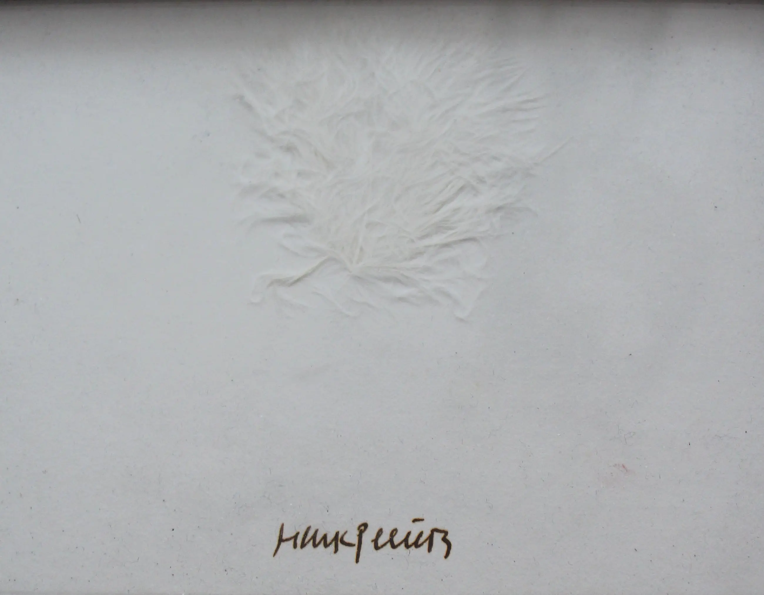 Veertje op papier van Henk Peeters. Het werk is afkomstig van de verkooptentoonstelling bij uitgeverij Bebert in 1986 (29/9 T/M 29/11/1986). Afmetingen werk: H11 x b17cm.