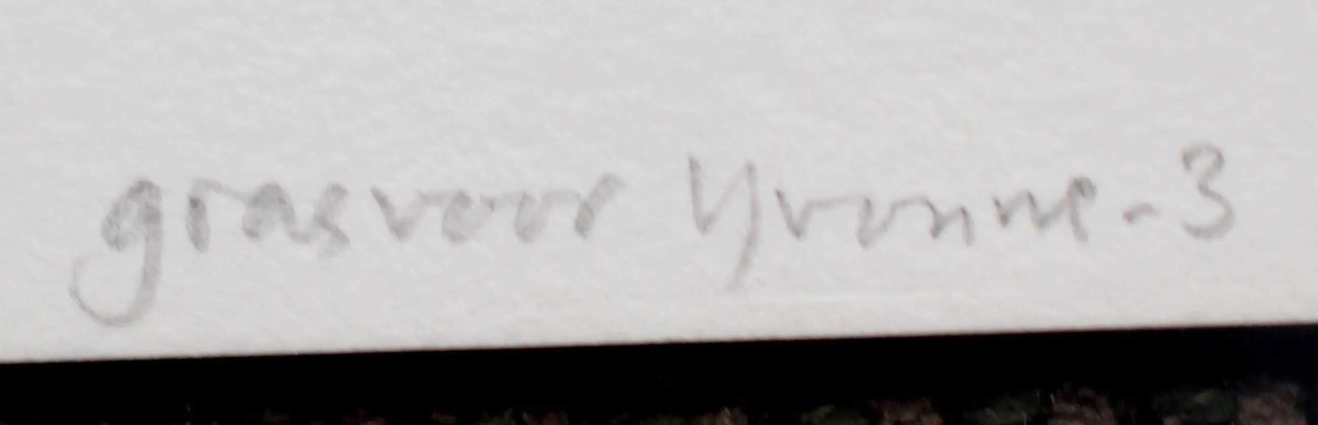 Zeefdruk van Henk Peeters. Titel: Gras voor Yvonne. Jaar: 2001. Oplage: AP, 3/6. Afmetingen blad: H42 x b30cm. Afmetingen voorstelling: H22 x b15cm. Het werk is rechts onder gesigneerd door de kunstenaar. De authenticiteit van dit werk wordt volledig gegarandeerd. Een certificaat van echtheid kan, op verzoek, worden gemaild.