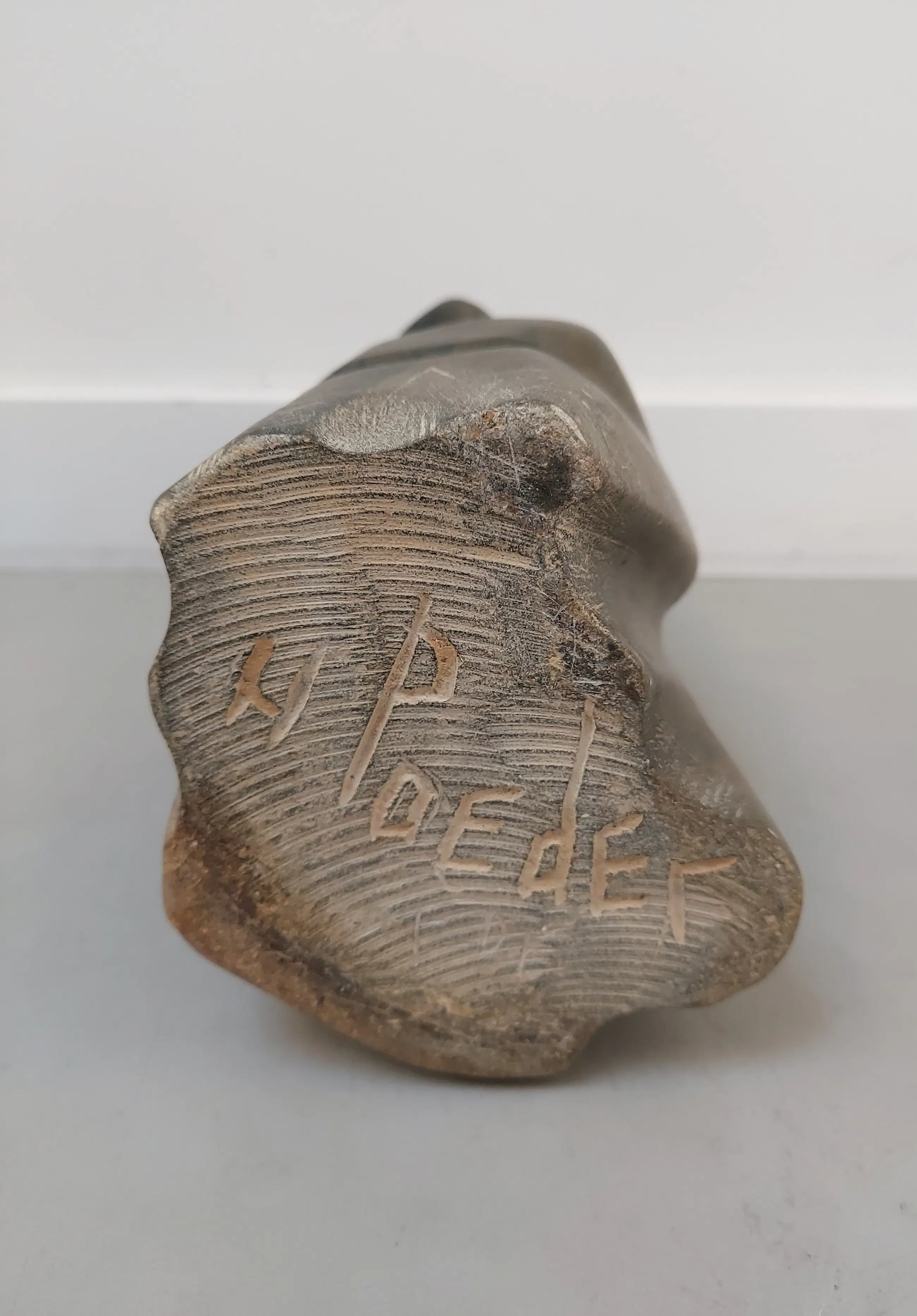 Vooi kunstwerk gemaakt van serpentijnsteen door kunstenaar Henk Poeder. Henk Poeder, vooral bekend door zijn mooie (natuur) schilderijen, heeft eind vorige eeuw zes beelden uit serpentijn gemaakt. Vandaar dat dit werk uniek te noemen is (bewijsmateriaal aanwezig) Afmetingen: 27x11x8cm (hxbxd). Gewicht: 4,2 kg. Kijk voor nog een beeld