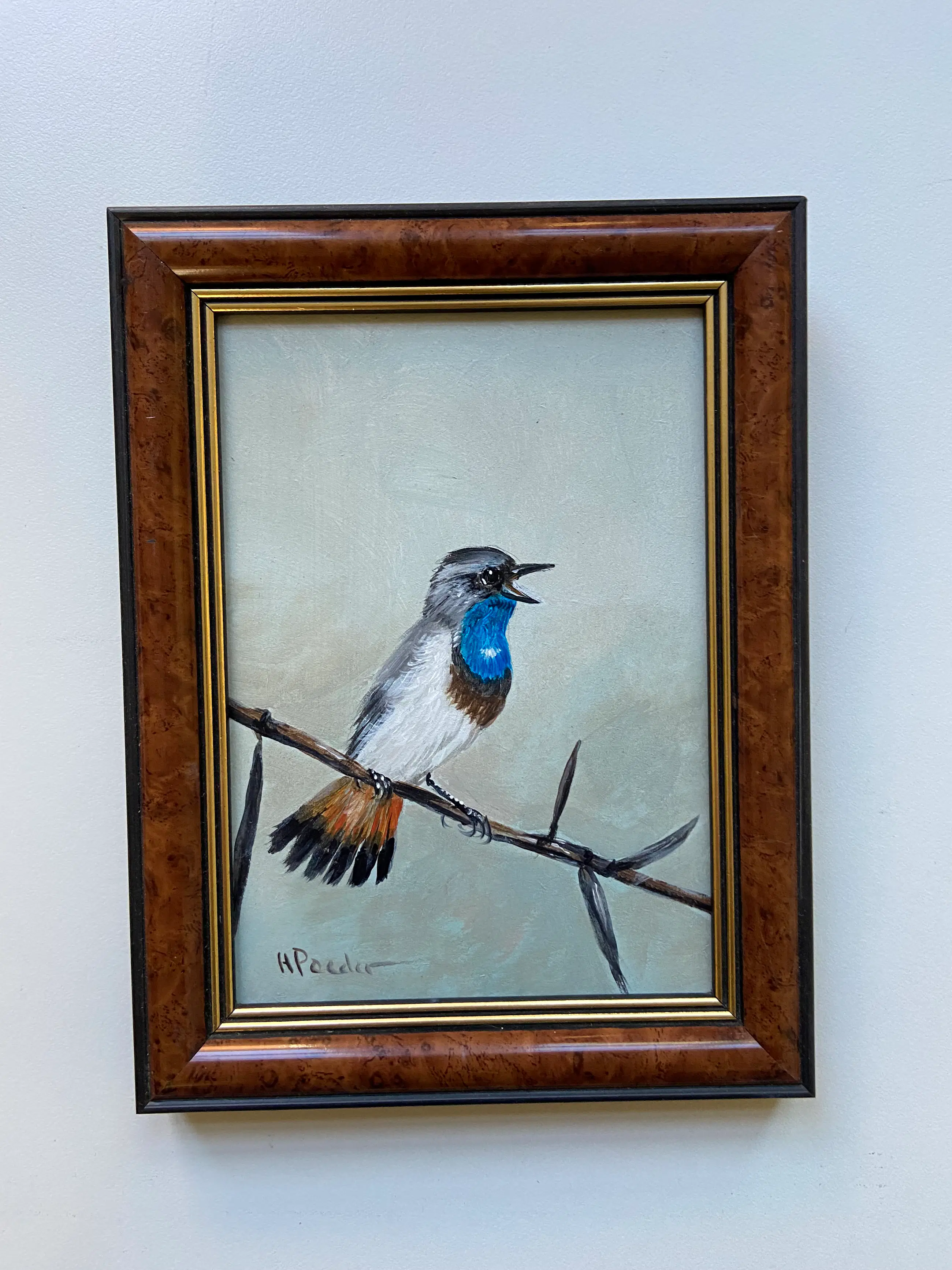 Prachtig werk van H Poeder betreft een blauwborstje in het riet het schilderij is links onder gesigneerd H Poeder dit schilderijtje kan zo aan de muur .