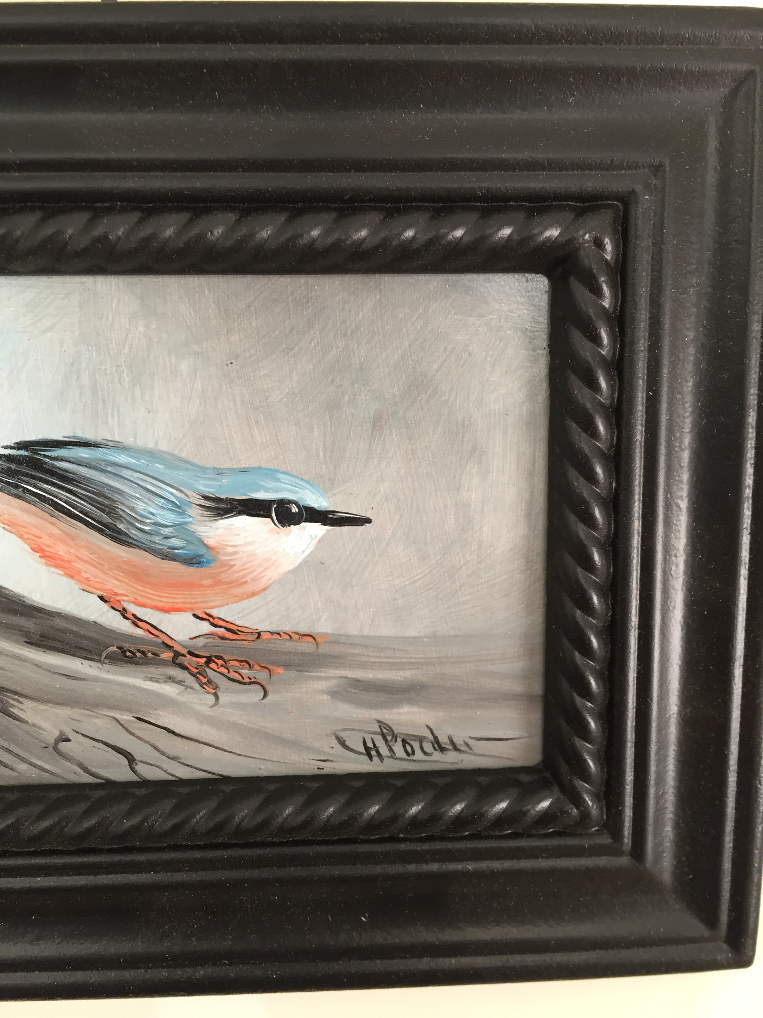 Leuk schilderij van een boomklever gesigneers ro h poeder mooie lijst .