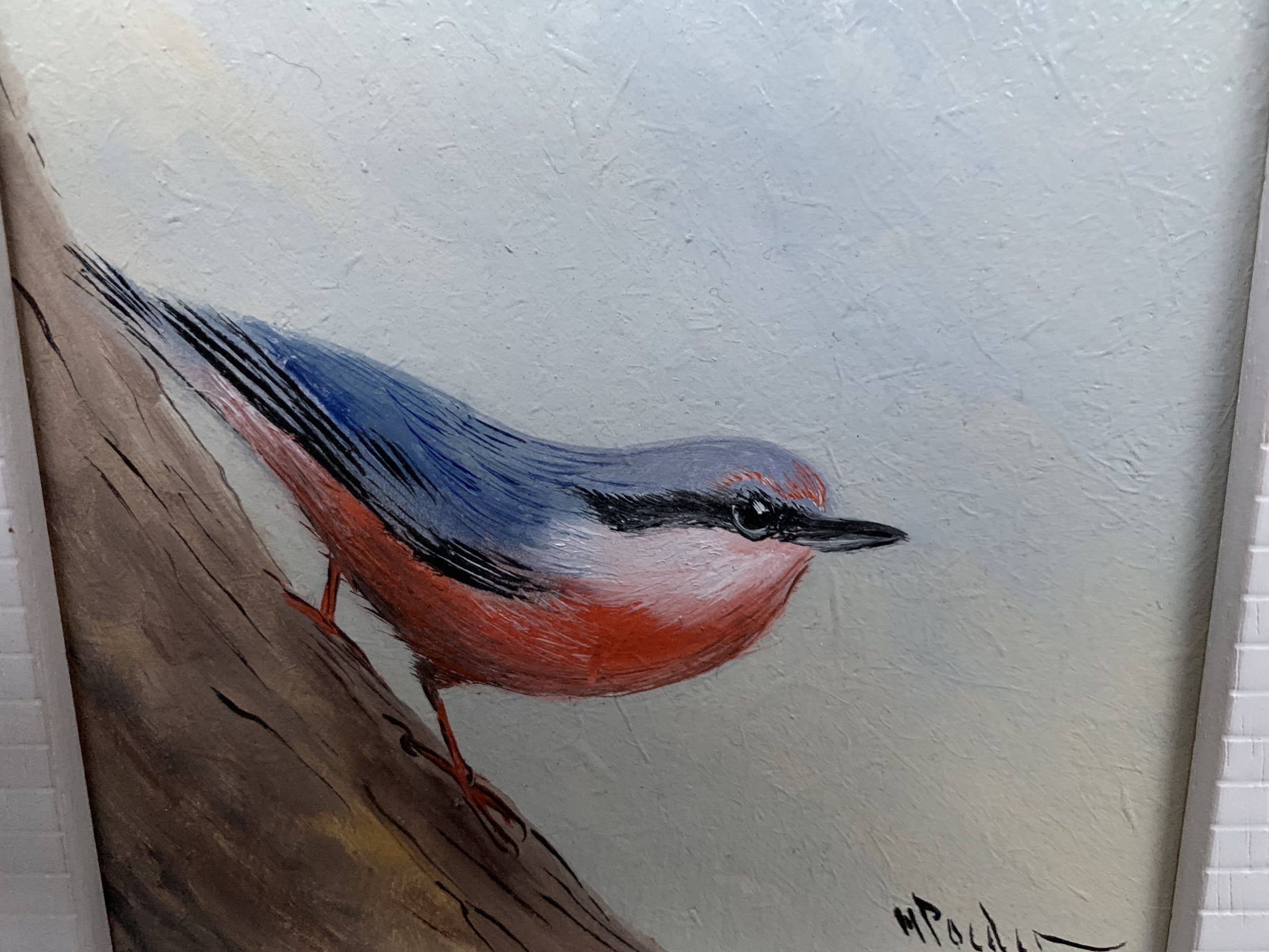 Leuk vogeltje de boomklever gemaakt door h poeder 1964 op painterboard board . Schilderij is rechts onder gesigneerd h poeder verder spreekt het schilderij voor zich .