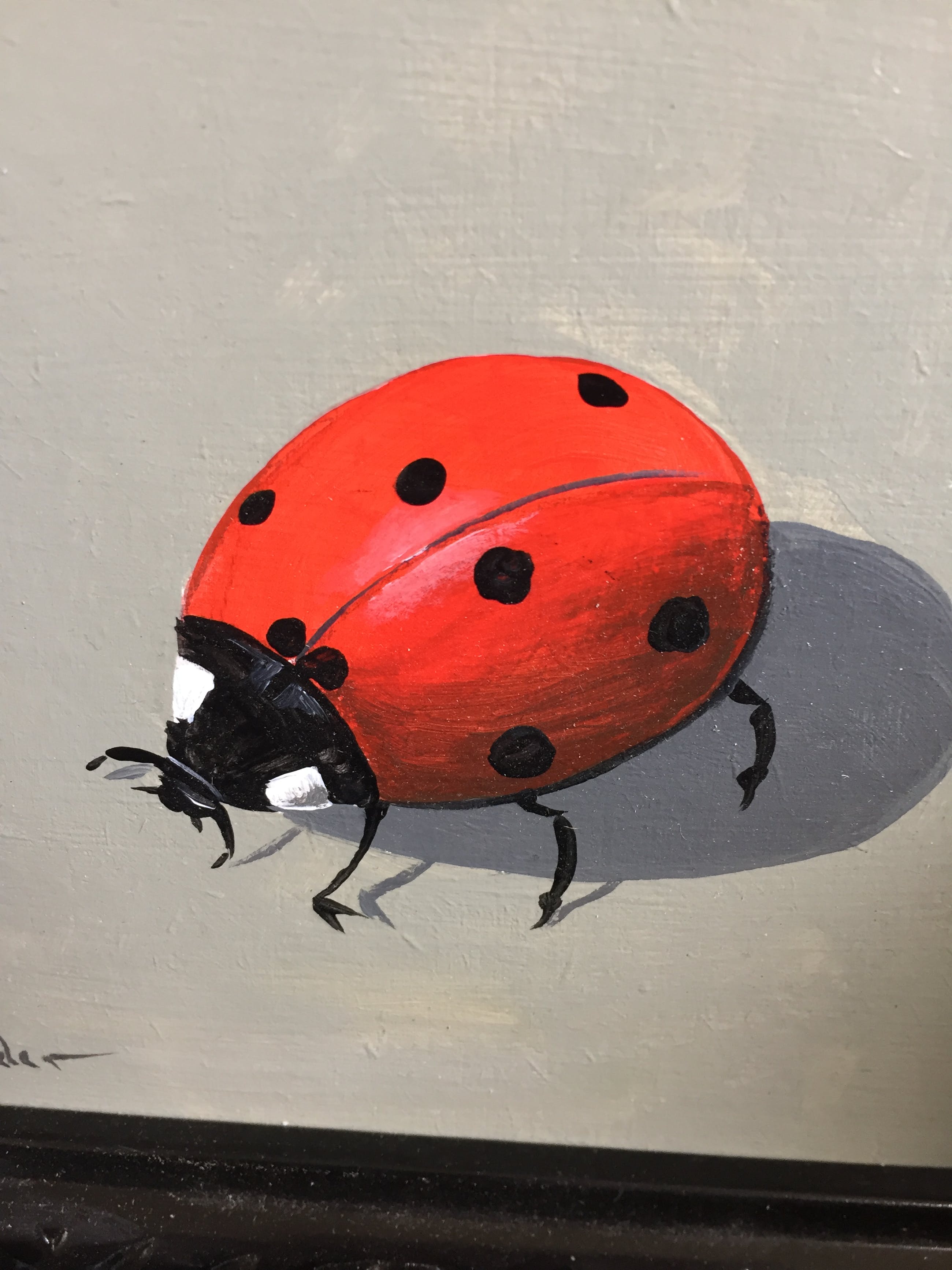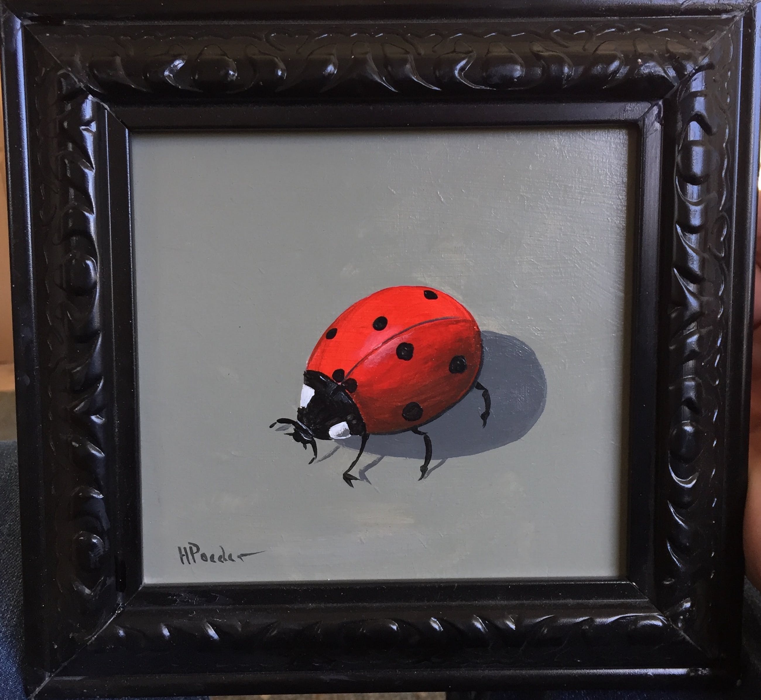 Leuk schilderij van een lieve heersbeestje door h poeder op paneel leuk ouder lijstje er omheen gesigneerd links onder