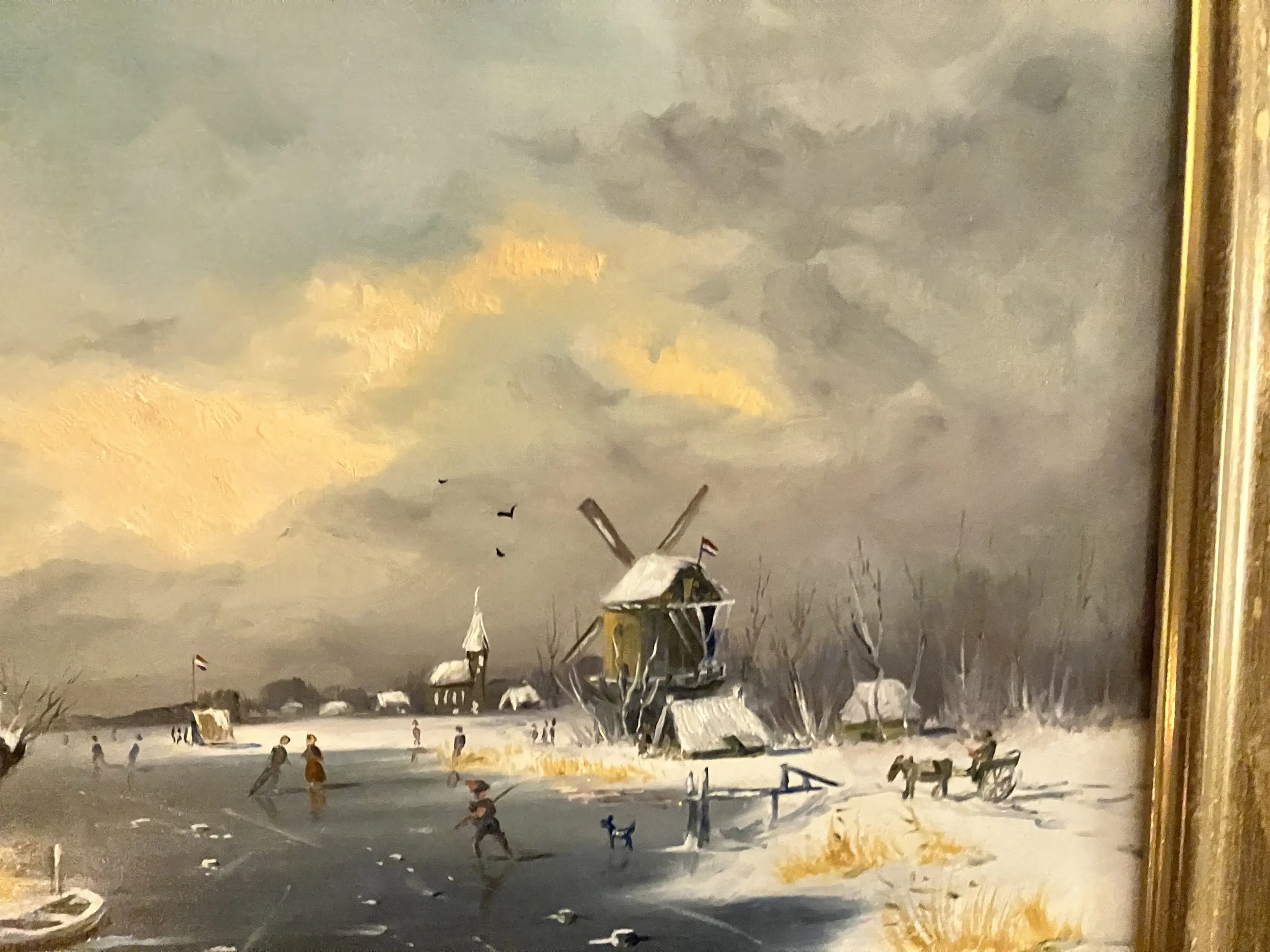 Romantisch mooi werk van Henk Poeder (1964) betreft zo als u ziet een winterlandschap met schaatsers , waar de mensen lekkere versnaperingen kunnen krijgen en een molen zoals en nog wel te zien is. Het schilderij is R.O. gesigneerd. Het schilderij zit in een nette lijst en kan gelijk aan de muur.