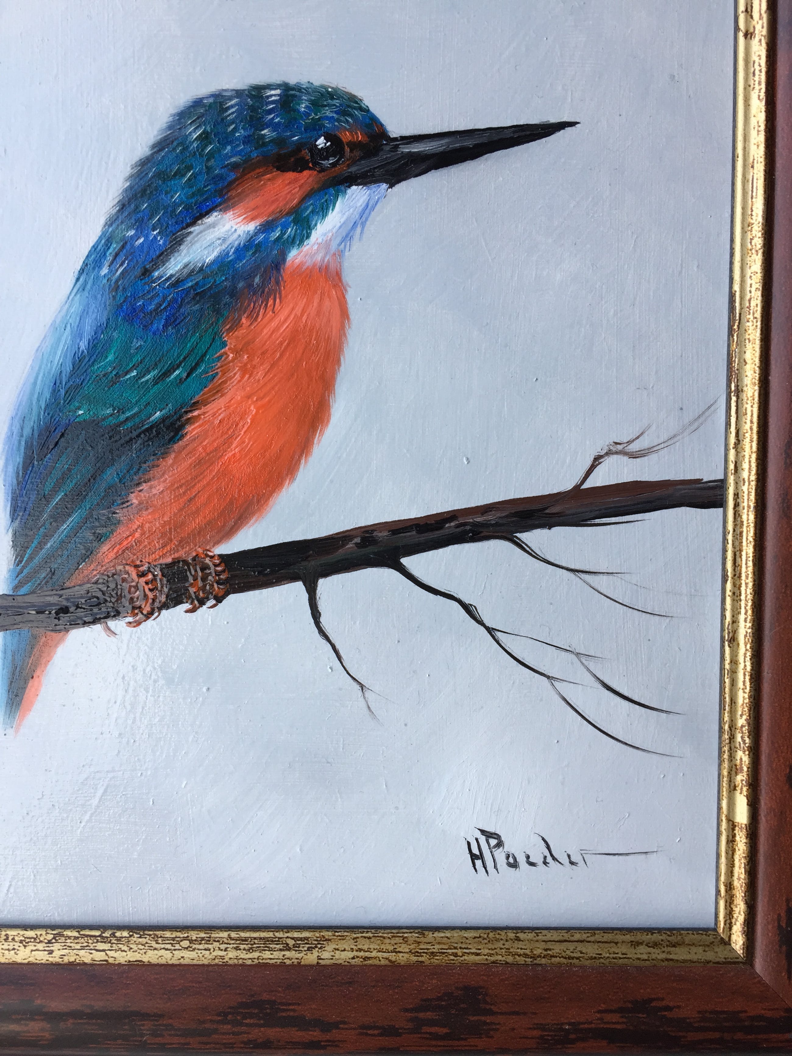 Mooi olieverf op paneel betreft een ijsvogeltje gesigneerd ro h poeder