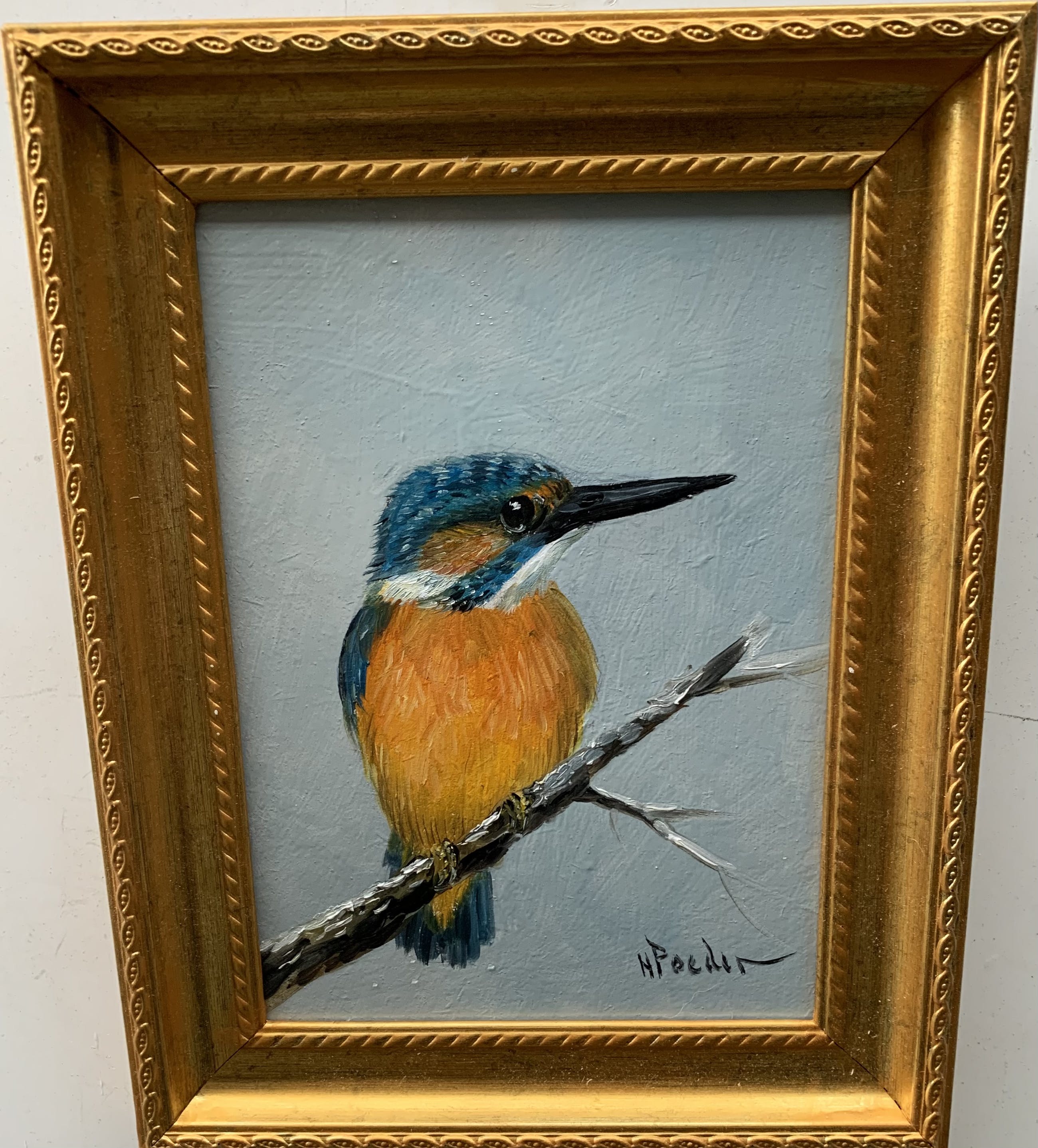 Prachtig olieverf op paneel betreft een Ijsvogel op een besneeuwde tak rechts onder gesigneerd h poeder ( zie ook voor informatie het rkd in Denhaag ) (rijks kunst en documentatie in Denhaag)