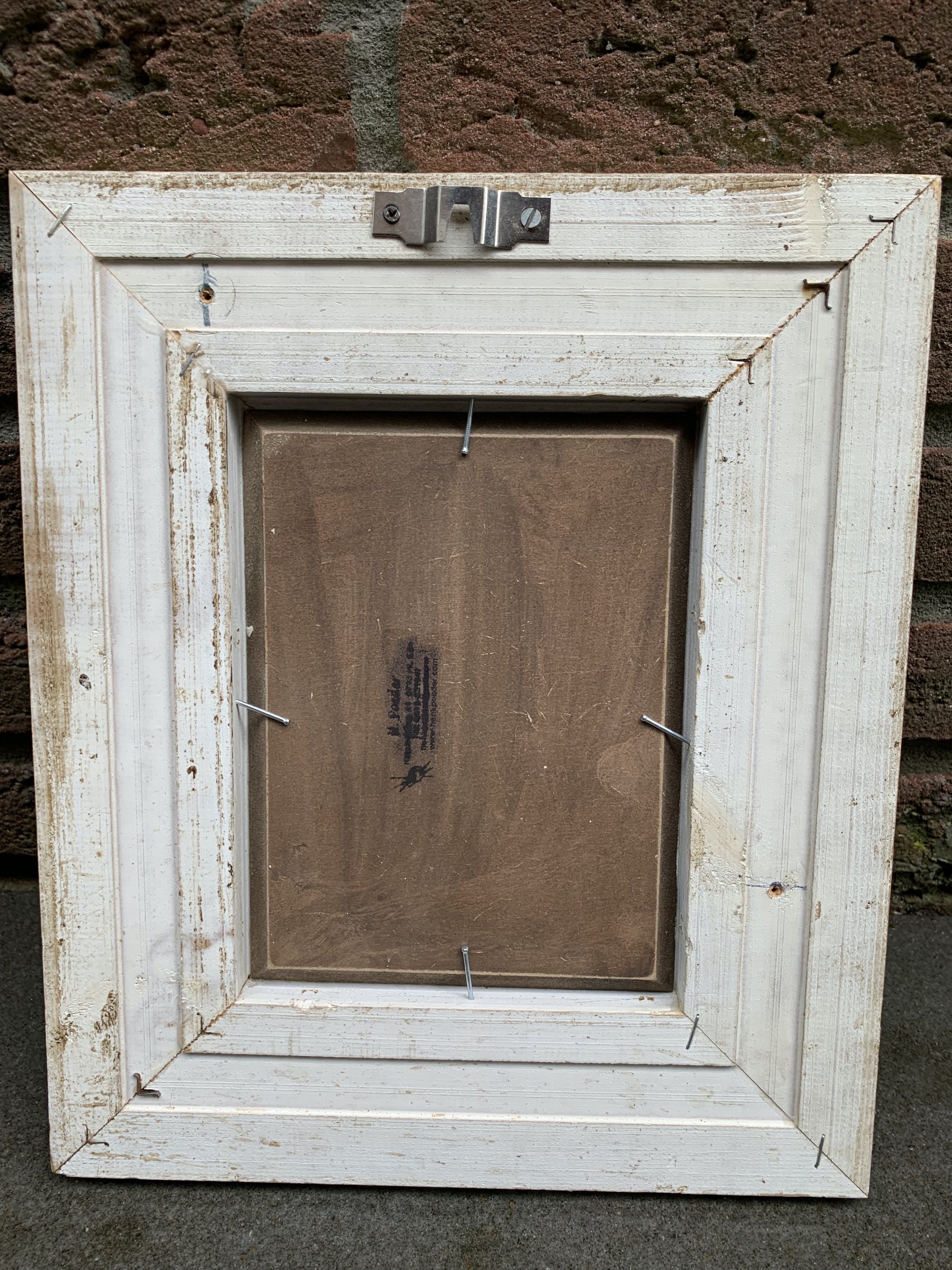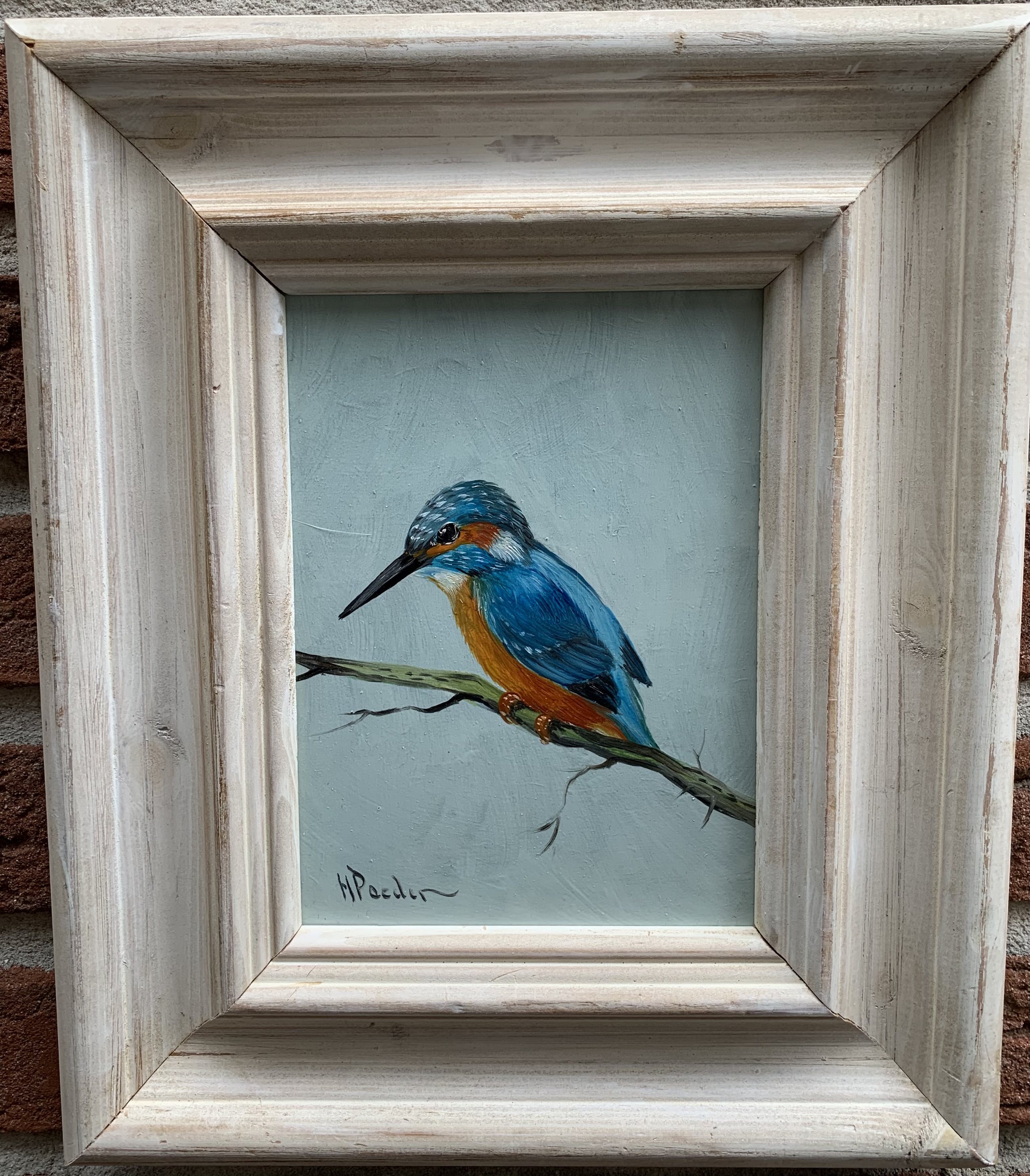 Olieverf op paneel Ijsvogeltje op een tak gesigneerd h poeder links onder mooie houten lijst verder spreekt het schilderij voor zich .