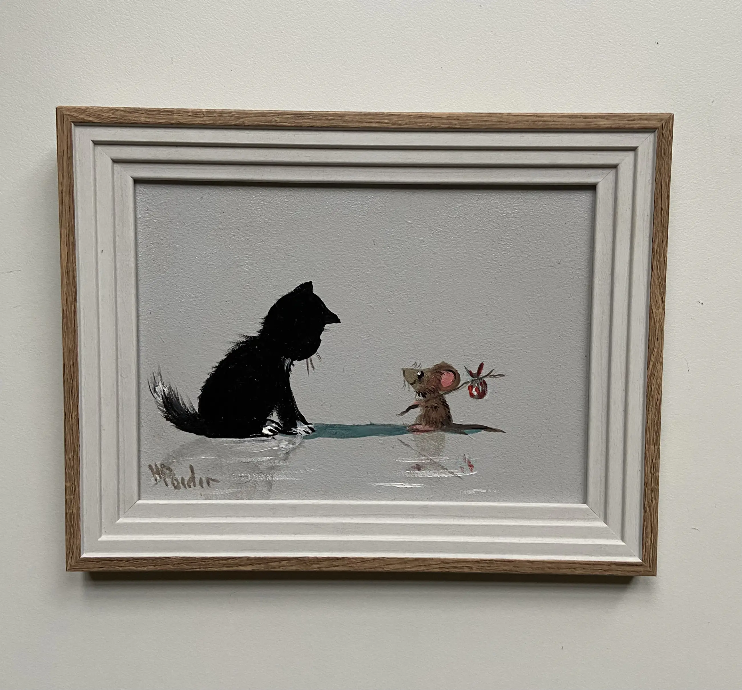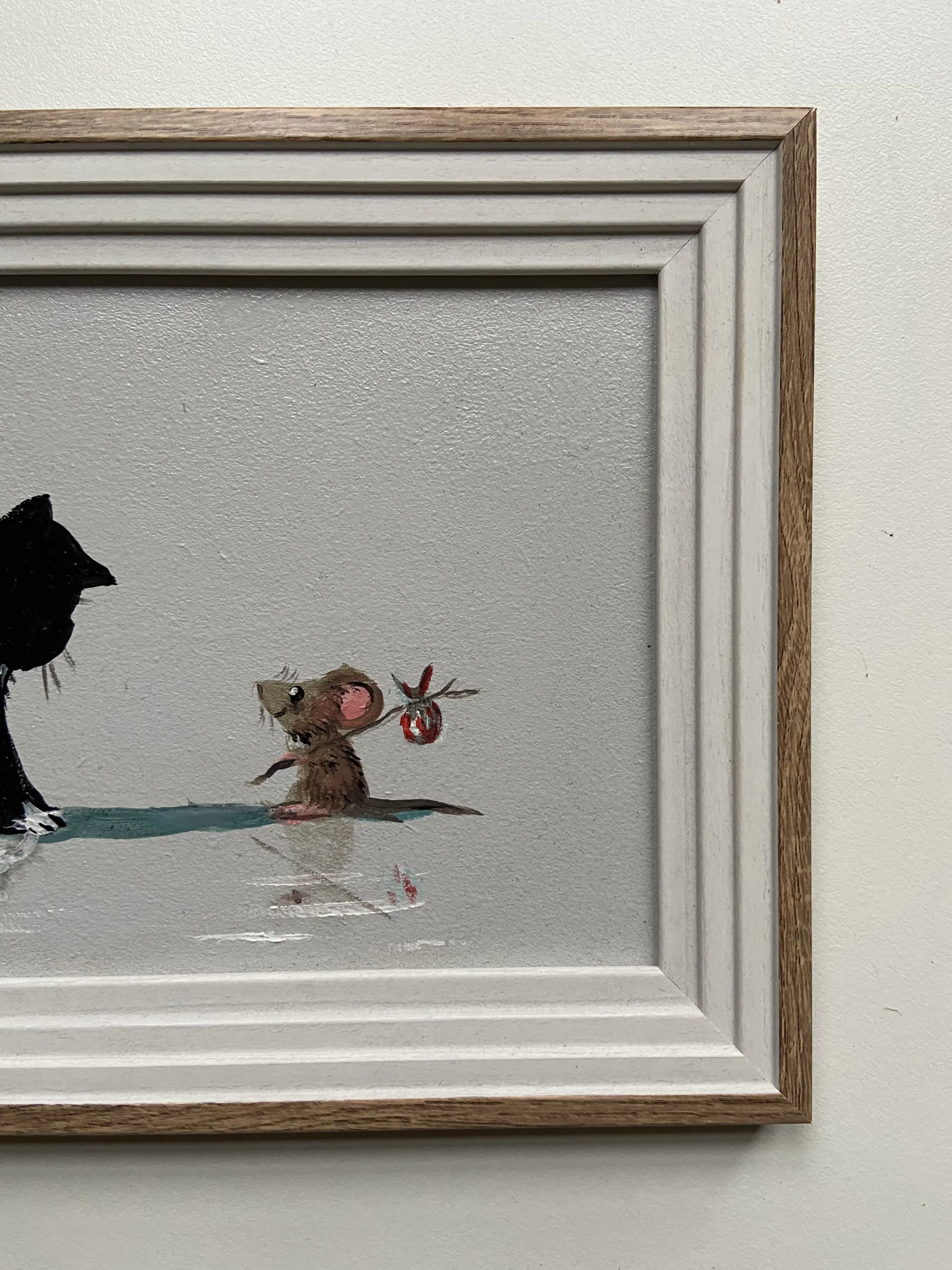 Leuk werkje van H poeder een kitten die een muisje ontmoet schilderij is links onder gesigneerd H Poeder