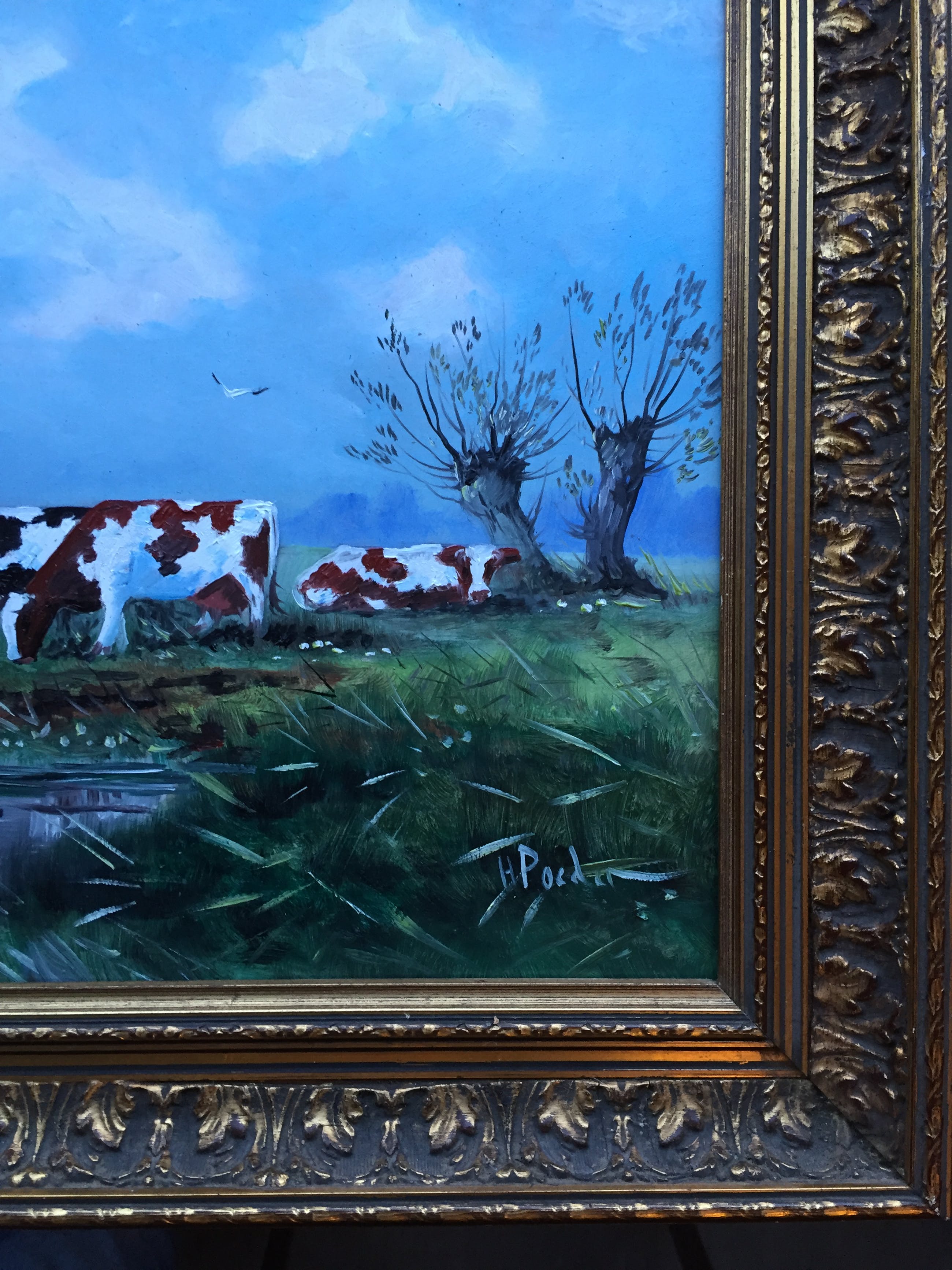 Prachtig olieverf van koeien in de Hollandse polder to gesigneerd h poeder verder spreekt het schilderij voor zich