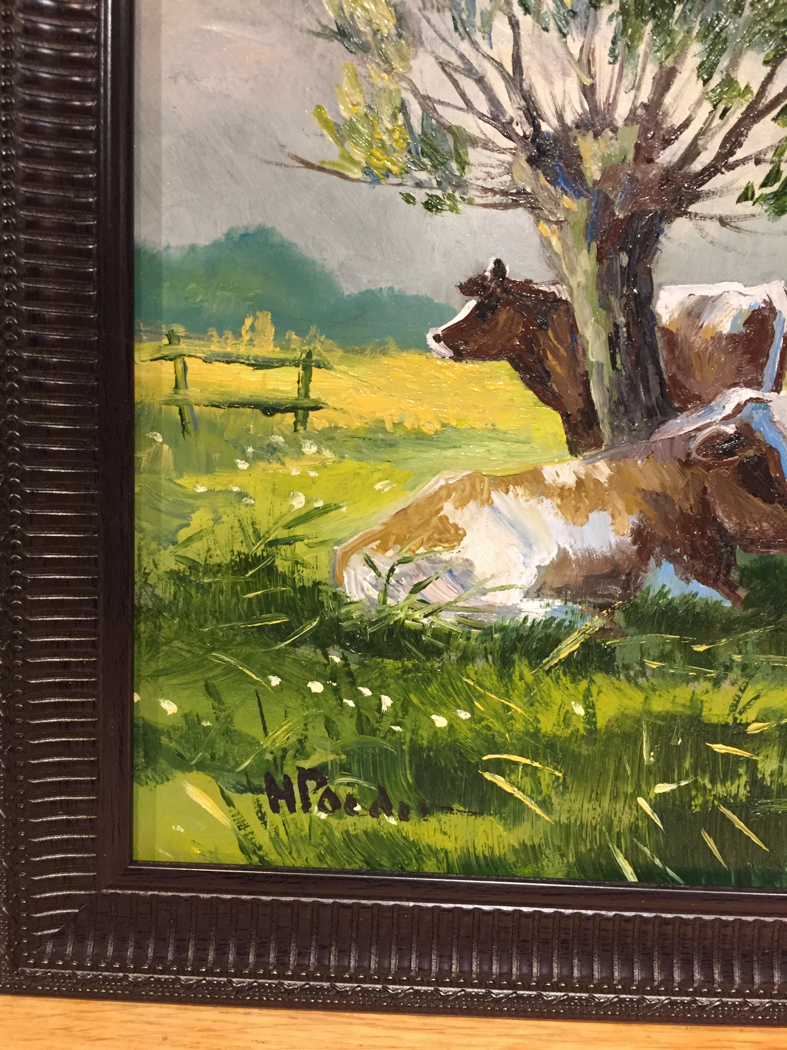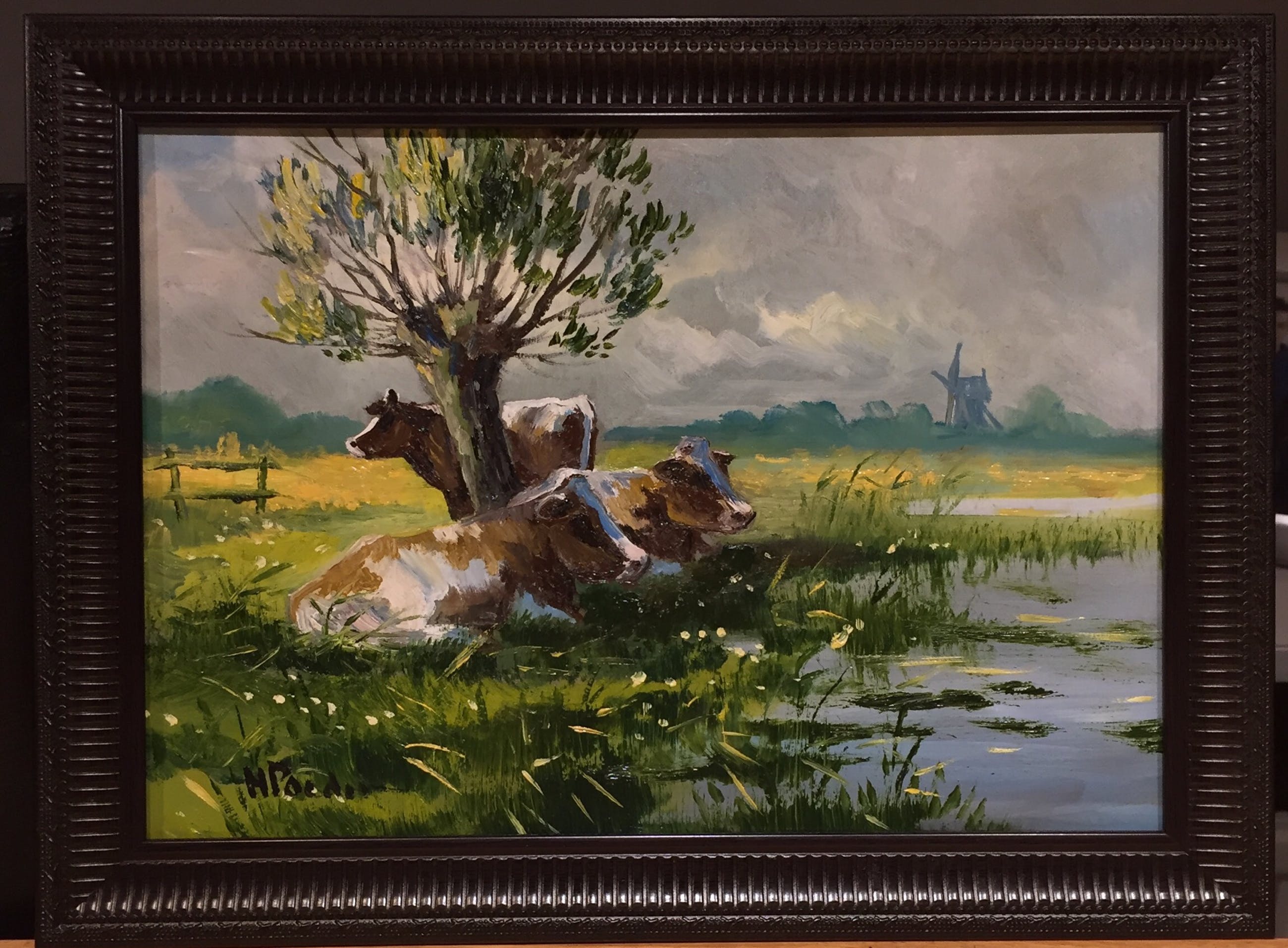 Mooi koeien schilderij in de polder gesigneerd h poeder gemaakt op paneel ,