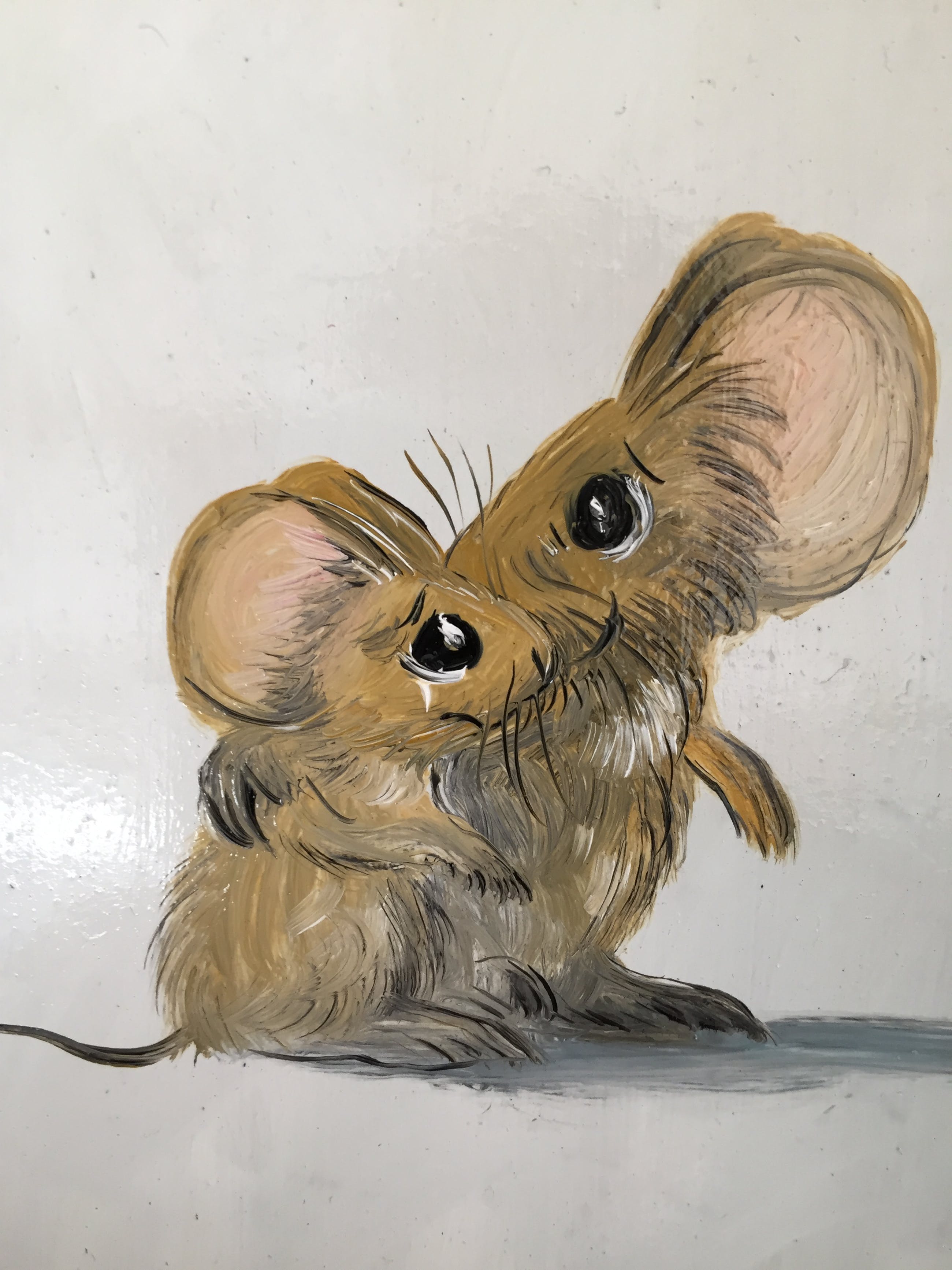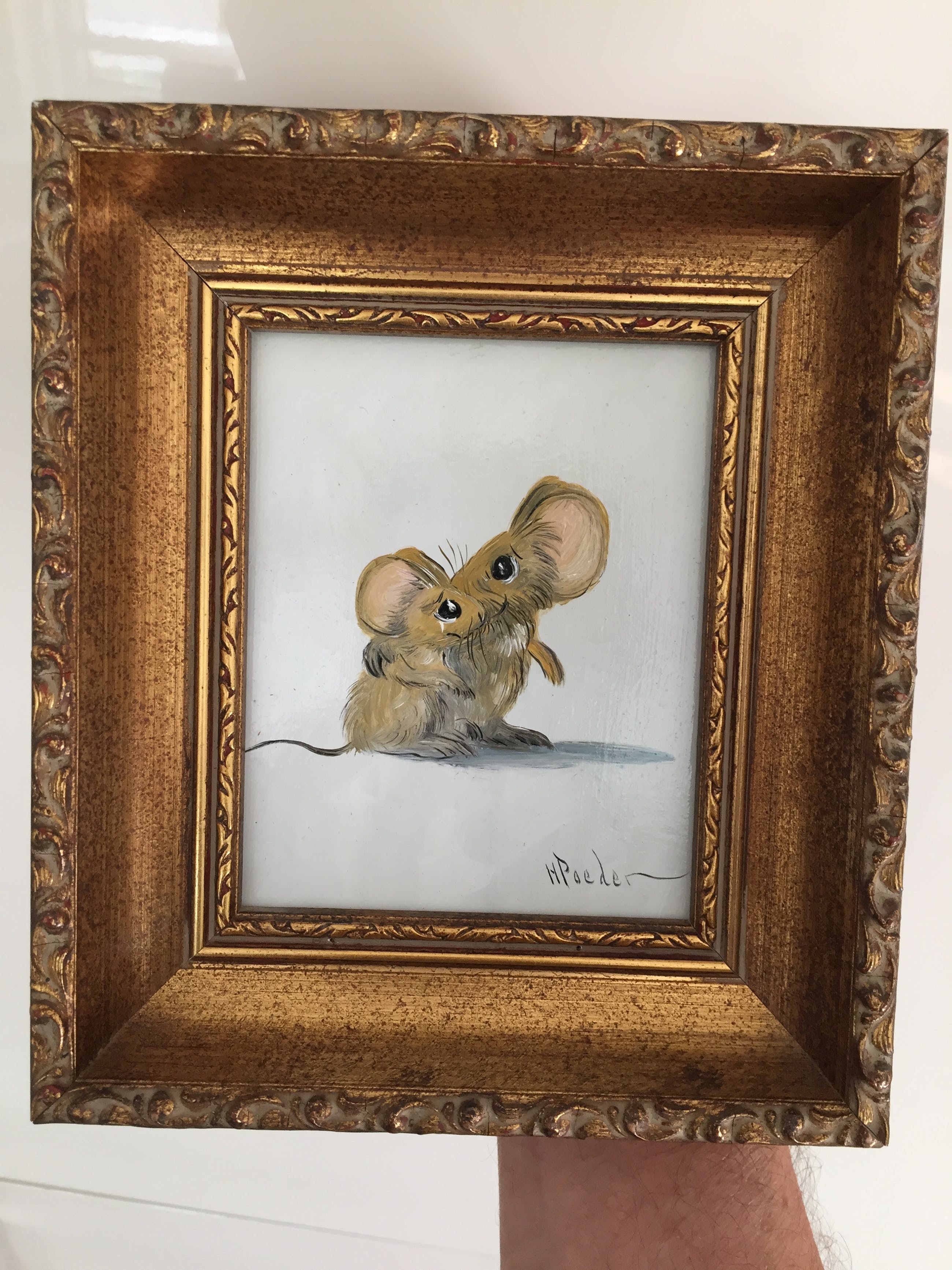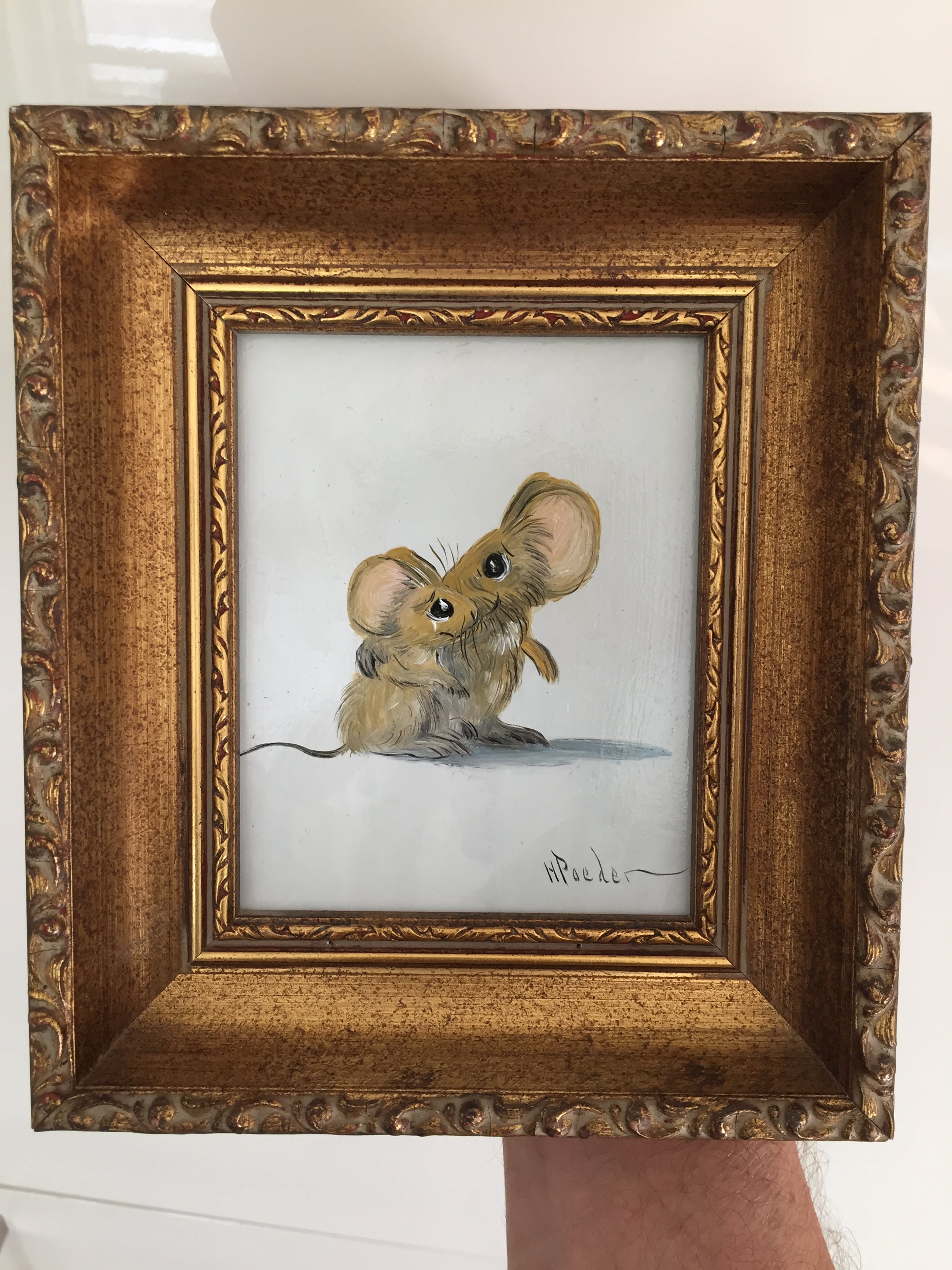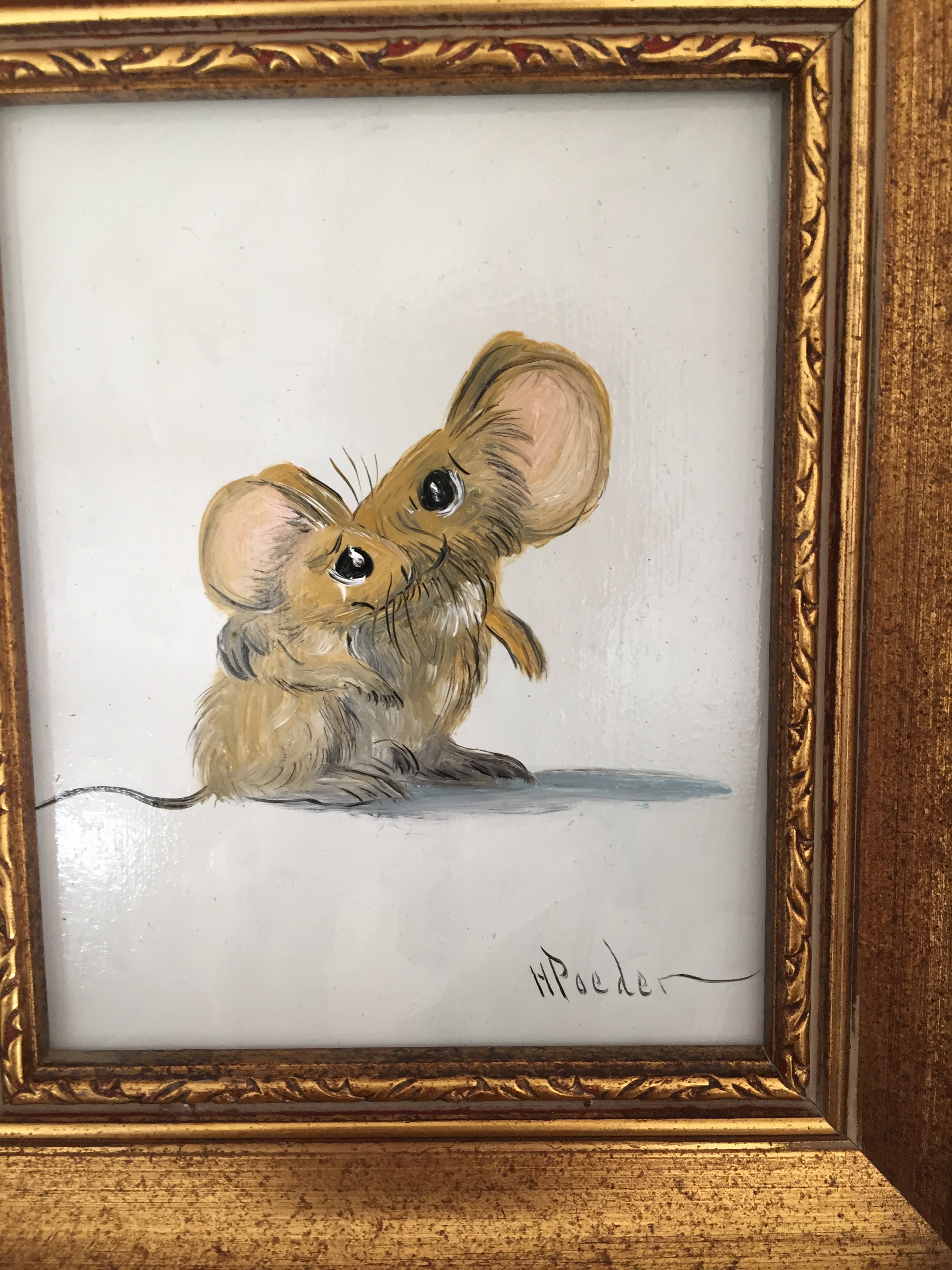 Mooi schilderijtje van een muisje dat getroost is door de grote broer gesigneerd h poeder ro