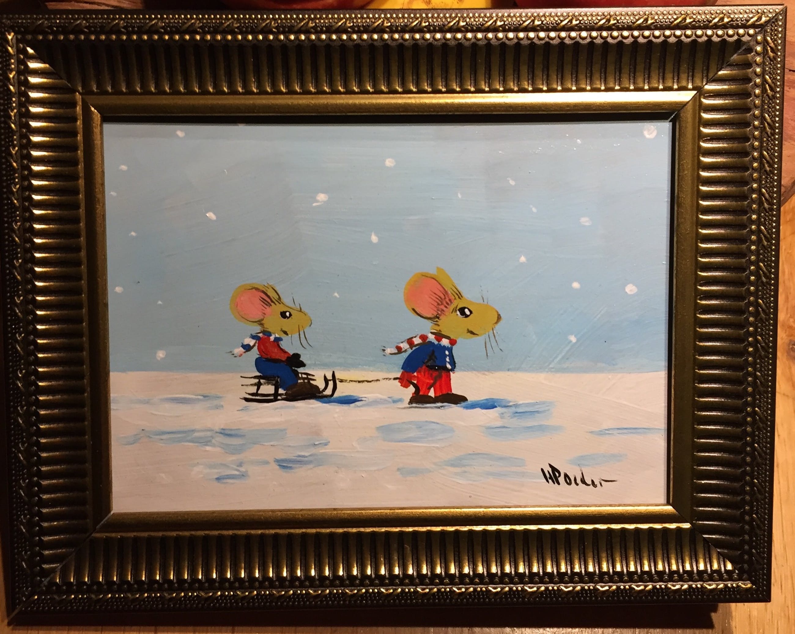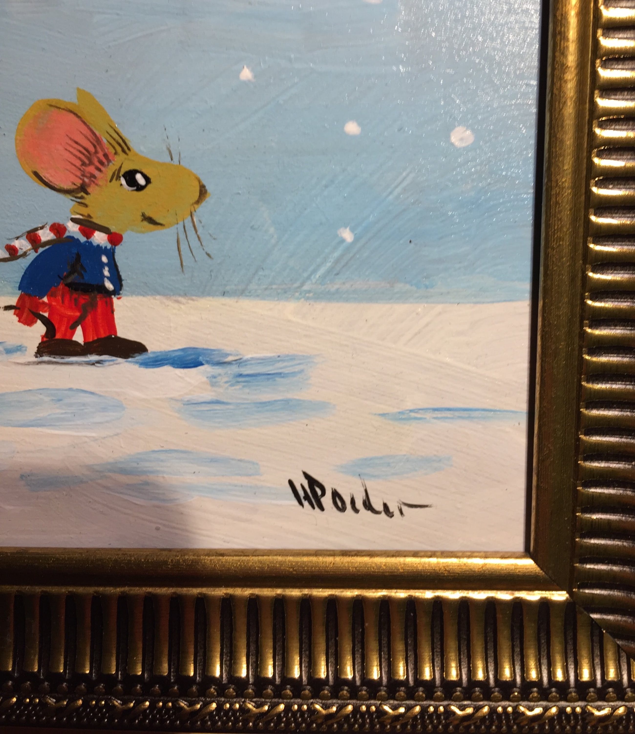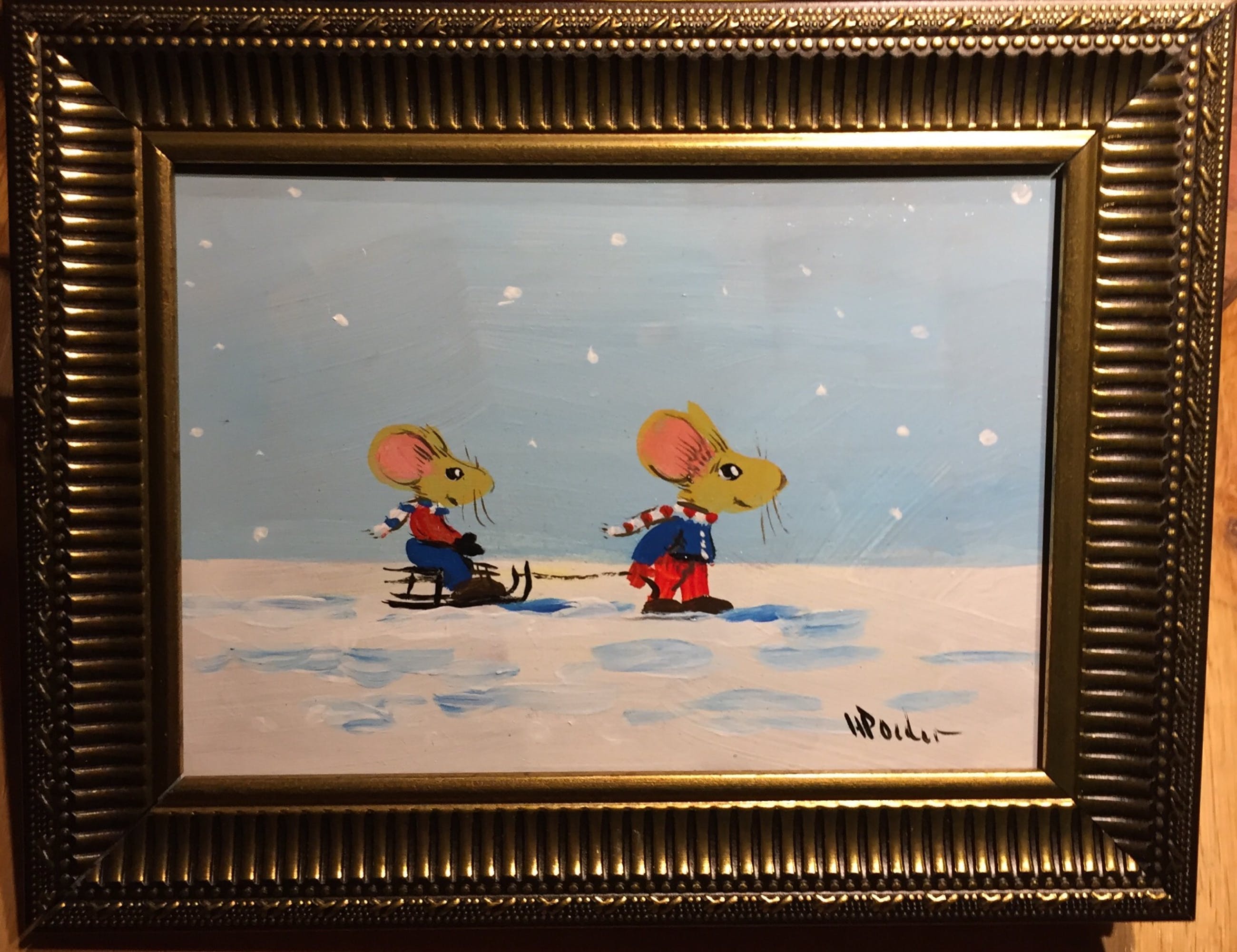 Leuk olieverfje van H Poeder muisjes in de sneeuw gesigneerd h poeder rechts onder .