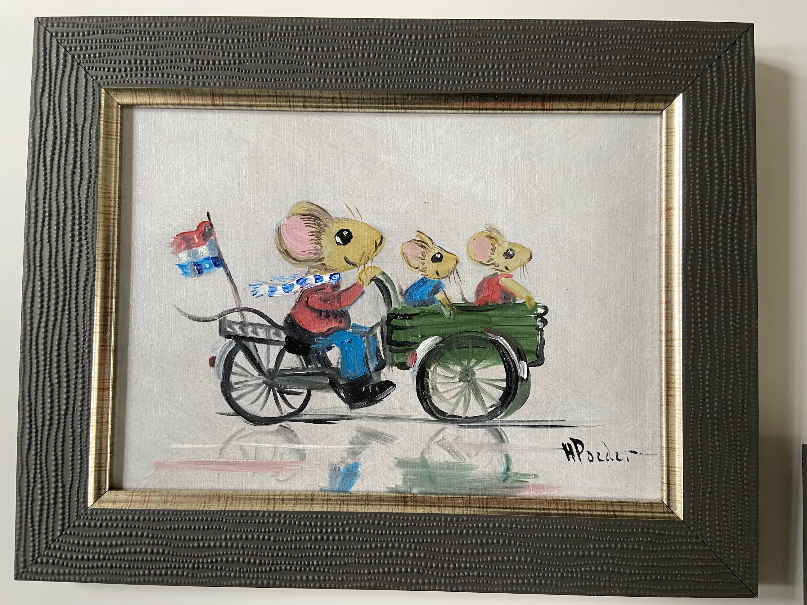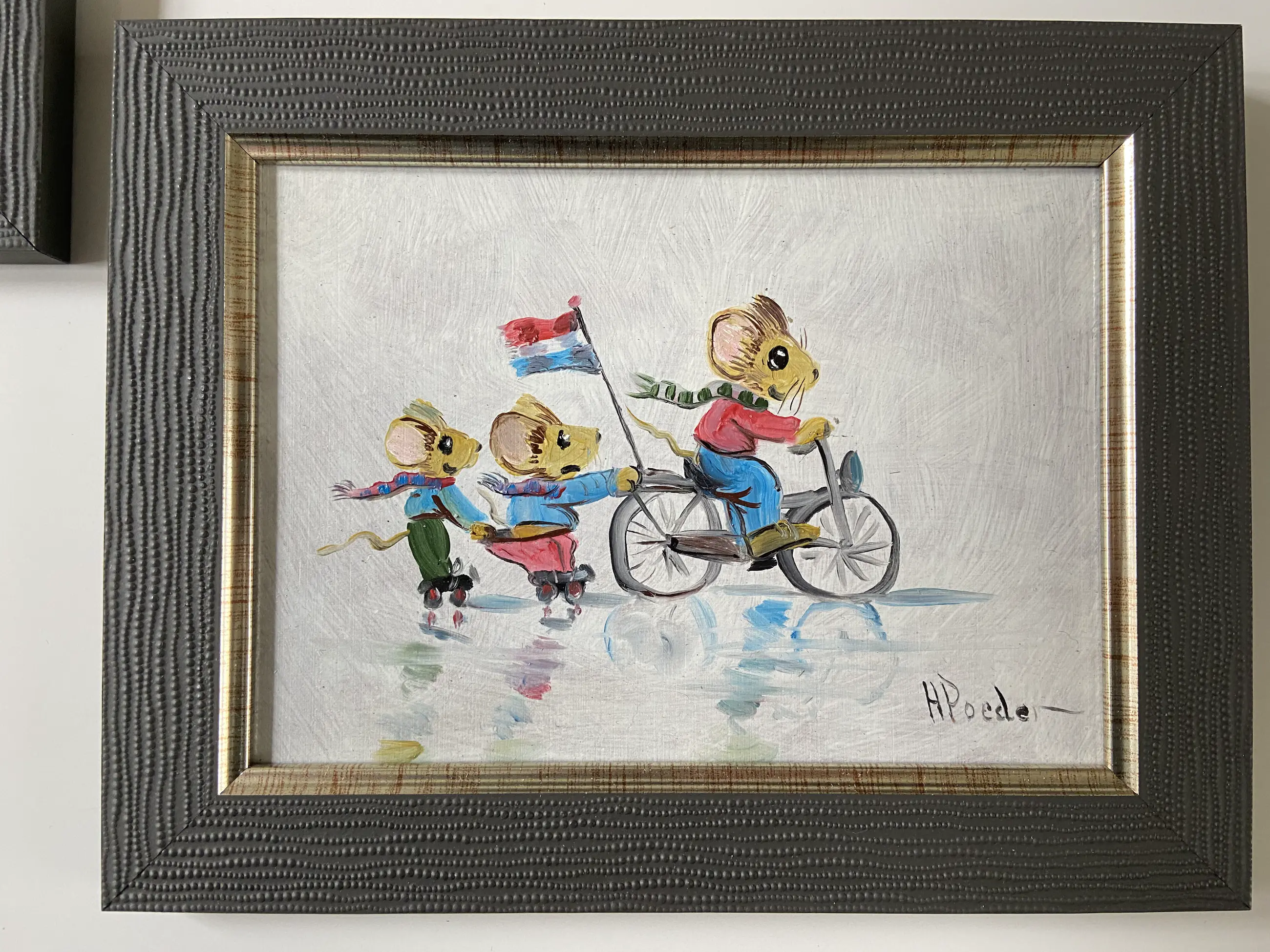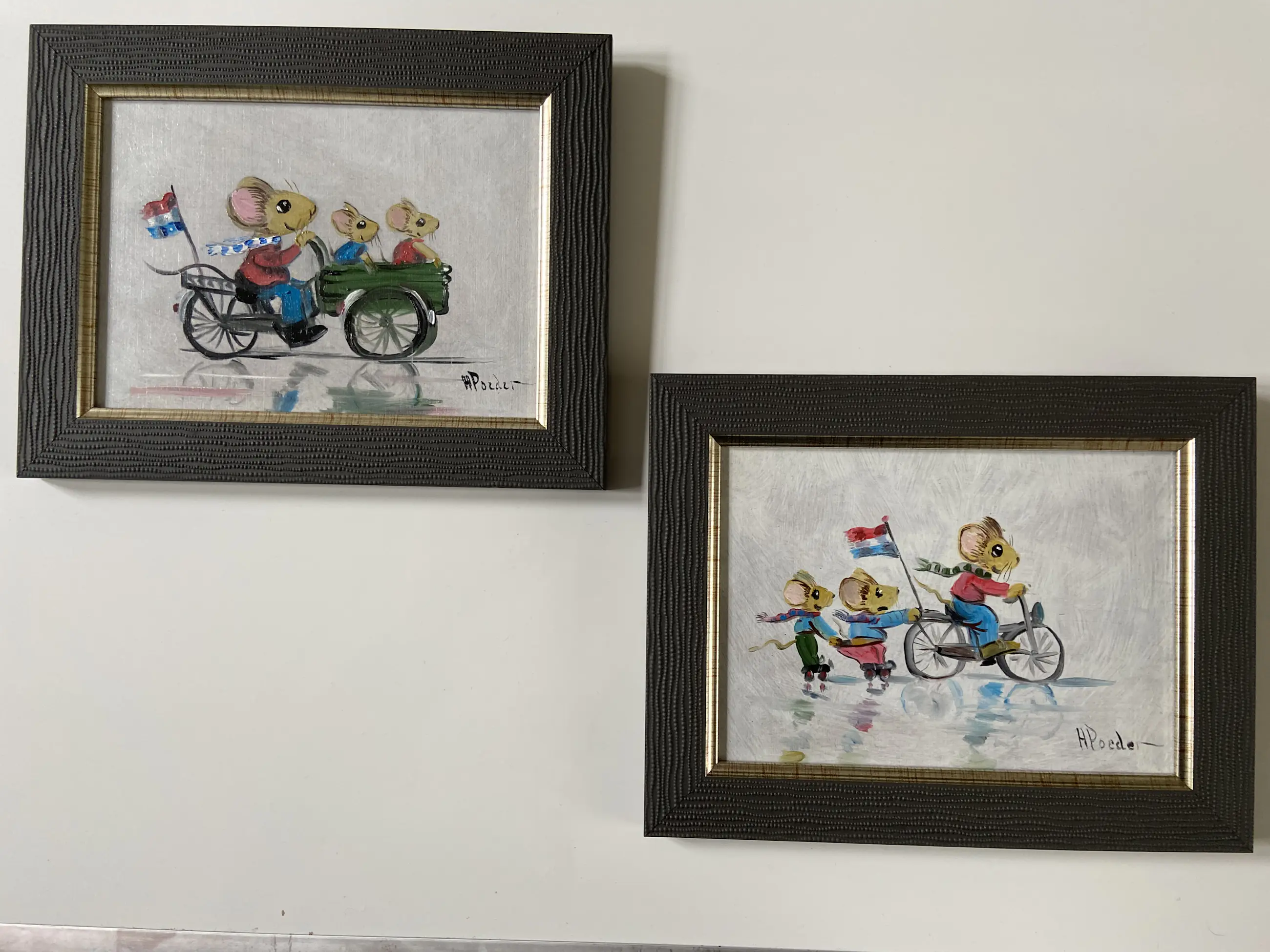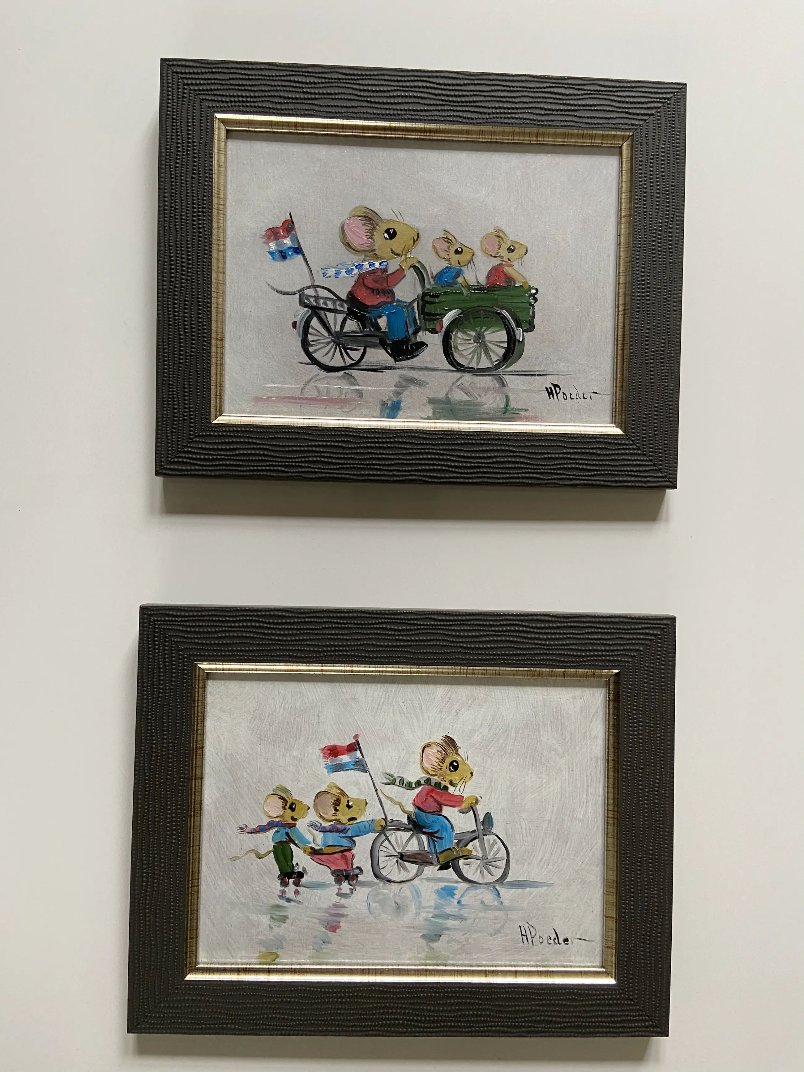 Erg leuk pendant (twee bij elkaar passende werken) gemaakt door Henk poeder 1964 ook info op te doen van de schilder bij het rkd in Denhaag schilderijtjes zijn rechts onder gesigneerd h poeder