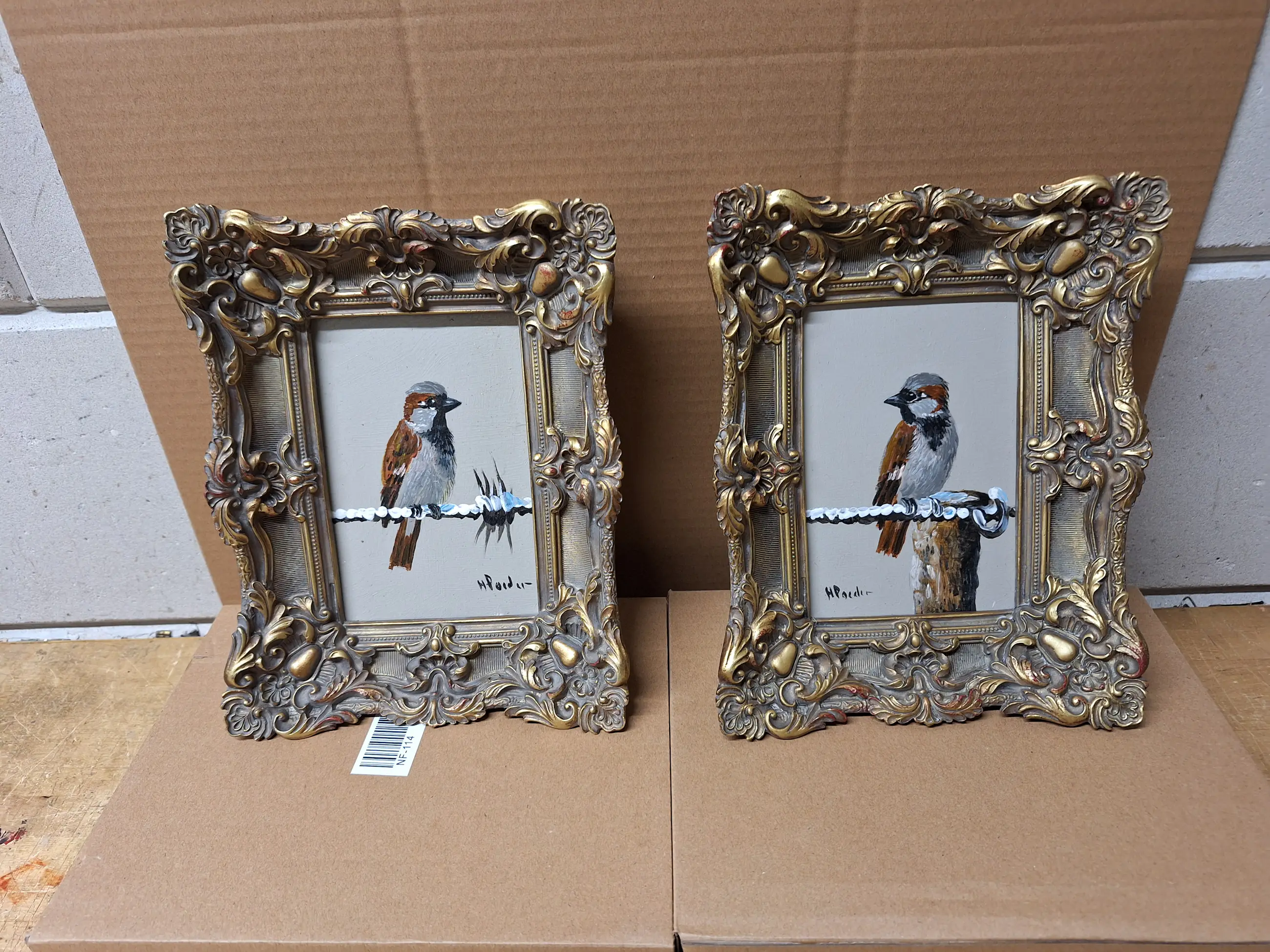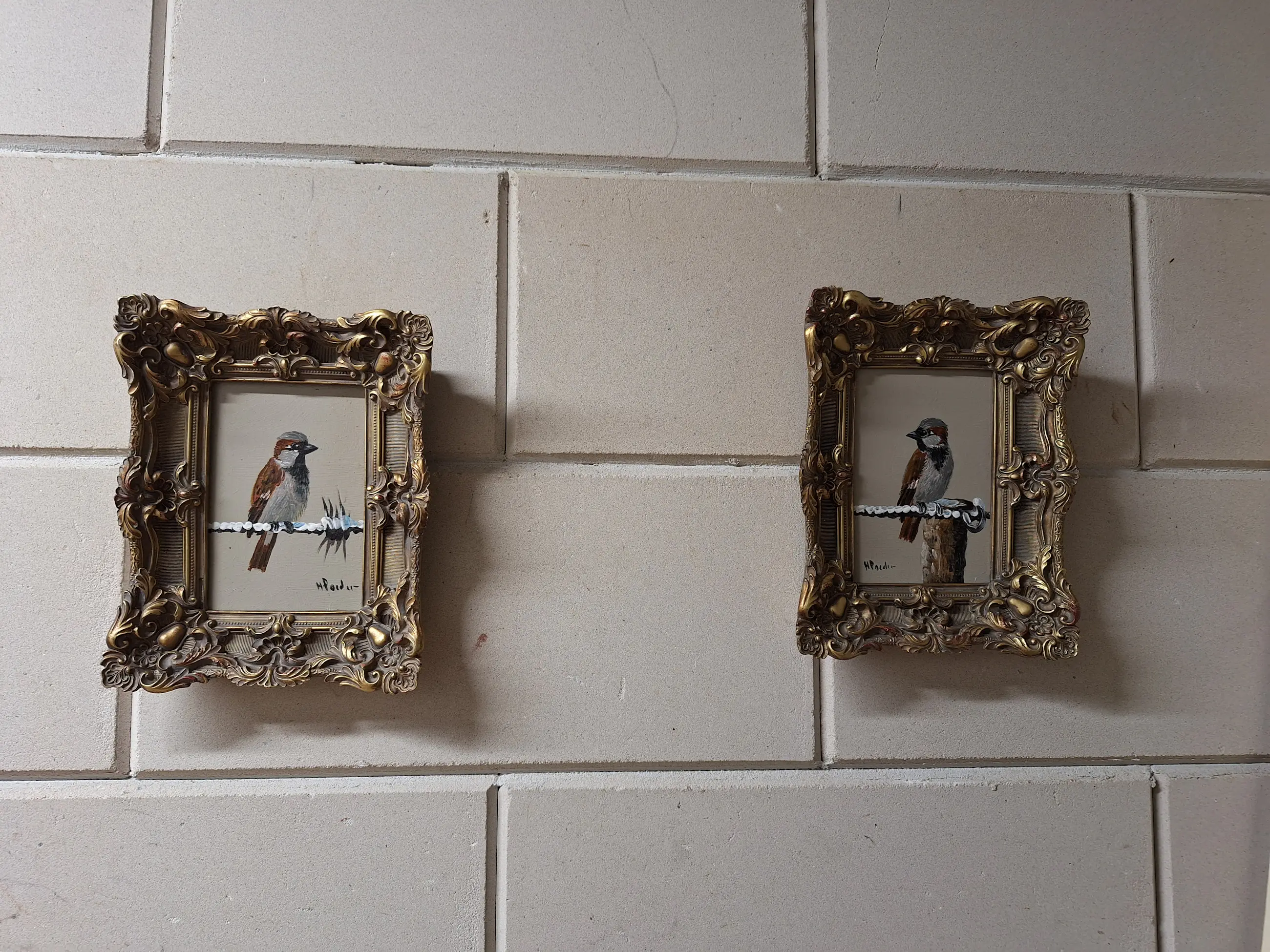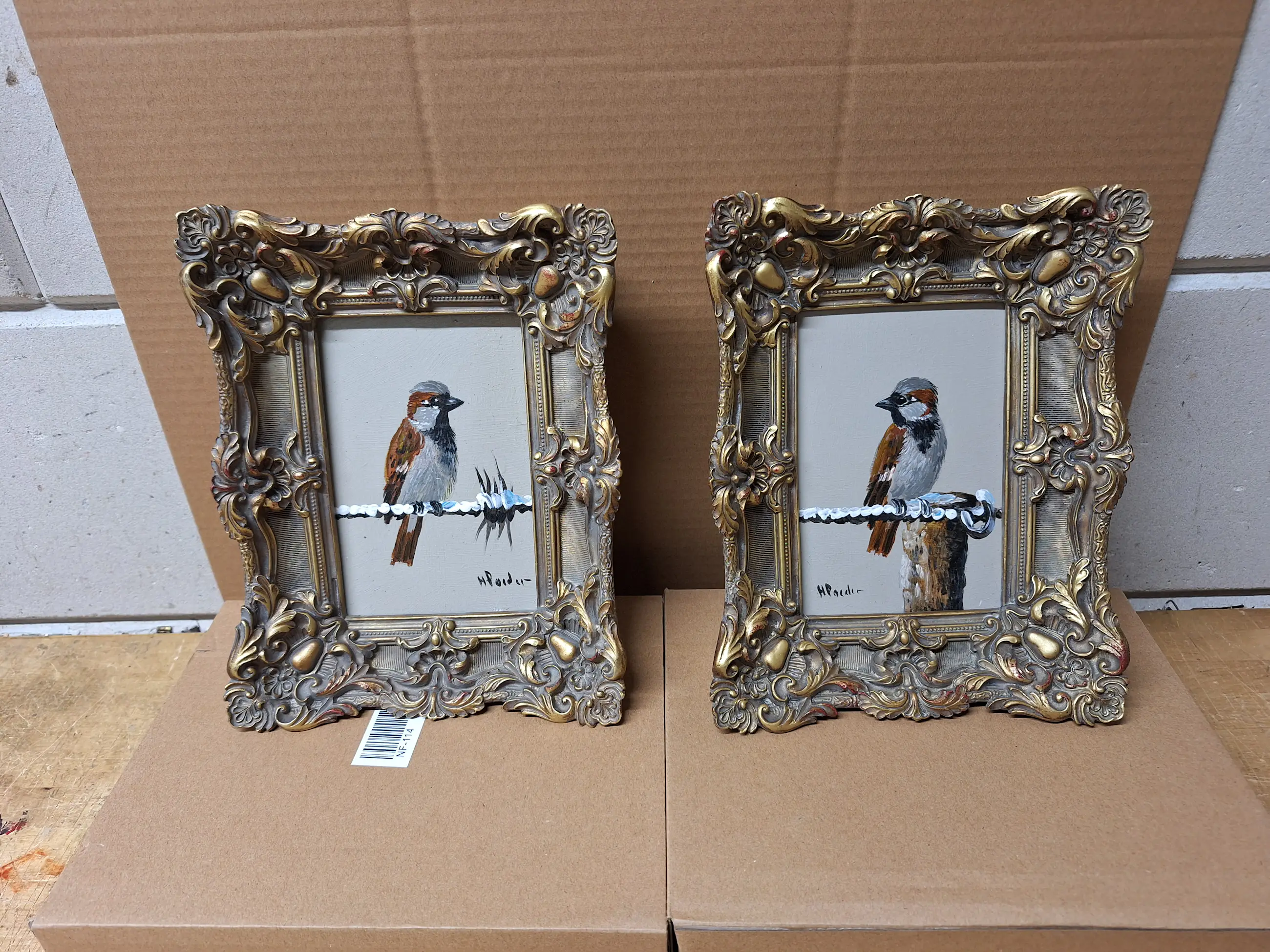 Twee erg mooie schilderijen als pendant met een Musje Maat met erg mooie lijst is 28 bij 23 Zowel schilderijen en lijsten verkeren in erg mooie en gave staat Gesigneerd H Poeder