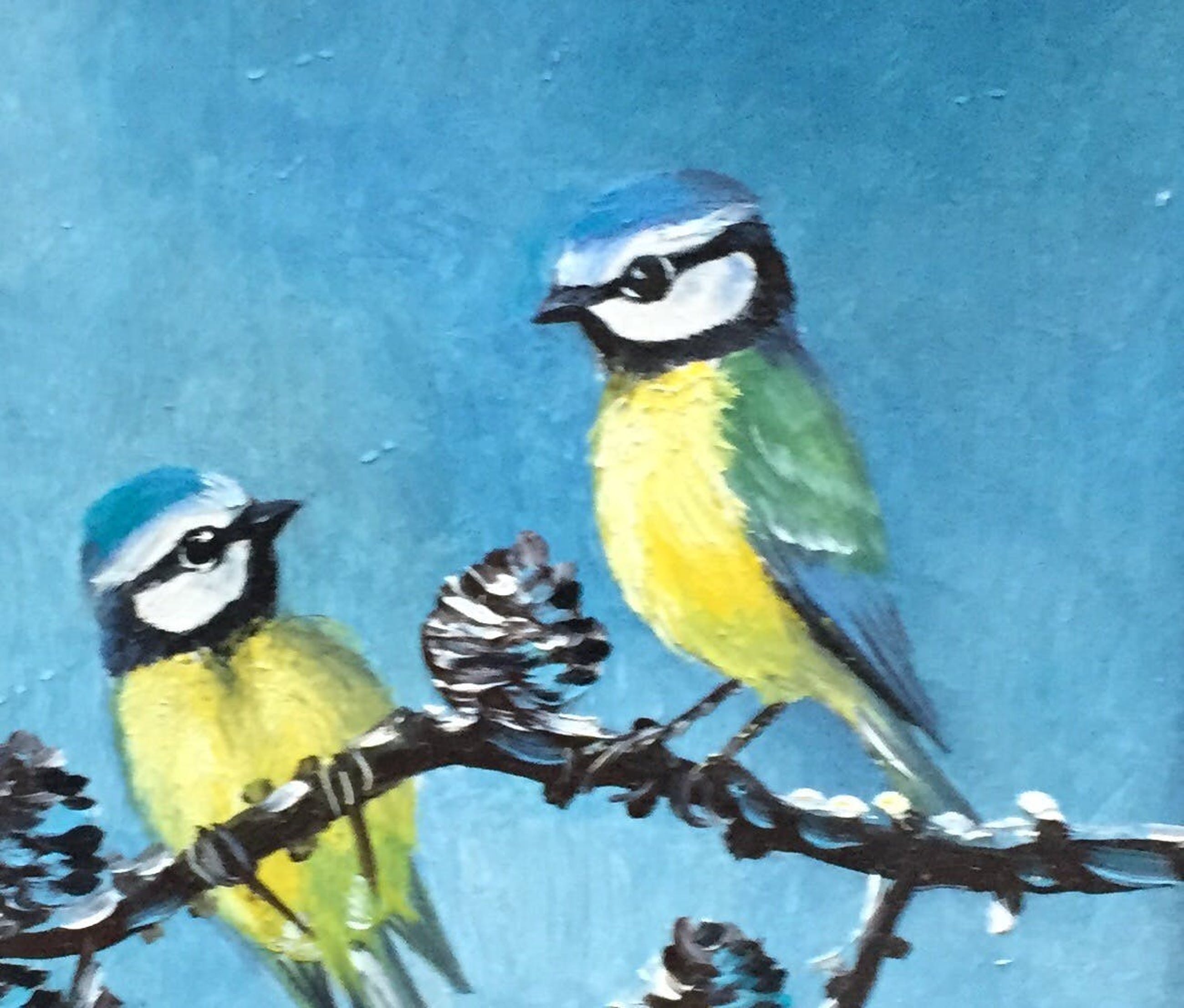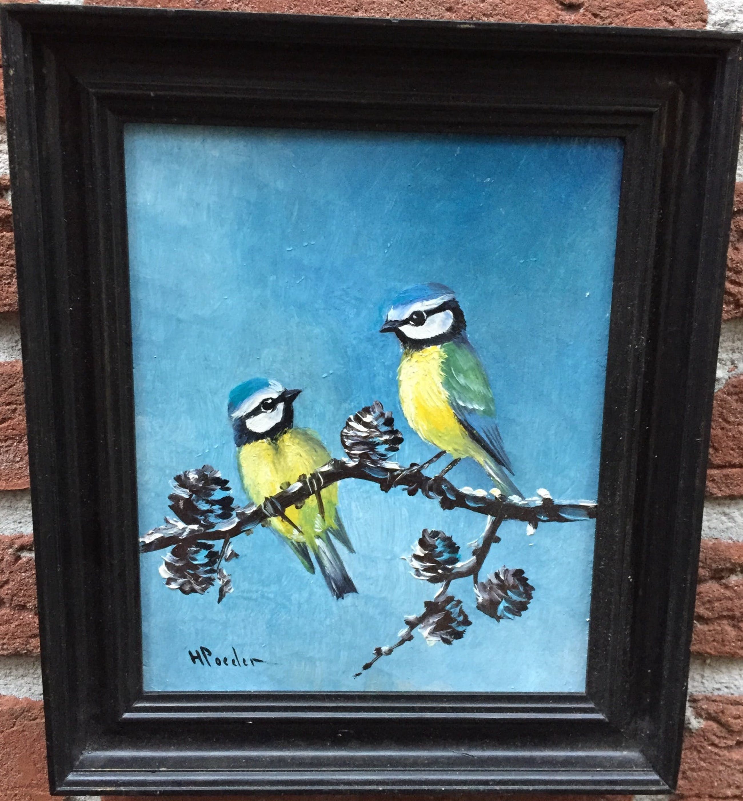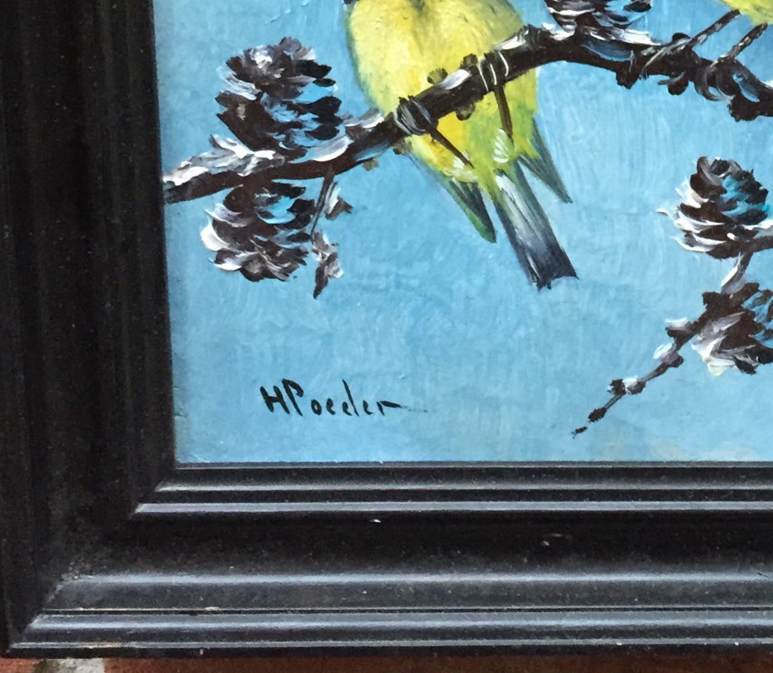 Mooi olieverf op painterboard gesigneerd lo h poeder . Het betreft 2 pimpelmezen in de sneeuw verder spreekt het schilderij voor zig.