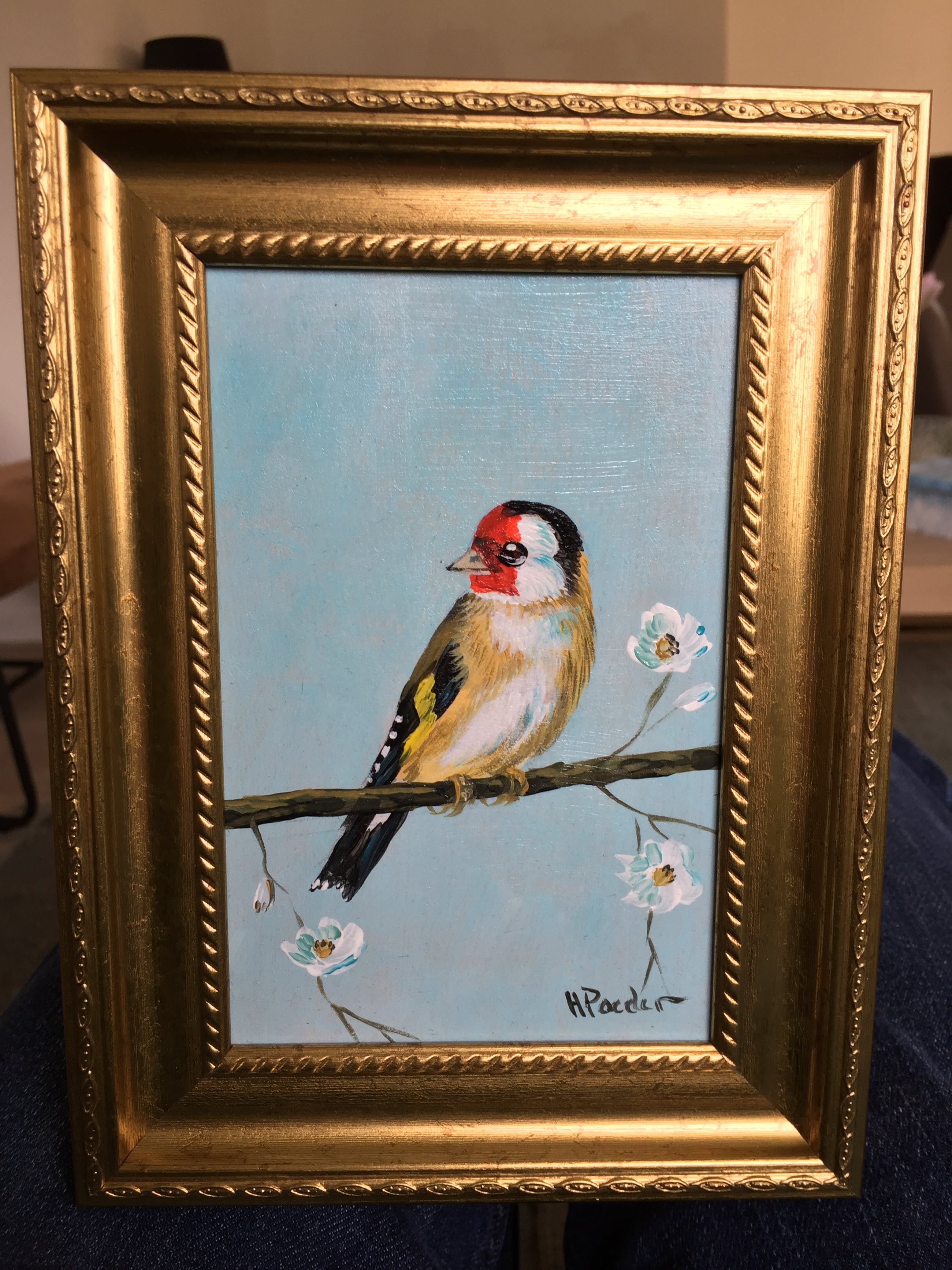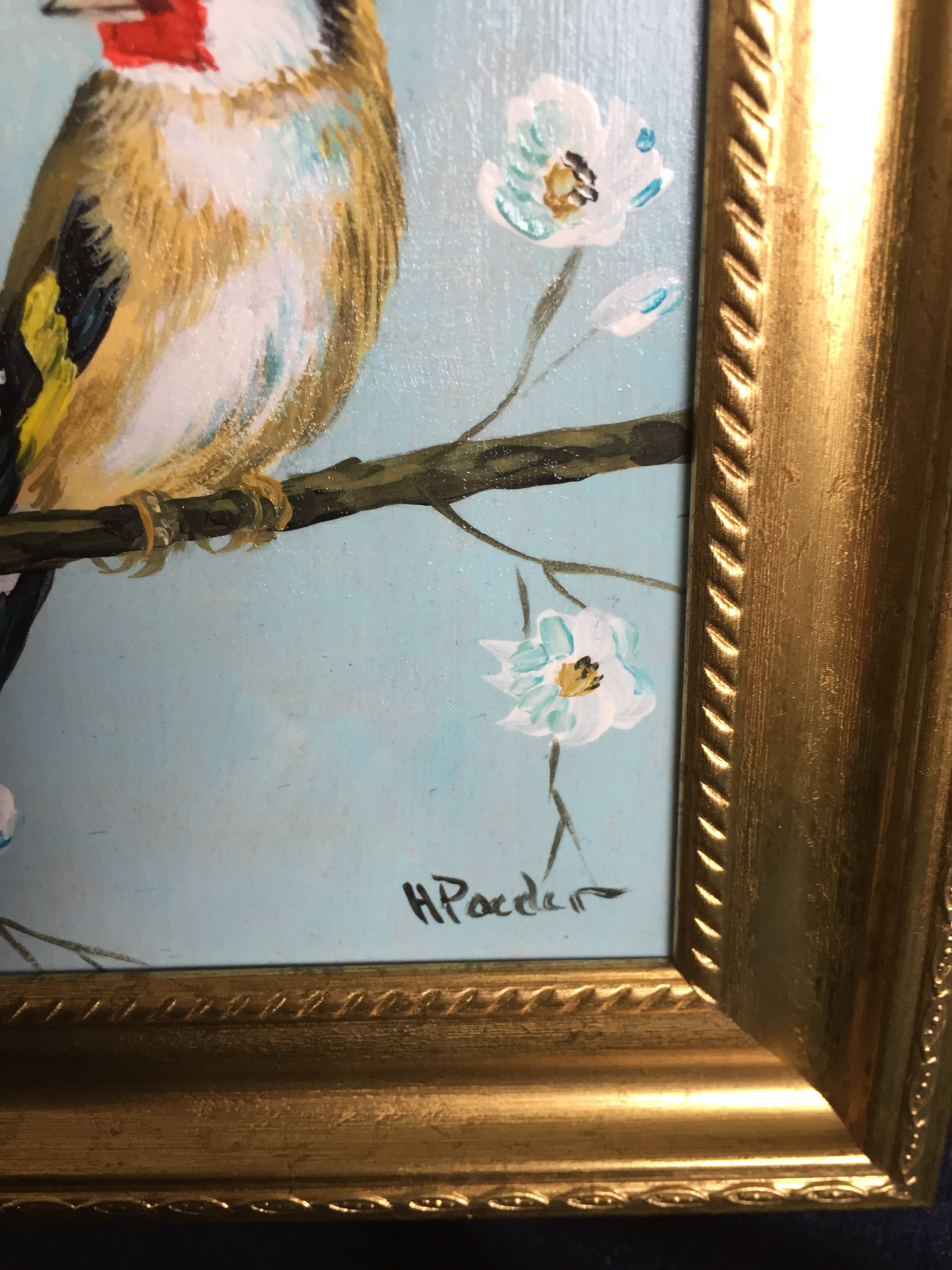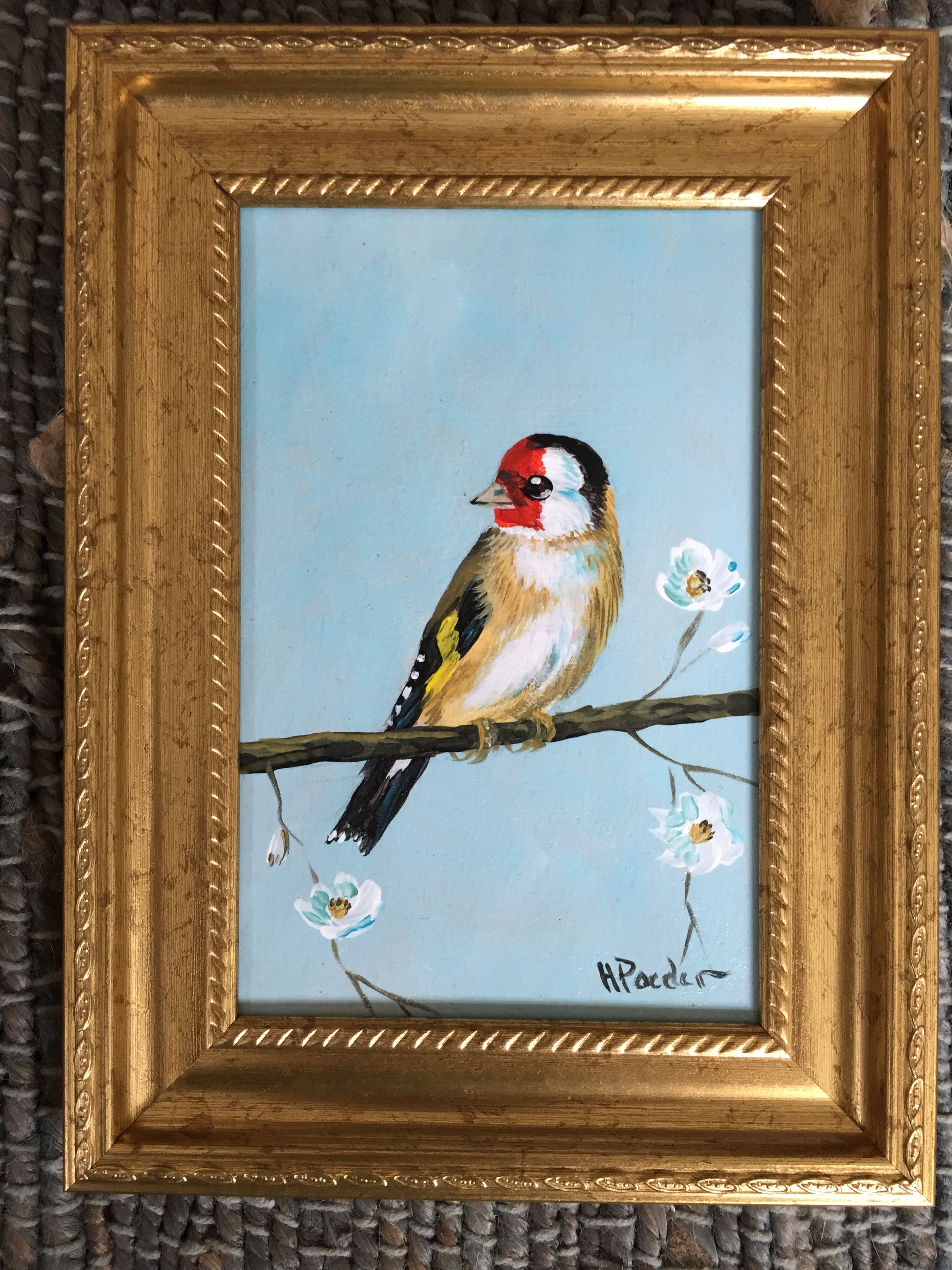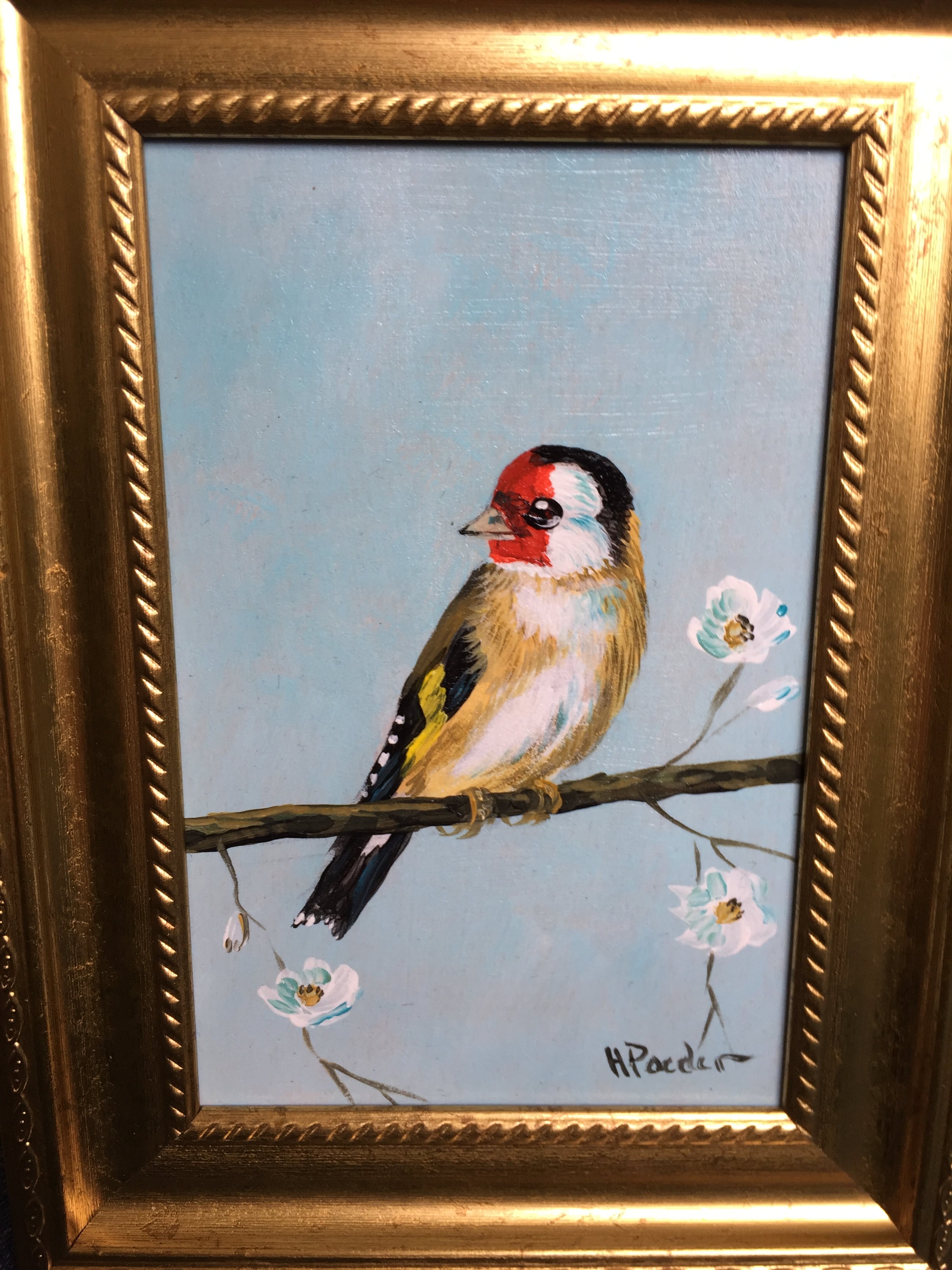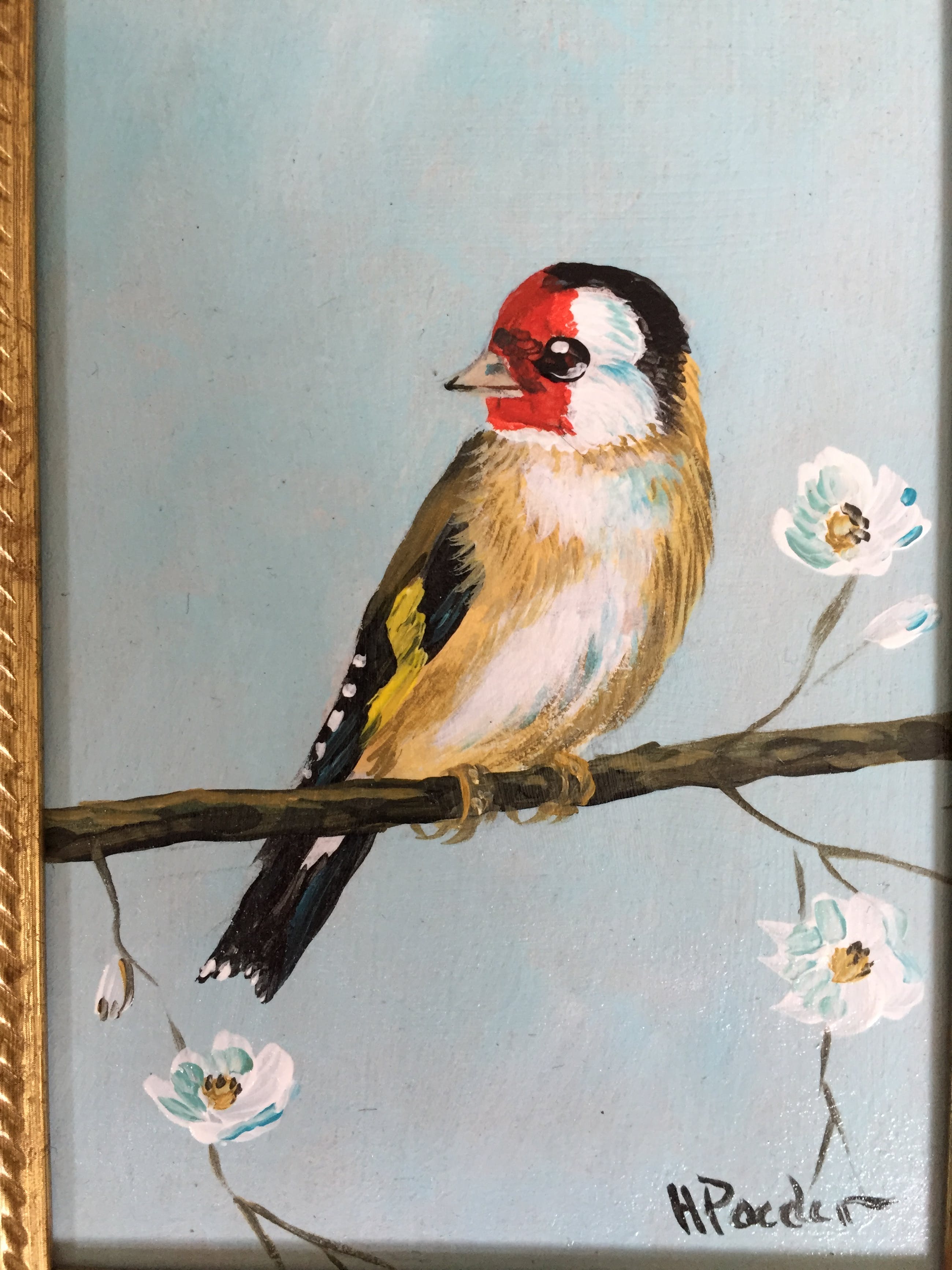 Leuk schilderijtje van een puttertje ook wel distelvink genoemd links onder gesigneerd