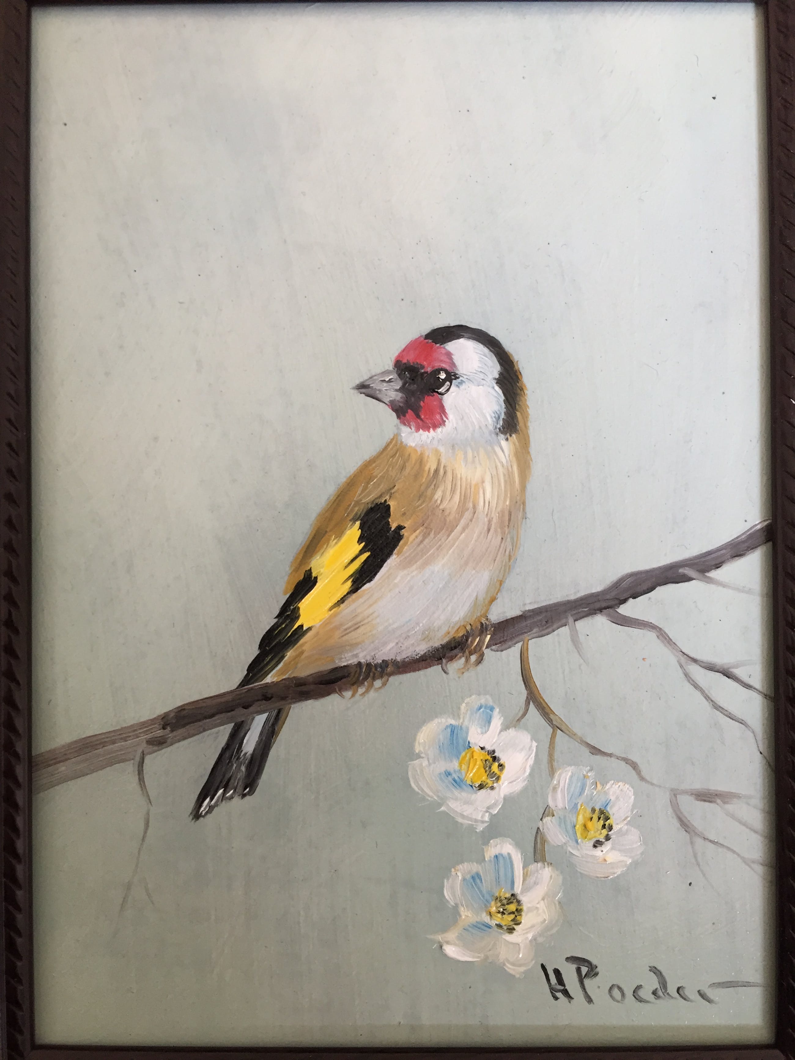 Prachtig olieverf van h poeder op painterboard rechts onder gesigneerd het vogeltje is een puttertje al 100den jaren het beroemde vogeltje in huis en vele jaren een inspiratie bron geweest voor schilders.