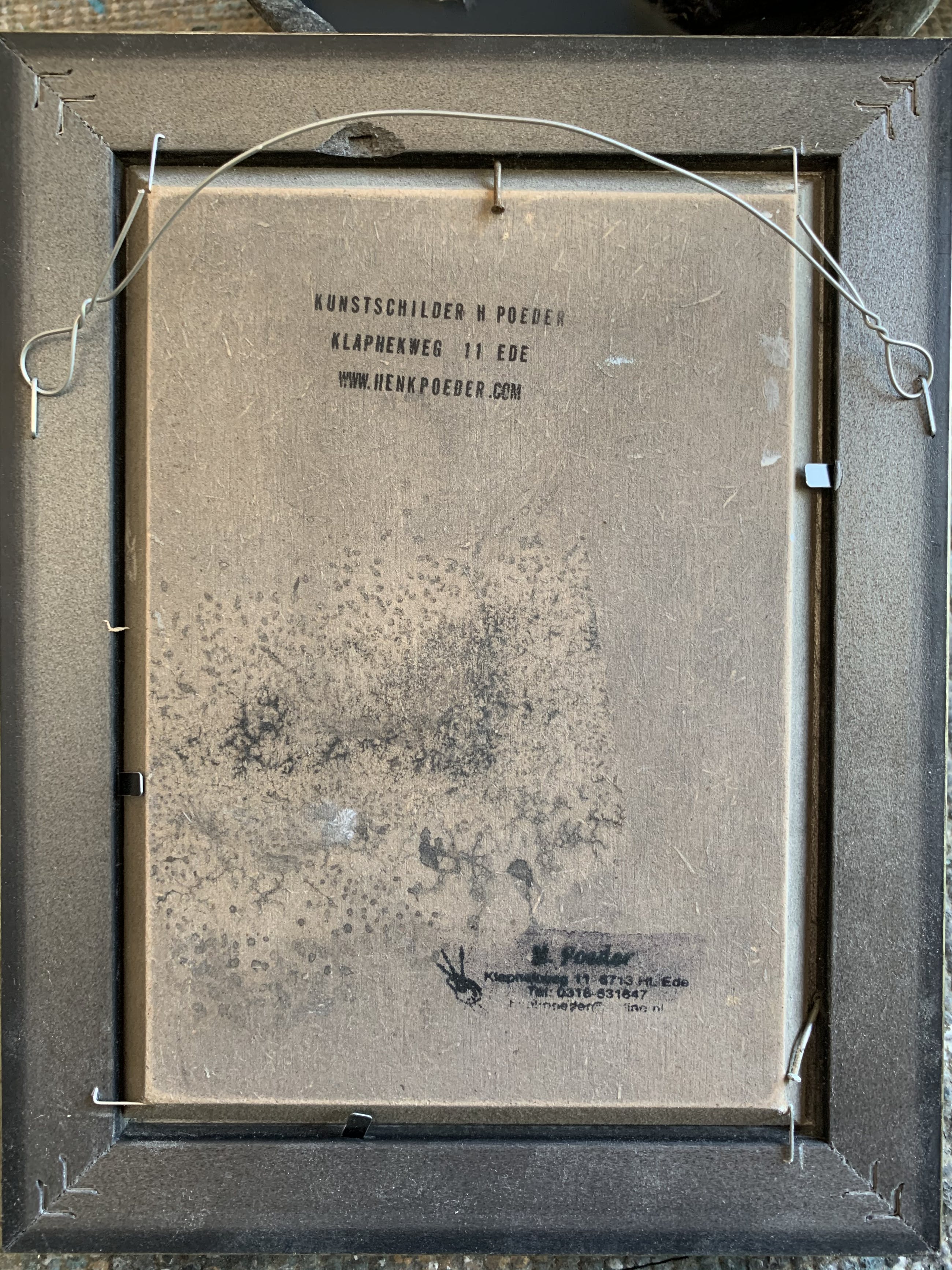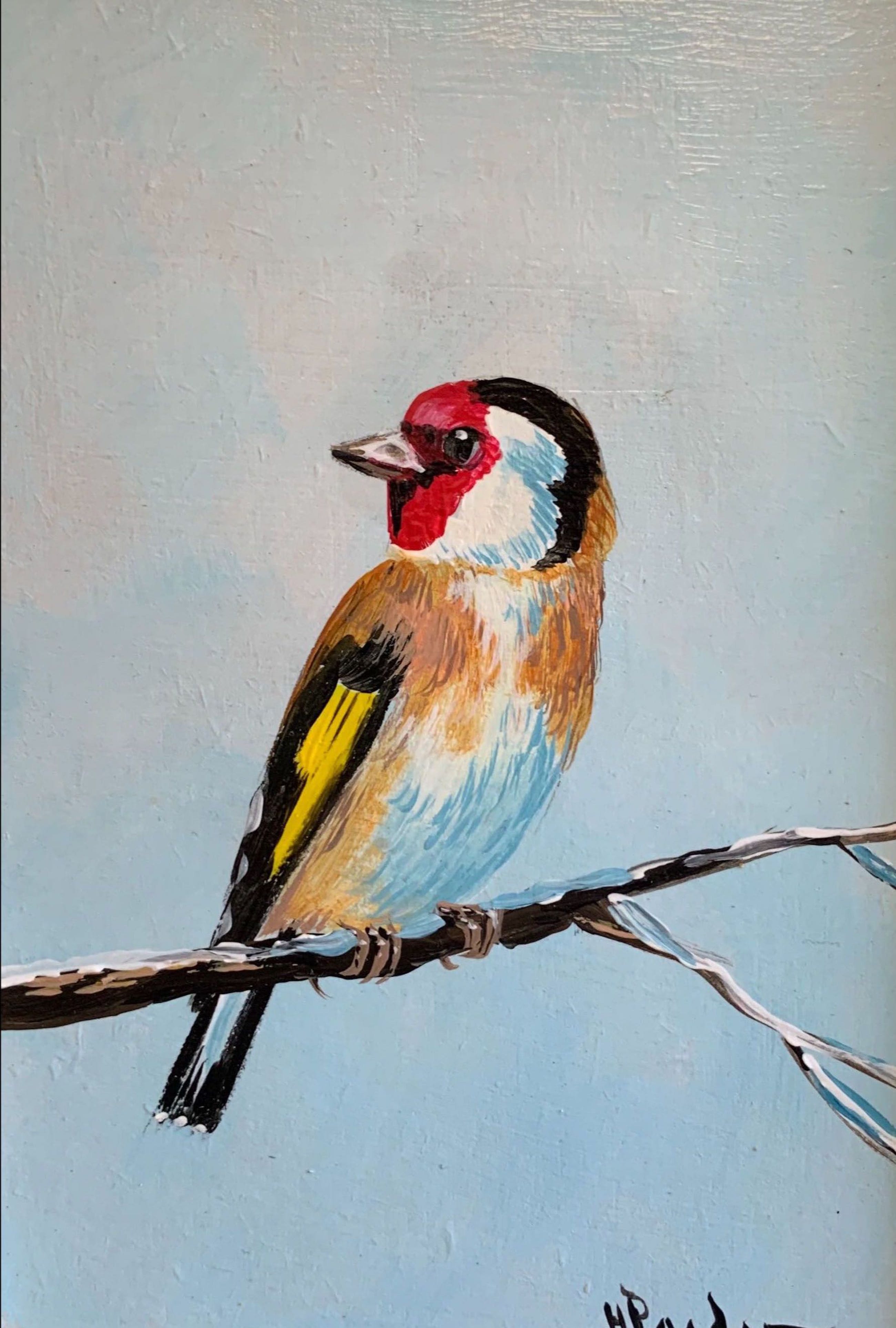 Leuk olieverf van een puttertje op paneel rechts onder gesigneerd h poeder