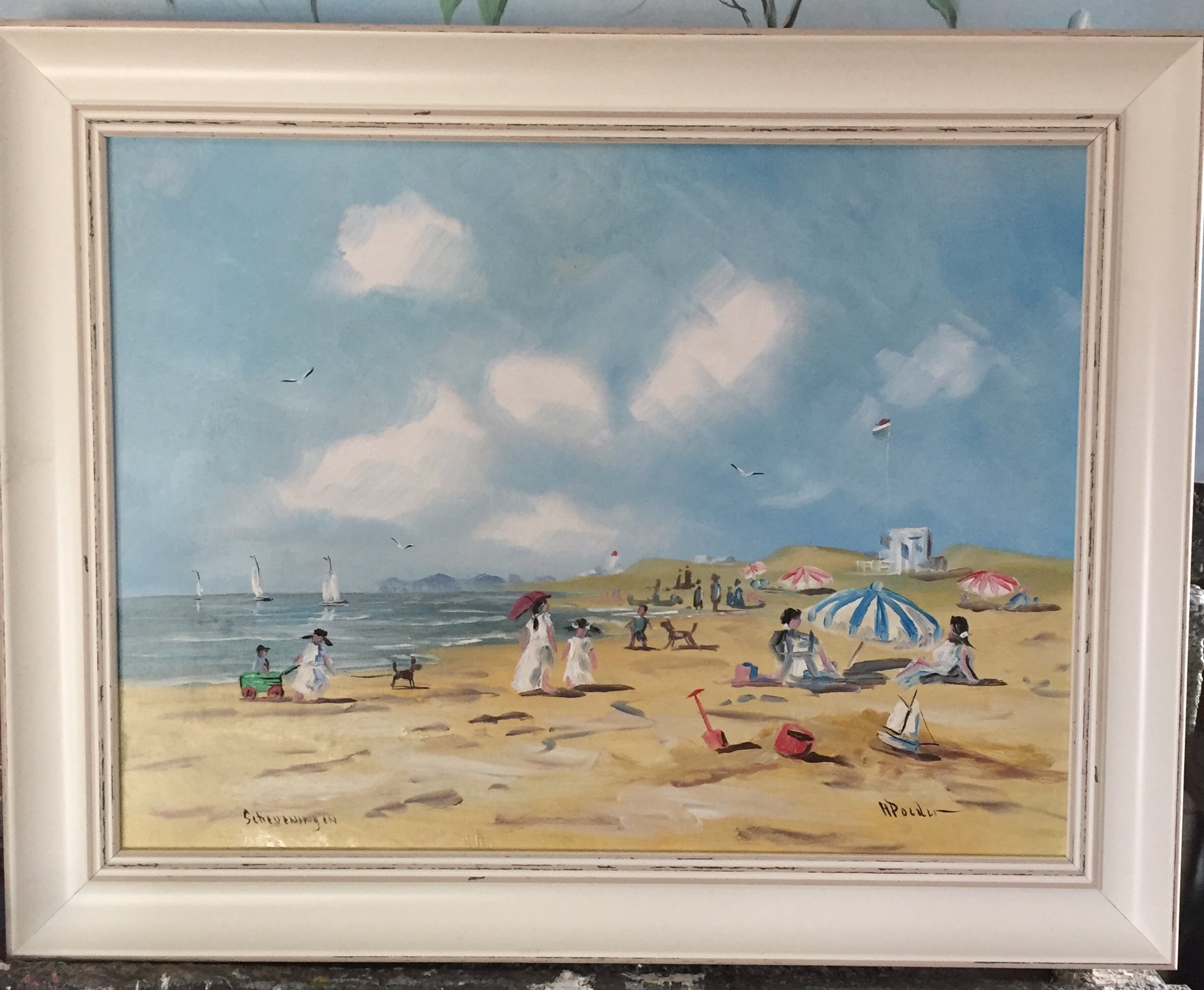 Mooi strandgezicht met mensen nabij scheveningen ro gesigneerd h poeder verder spreekt het werk voor zich .
