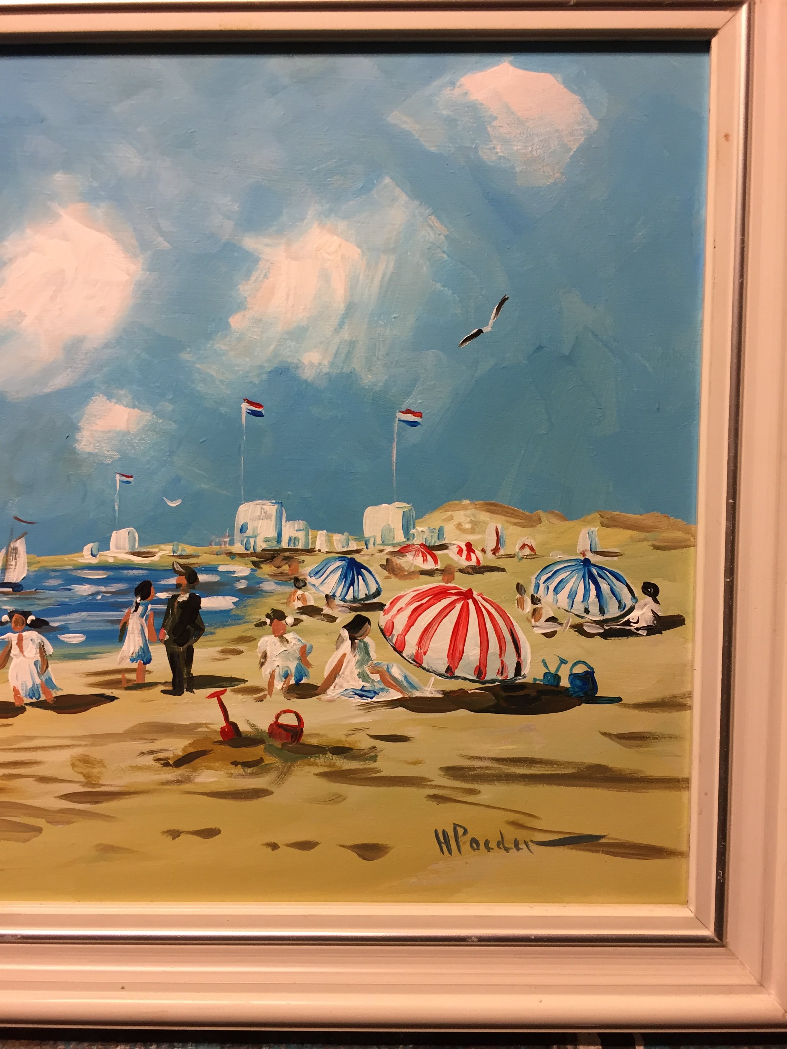 Mooi impressionistisch schilderij door h poeder 1964 betreft Scheveningen , verder is en eigenlijk niet veel aan mijn verhaal toe te voegen het is gewoon een leuk vrolijk schilderij