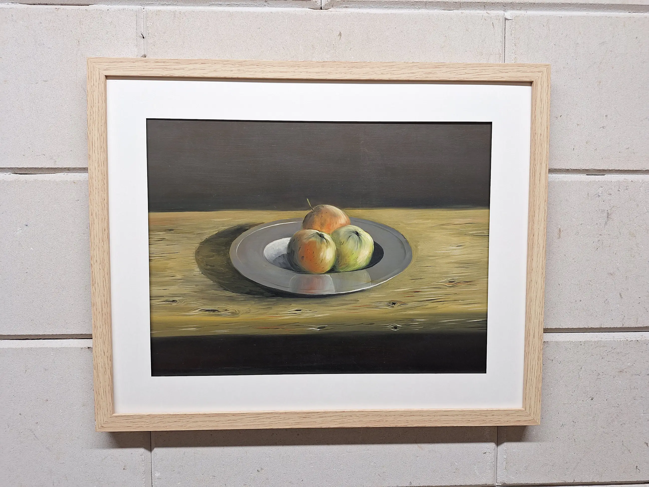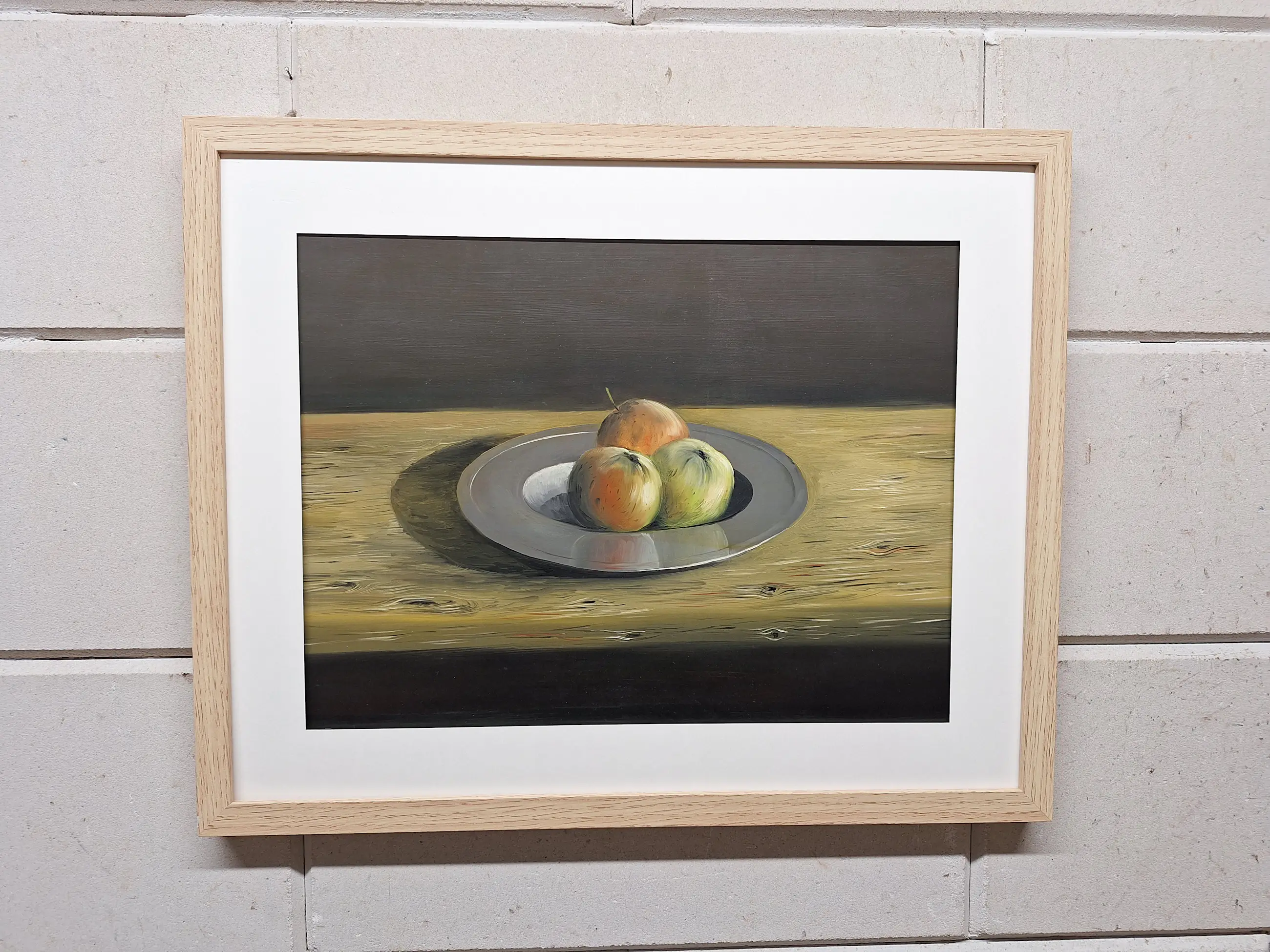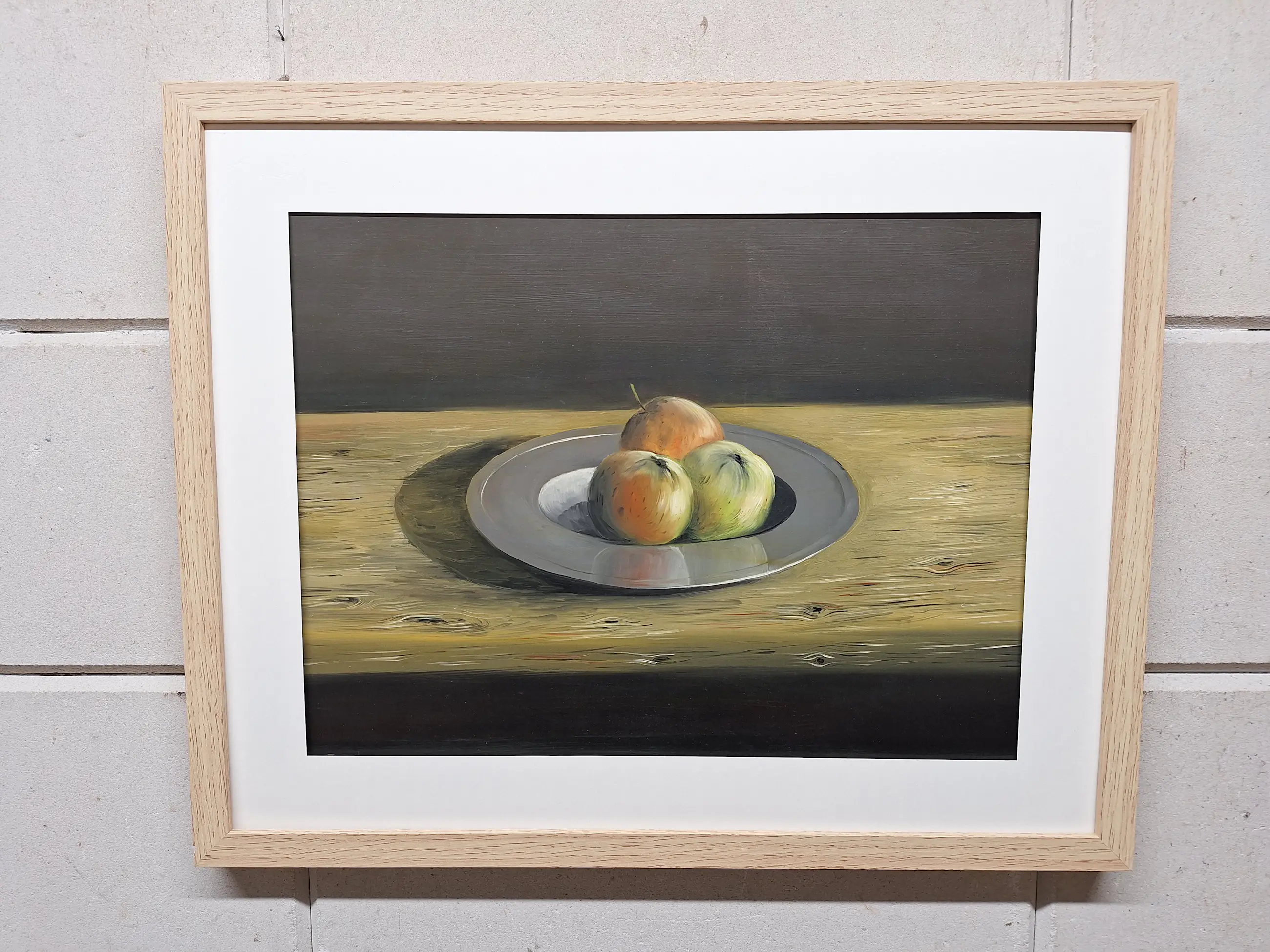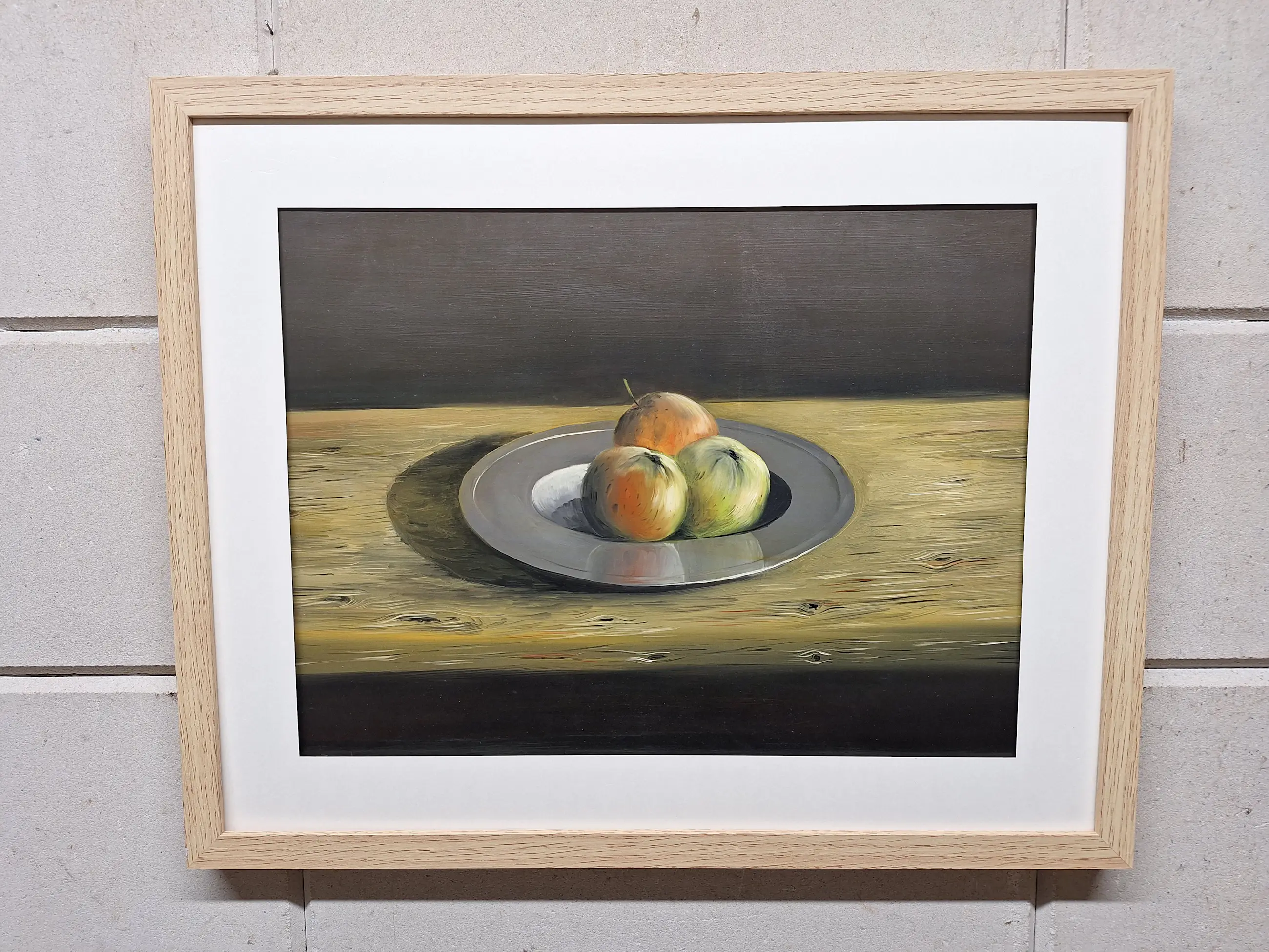 Een erg mooi schilderij met Appels op een Fruitschaal