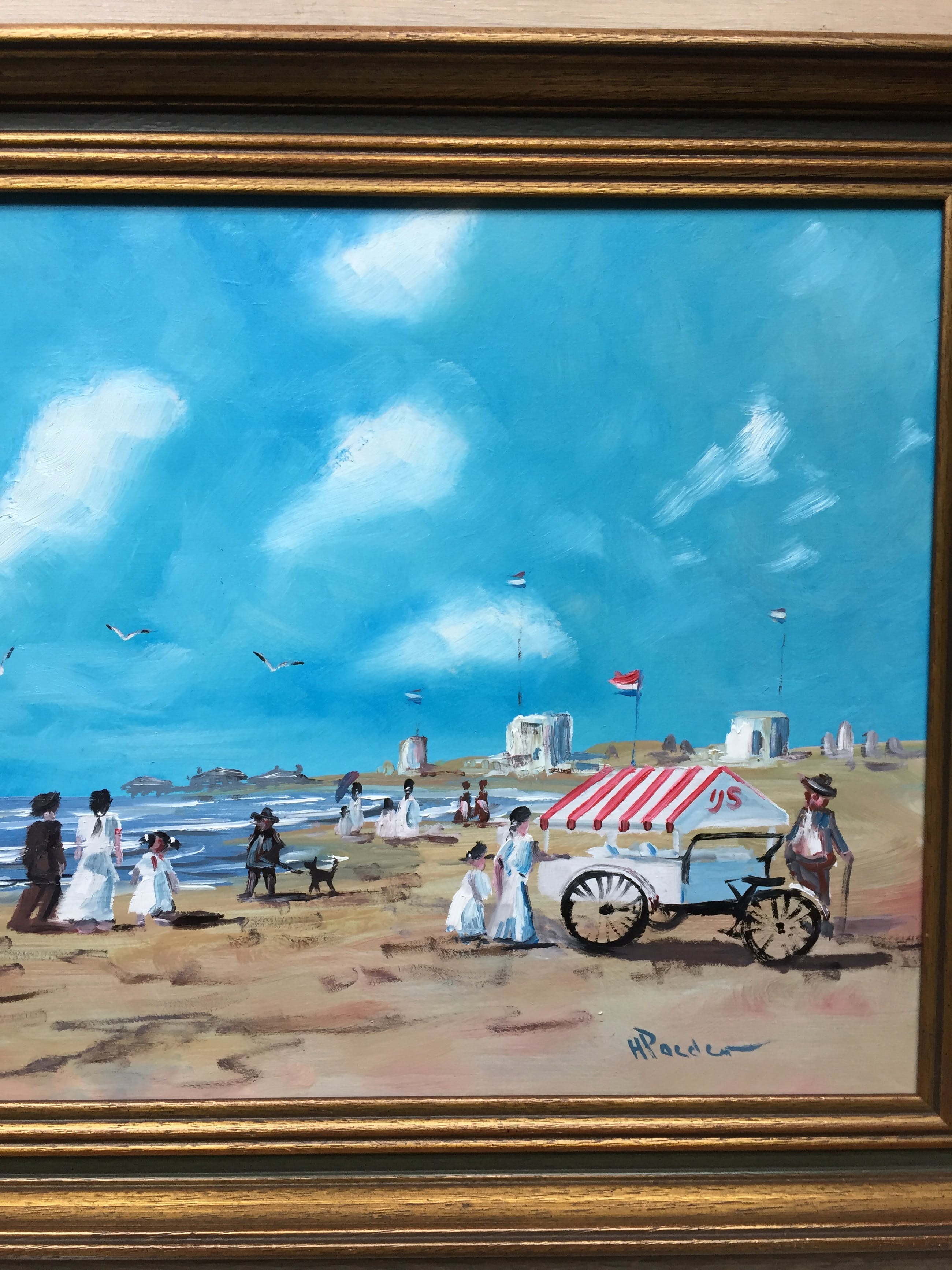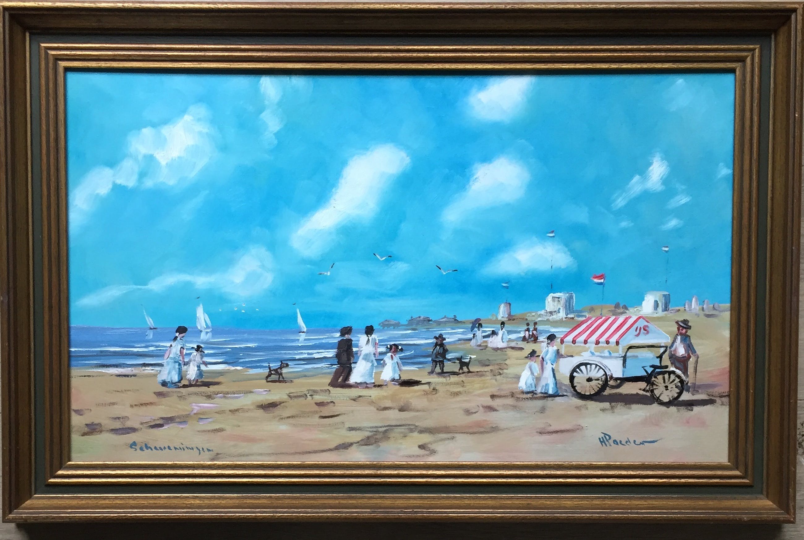 Mooi impressionistisch werk v h poeder betreft strand bij Scheveningen ro gesingeerd h poeder