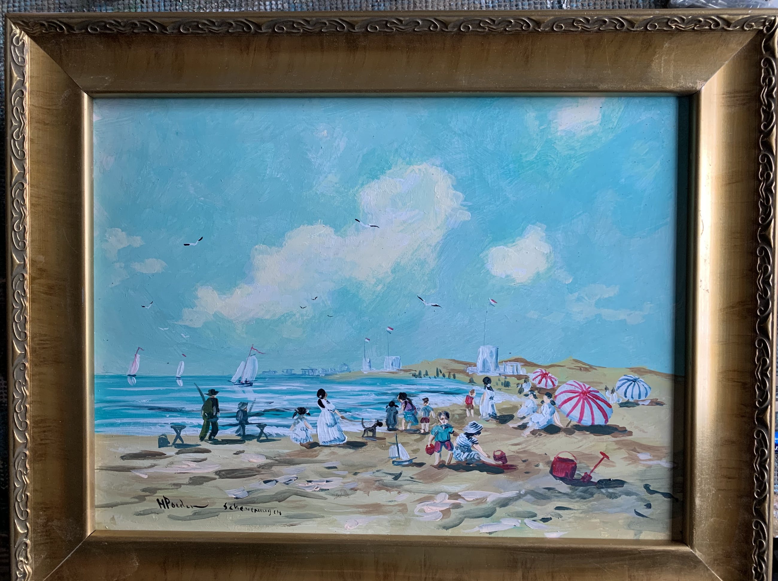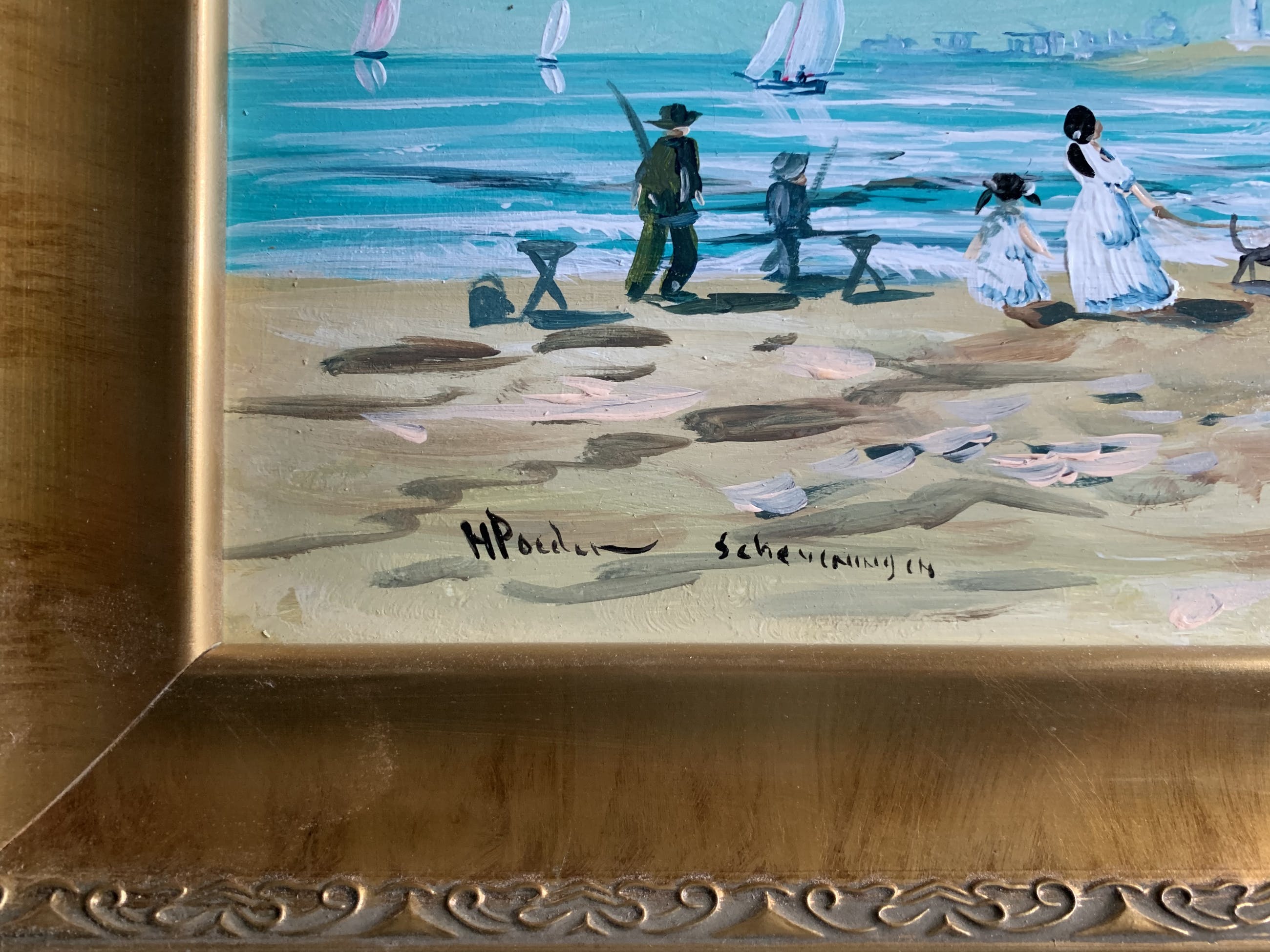 Prachtig impressionistisch strand gezicht nabij Scheveningen links onder gesigneerd h poeder gemaakt op paneel in een nette lijst.