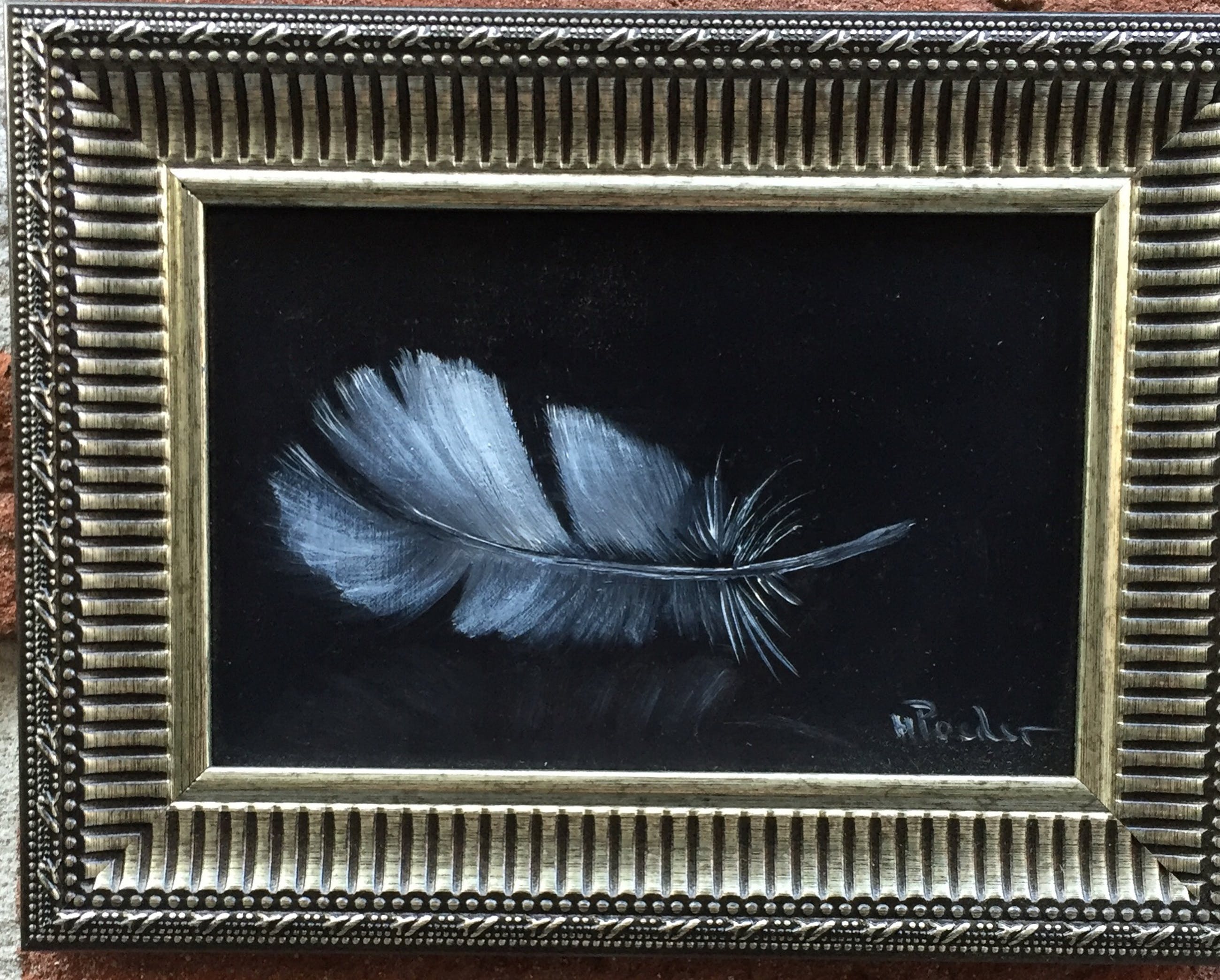 Klein stilleventje van een veertje gesigneert h poeder verder spreekt het werkje voor zich