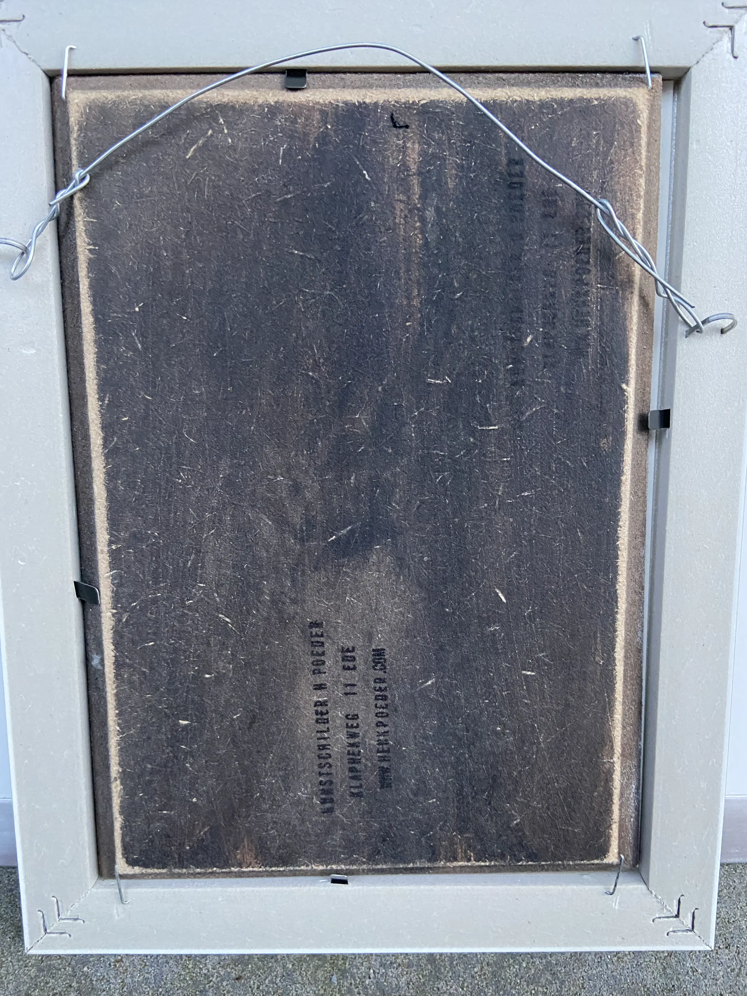 Prachtig olieverf op paneel een Ijsvogel op tak rechts onder gesigneerd h poeder Henk maskt veel schilderijen van vogels winterlandschappen stillevens veel van zijn werkinstructie vaak vrolijk ,dat wil de schilder ook graag mee geven info over Henk poeder is te vinden oa bij het rkd in Denhaag (site)