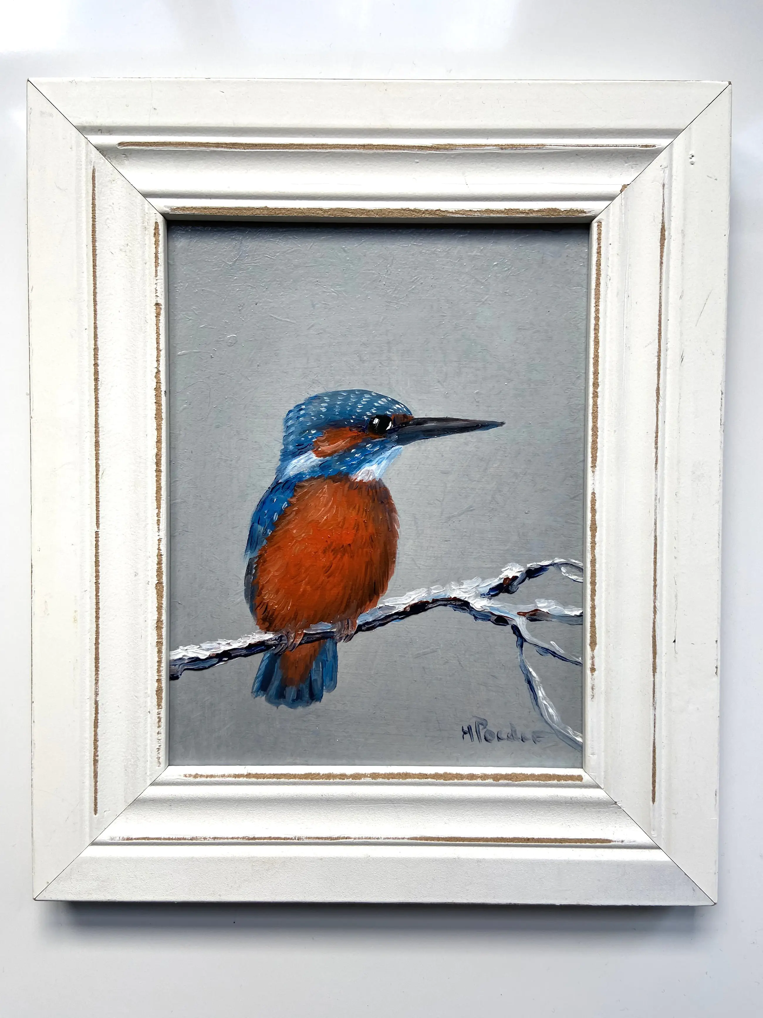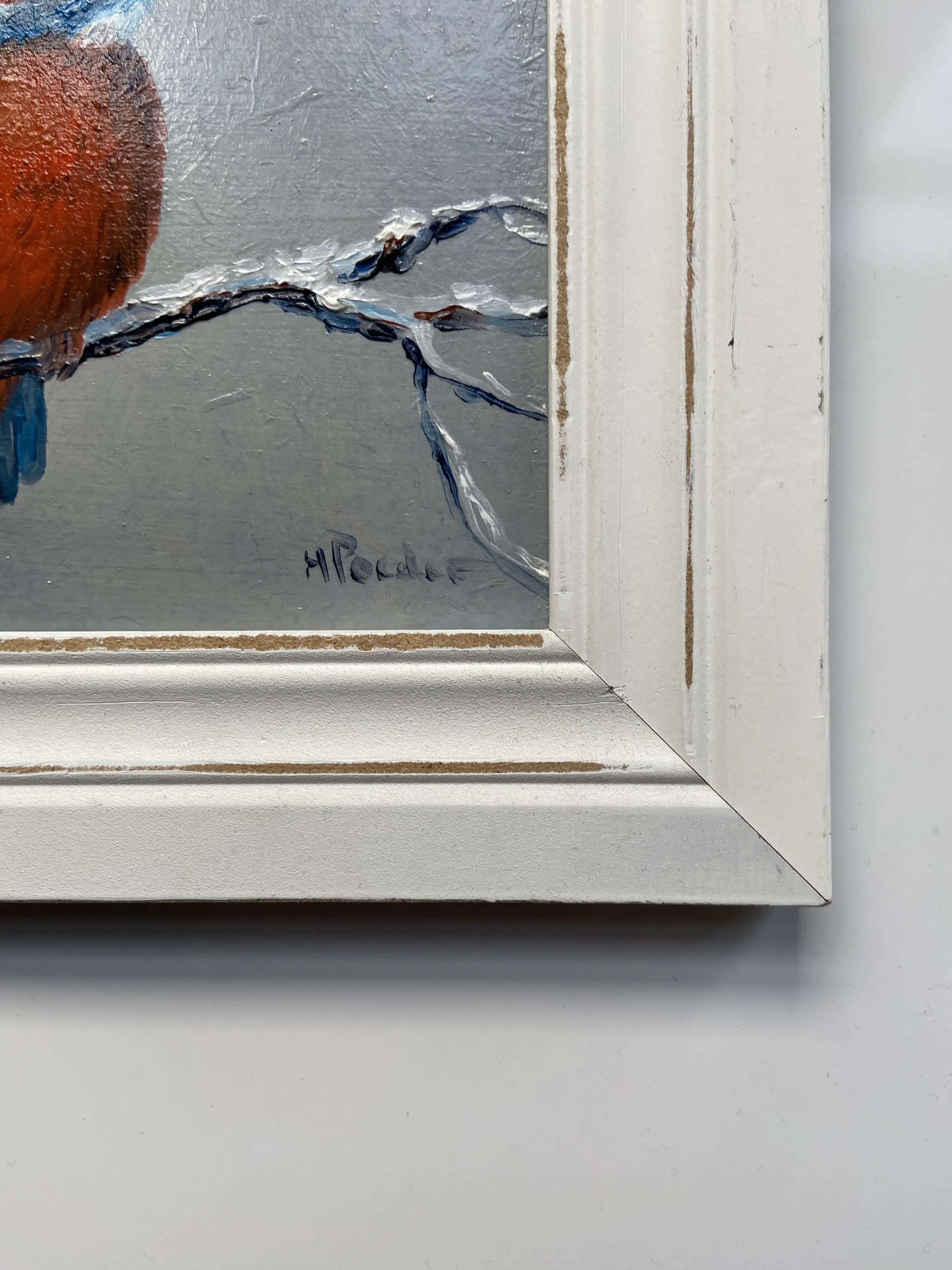 Erg leuk schilderij in een brocant lijstje het betreft een Ijsvogel op tak .schilderij is rechts onder gesigneerd H Poeder de schilder is geboren 1964 . Kleinzoon van Hendrik poeder (HK Poeder ) beiden geregistreerd bij het rijks kunst en documentaties in Denhaag (ook site rkd )